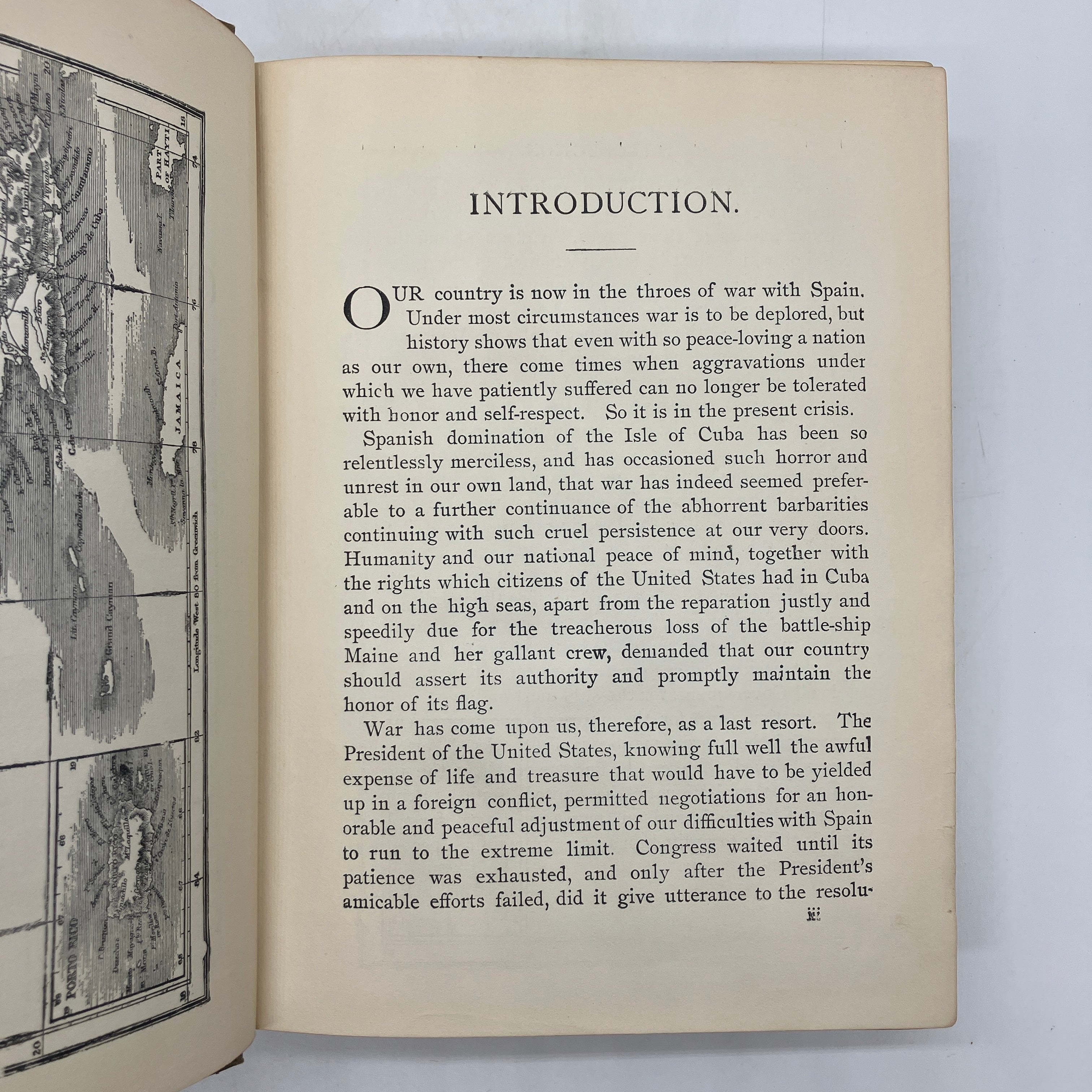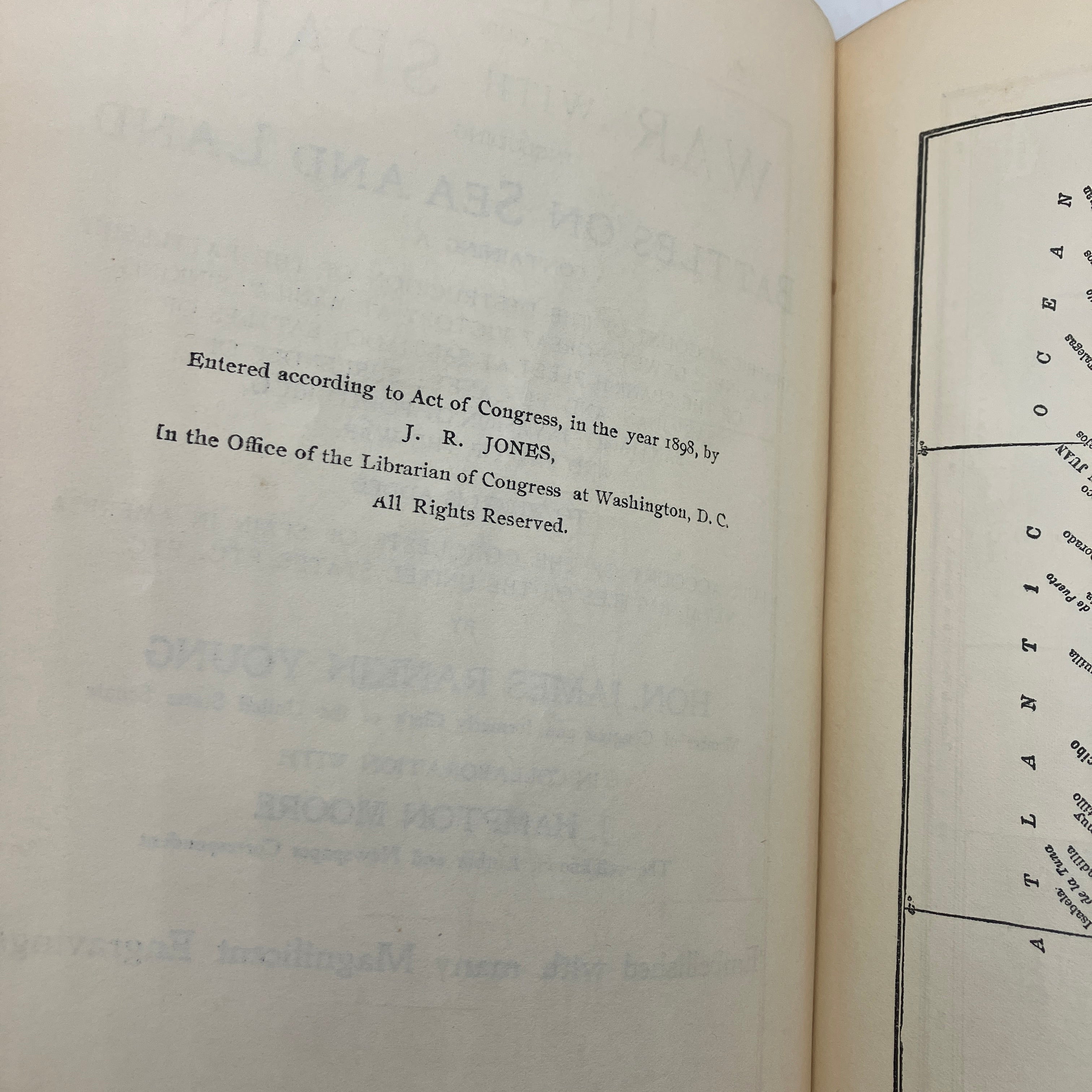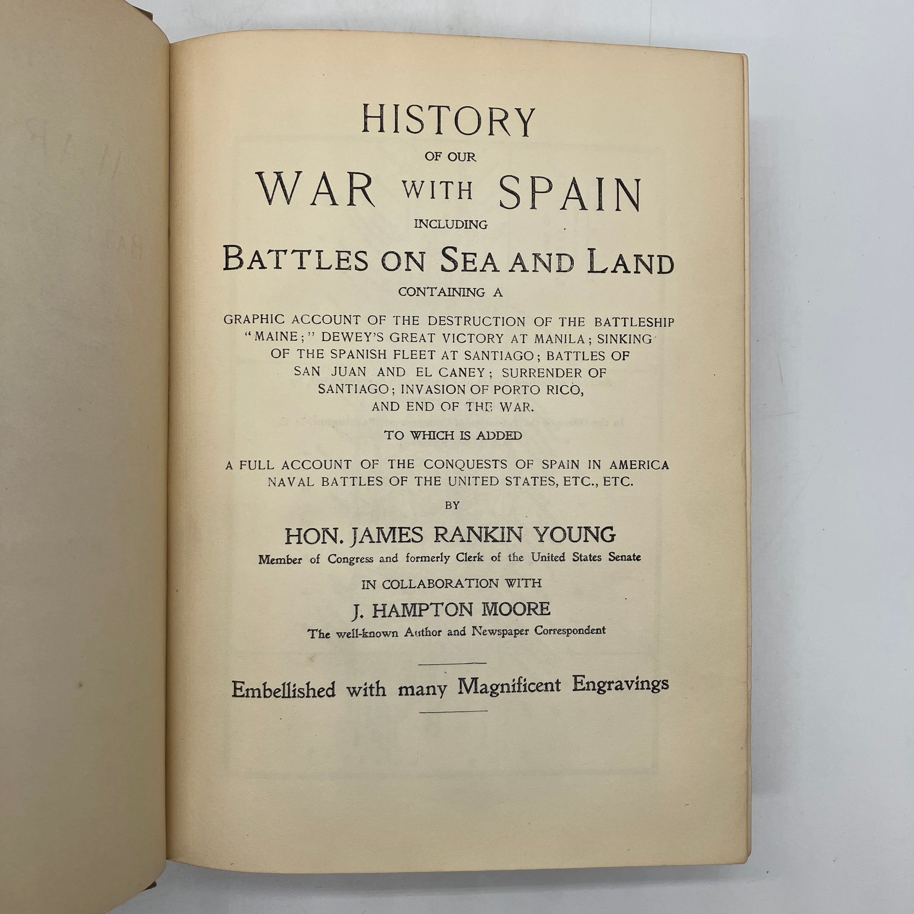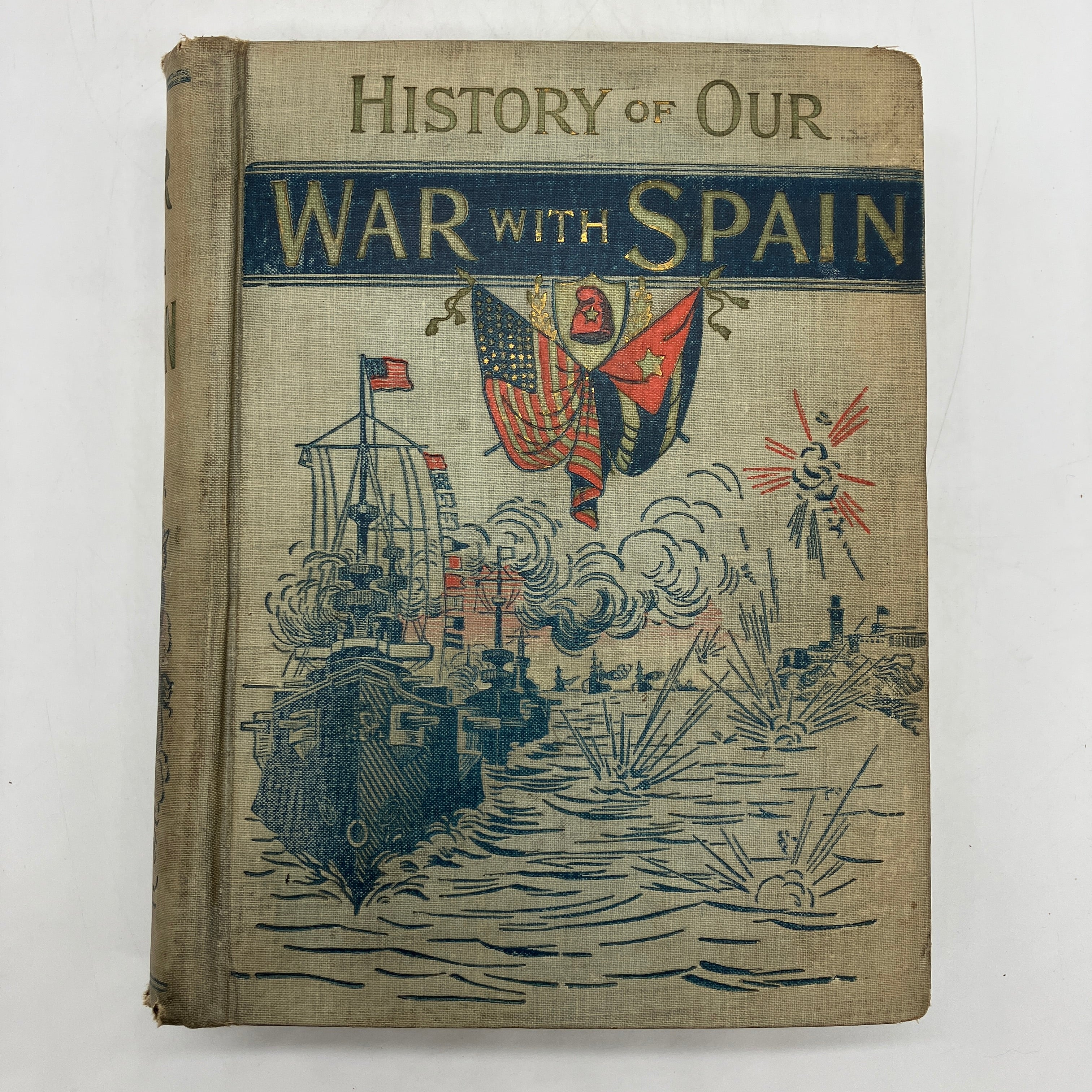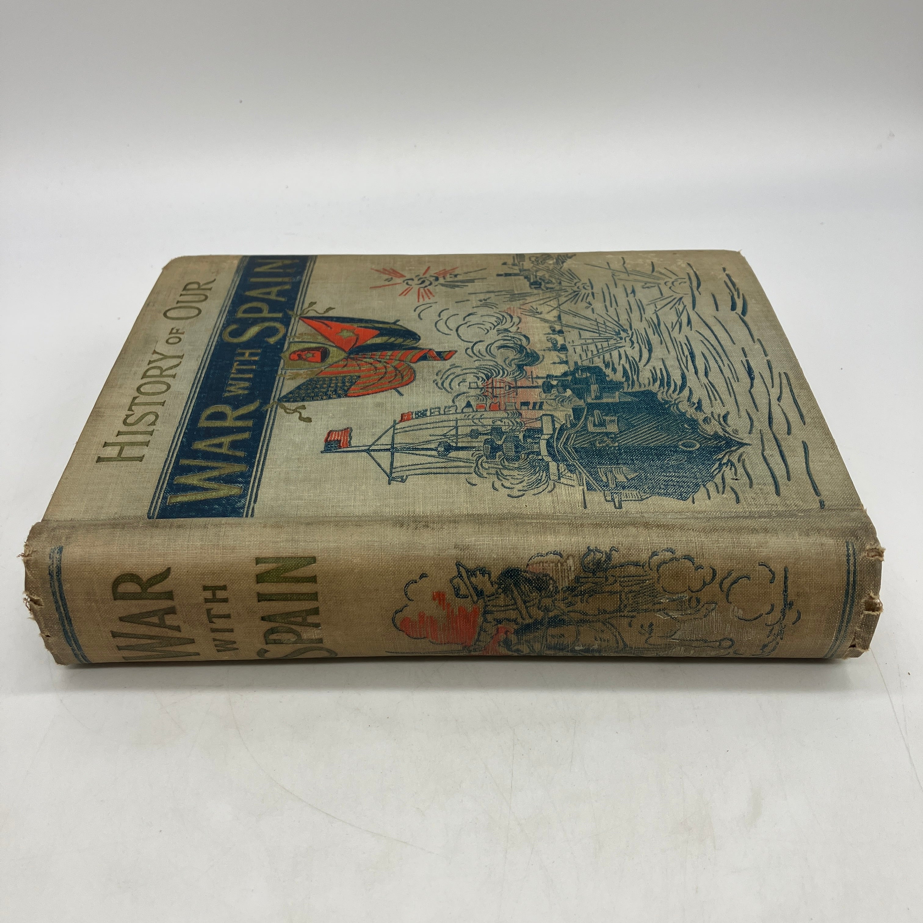 J.R. Jones, 1898. First edition antiquarian cloth bound hardcover of History of Our War with Spain Including Battles on Sea and Land by James Rankin Young.