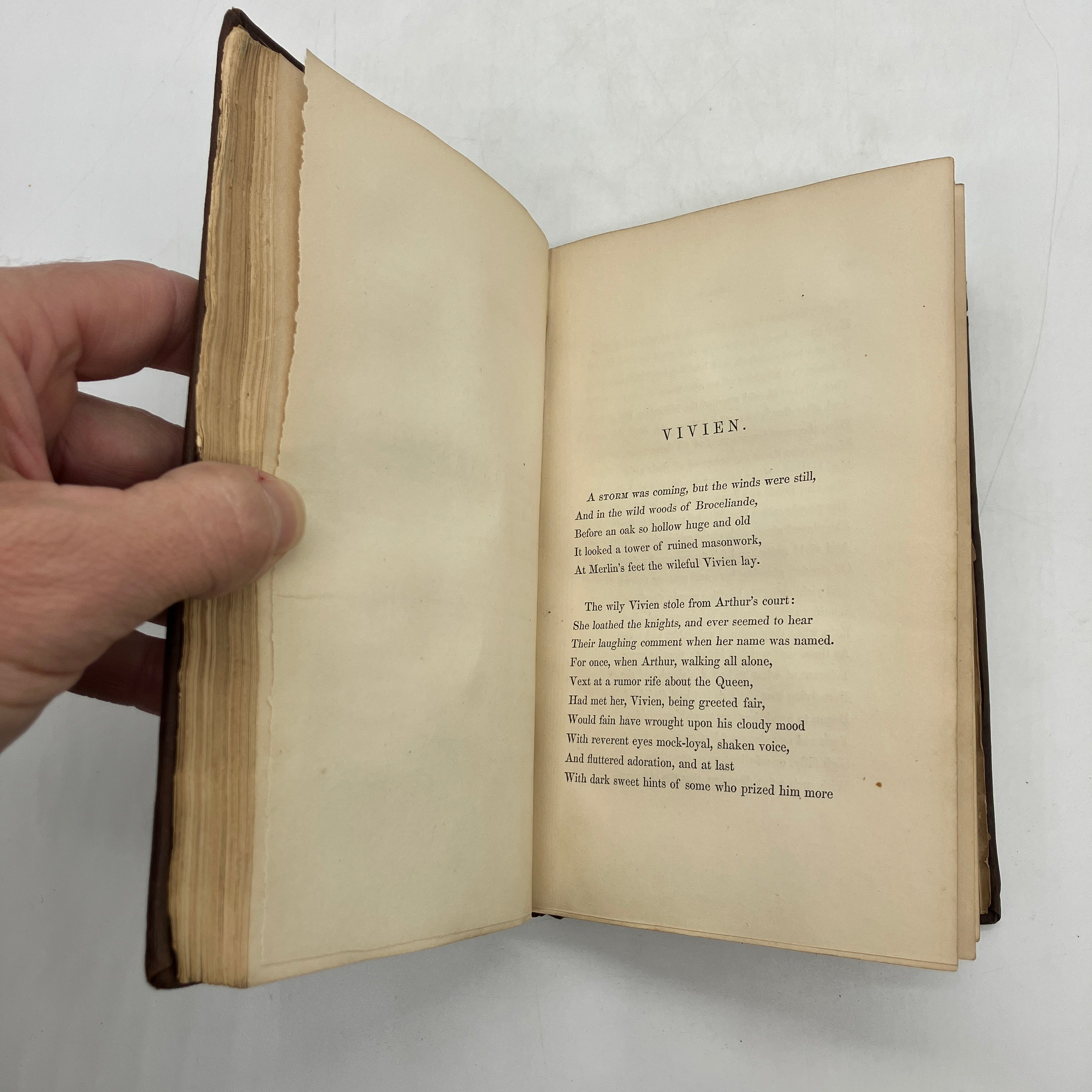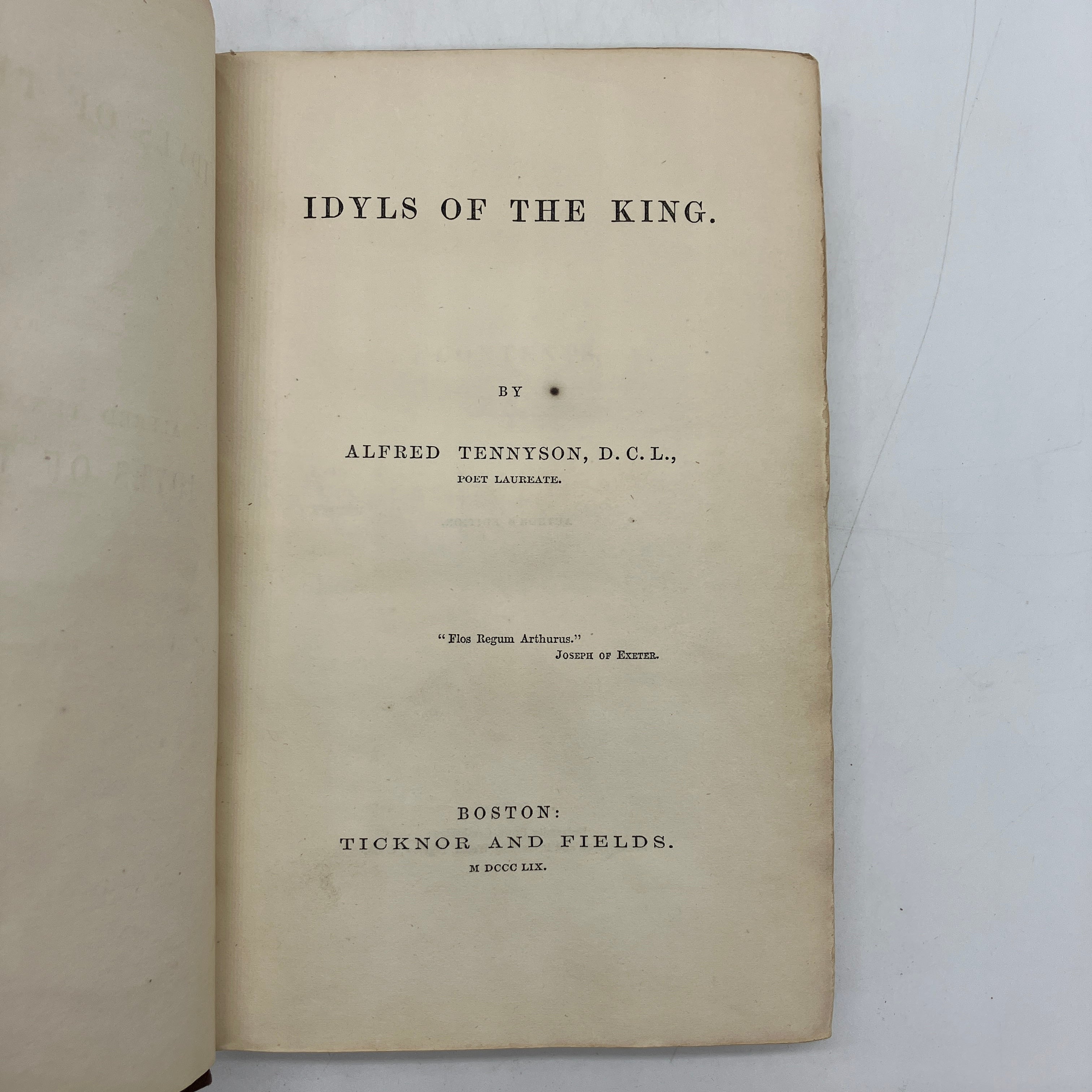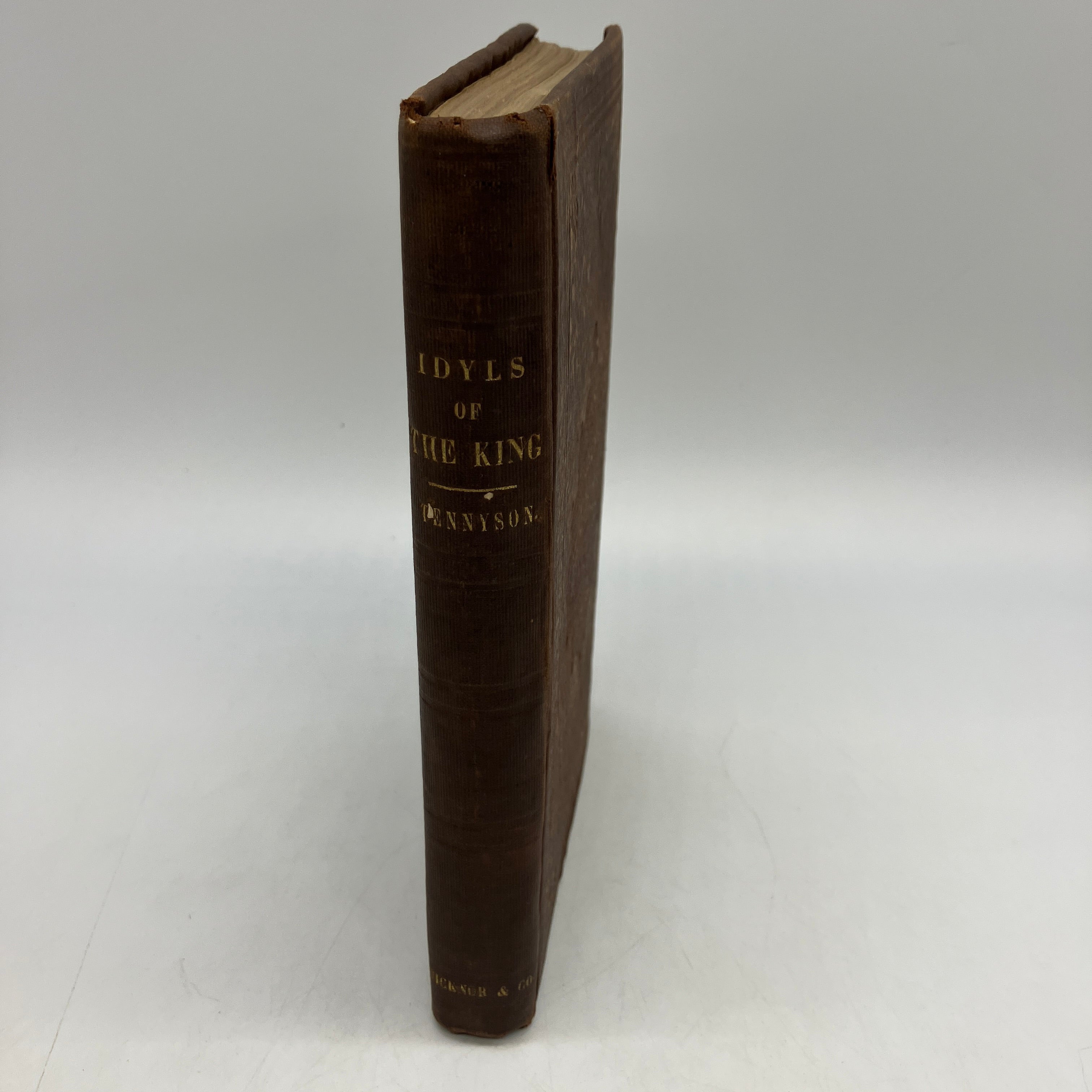 Ticknor and Fields, 1859. First American author's edition antiquarian cloth bound hardcover of Idyls of the King by Alfred Tennyson.