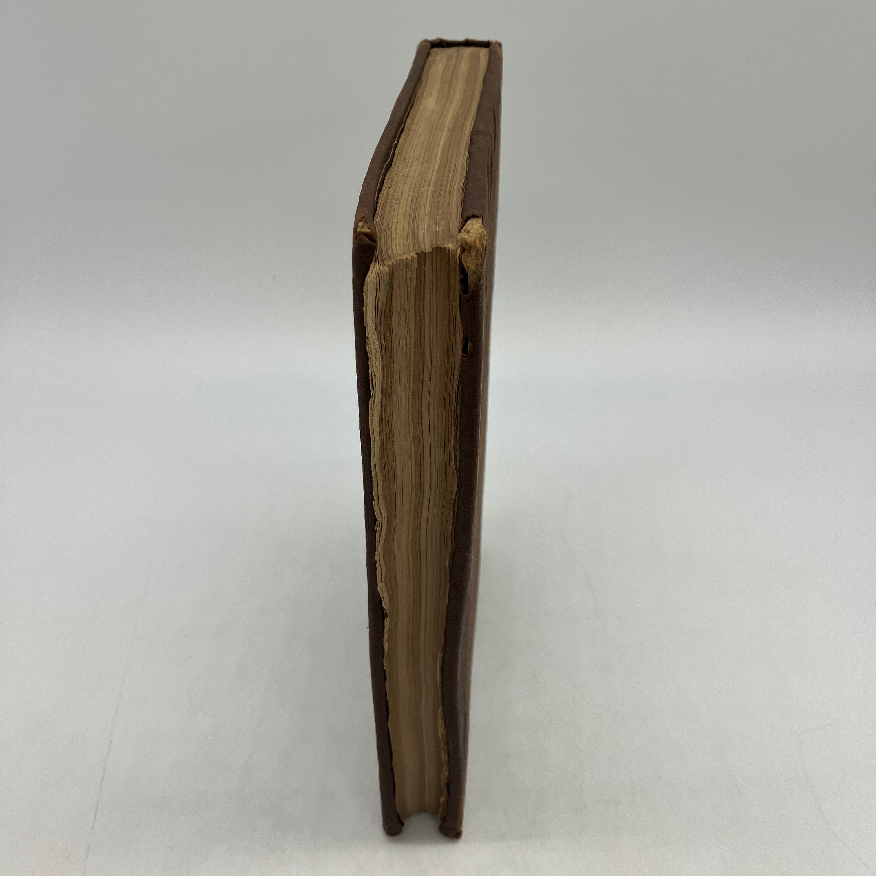 Good condition. Covers worn and bumped. Slight rippling to the cloth material, possibly from dampening. Crinkling/rippling to the endpapers. Interior pages clean and crisp. Previous owner's info to the first blank page. Solid book with shelf wear.