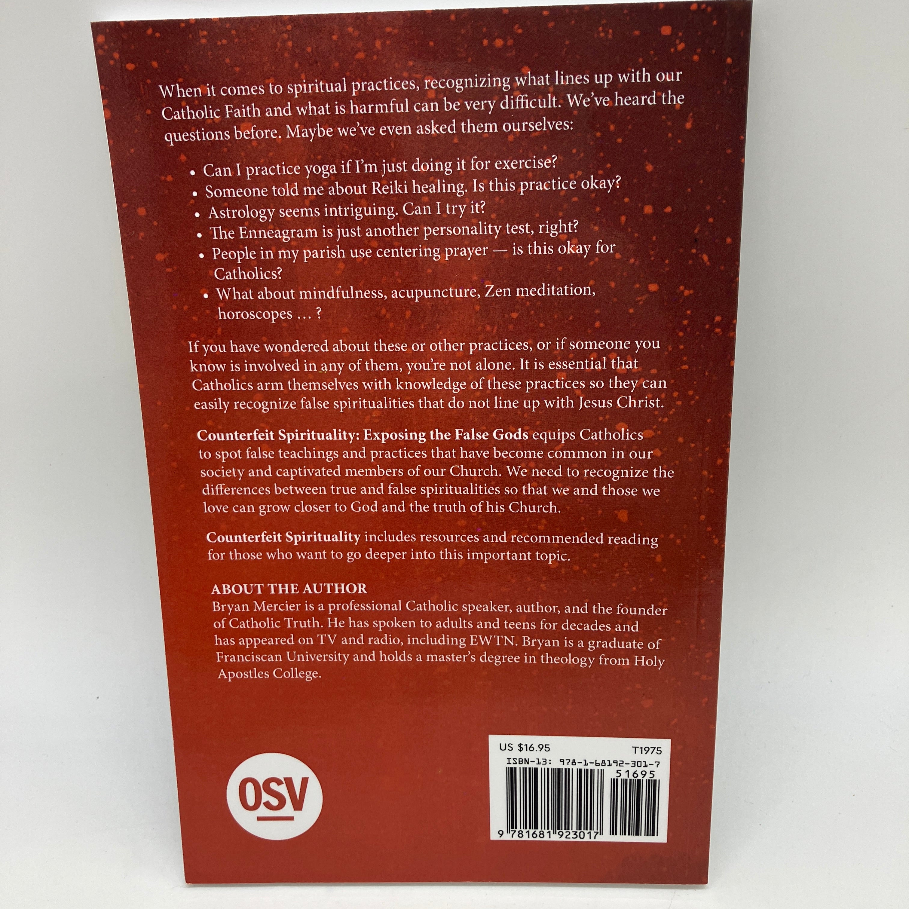 Counterfeit Spirituality: Exposing the False Gods equips Catholics to spot false teachings and practices that have infiltrated our society and captivated members of our Church. Now more than ever, we need to recognize the differences between true and false spiritualities so that we and those we love can grow closer to God and the truth of his Church. Counterfeit Spirituality also includes resources and recommended reading for those who want to go deeper into this important topic.