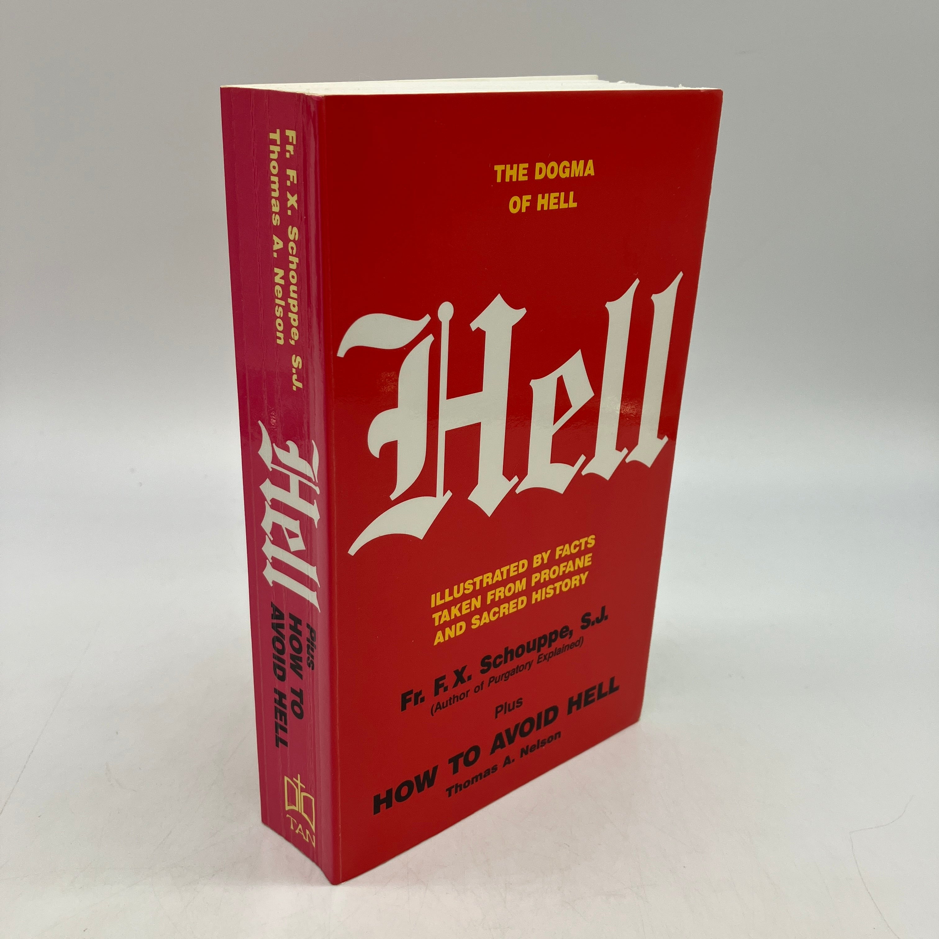 TAN Books and Publishers, 1989. Trade paperback of Hell: The Dogma of Hell, Illustrated by Facts Taken from Profane and Sacred History; Plus How to Avoid Hell by F.X. Schouppe & Thomas Nelson.