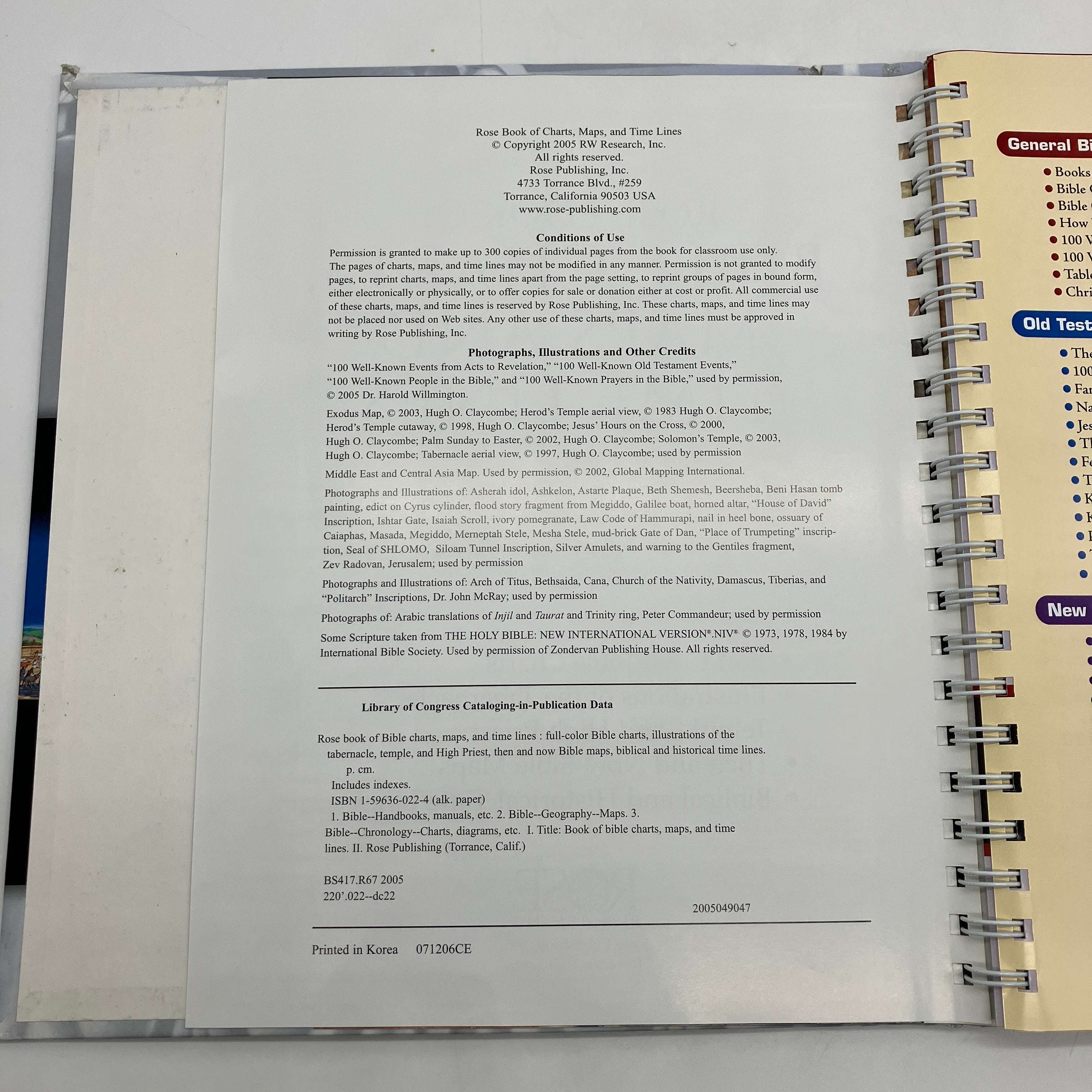 Rose Book of Bible Charts, Maps & Time Lines 2005 Rose Publishing Spiral HC Good