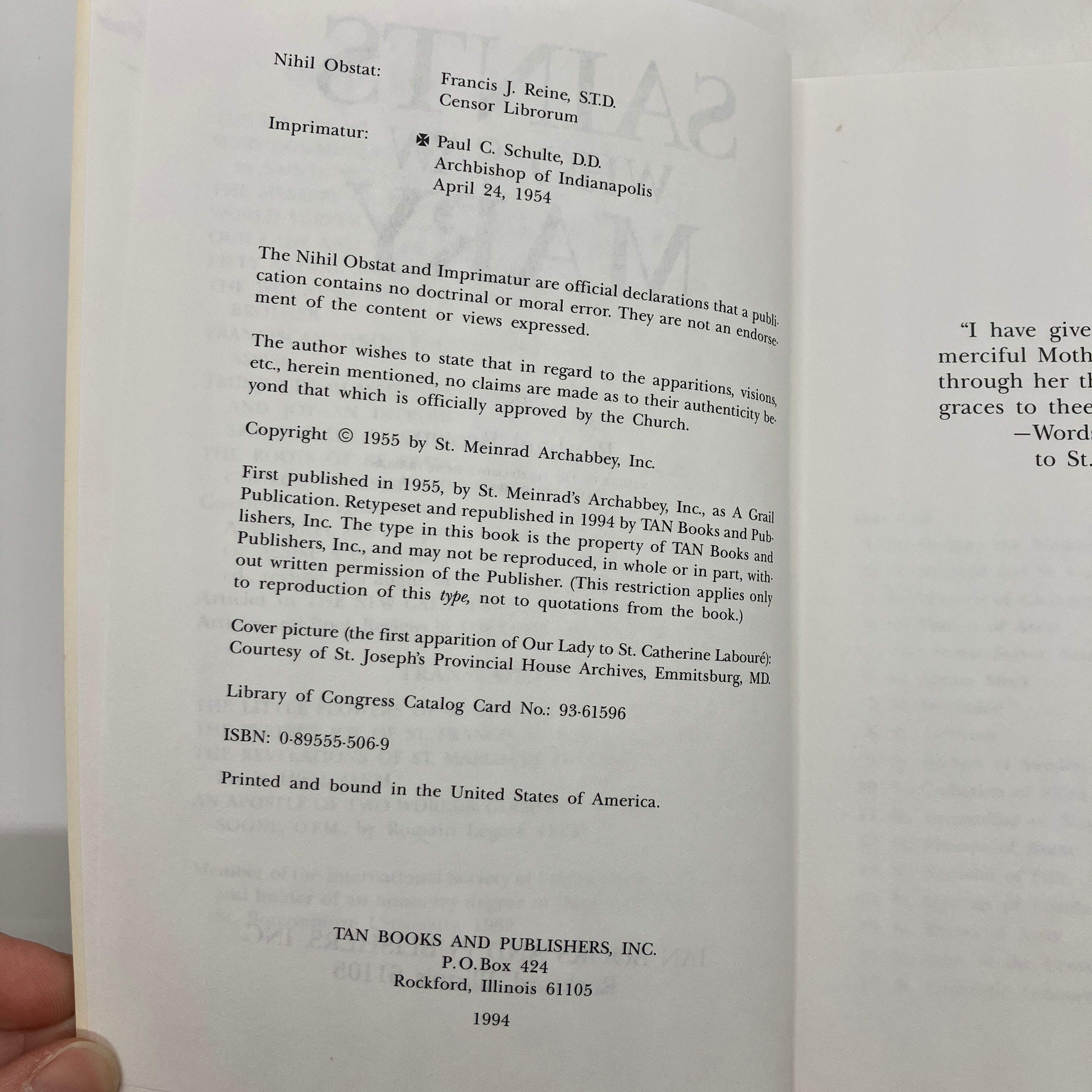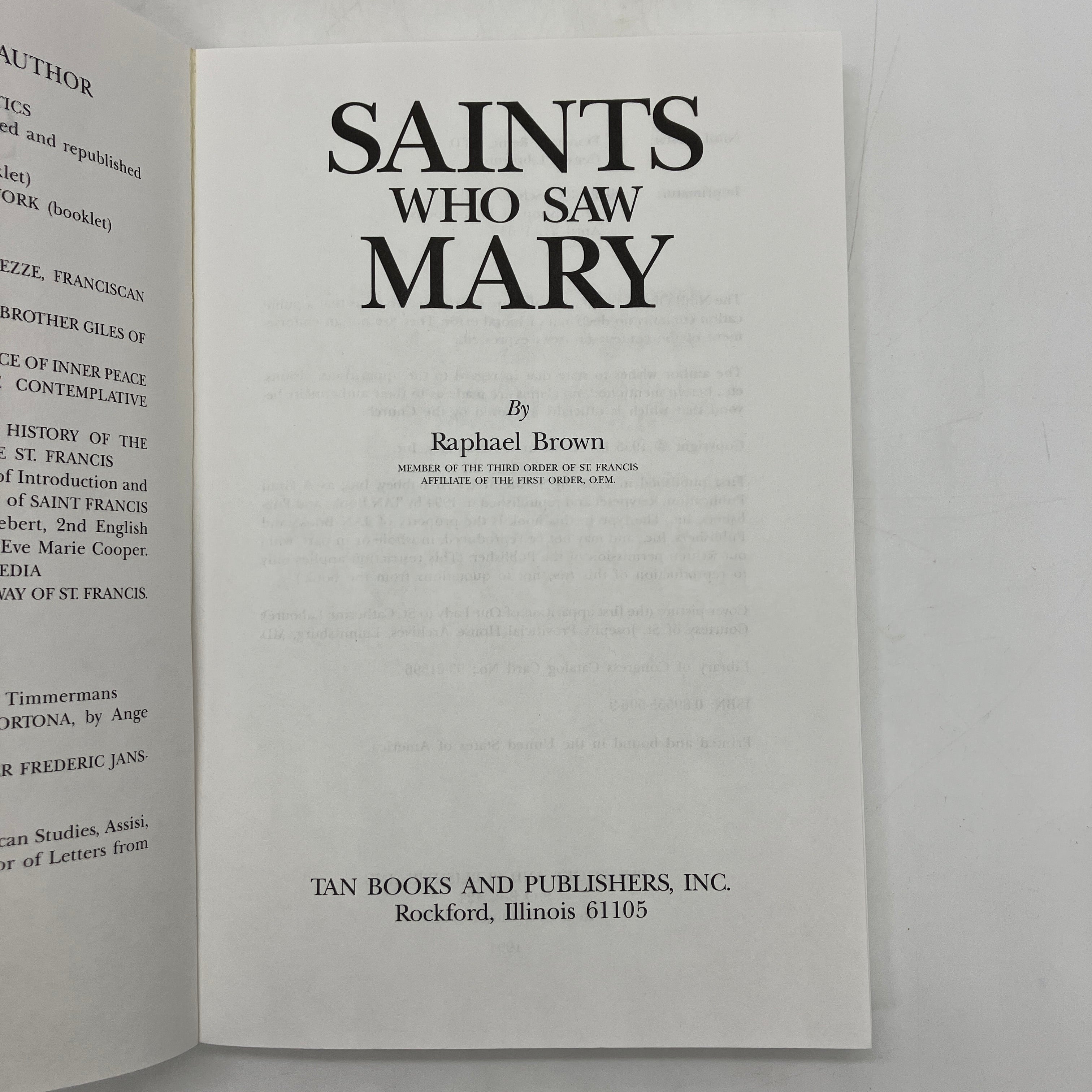 TAN Books and Publishers, 1994. Trade paperback of Saints Who Saw Mary by Raphael Brown.