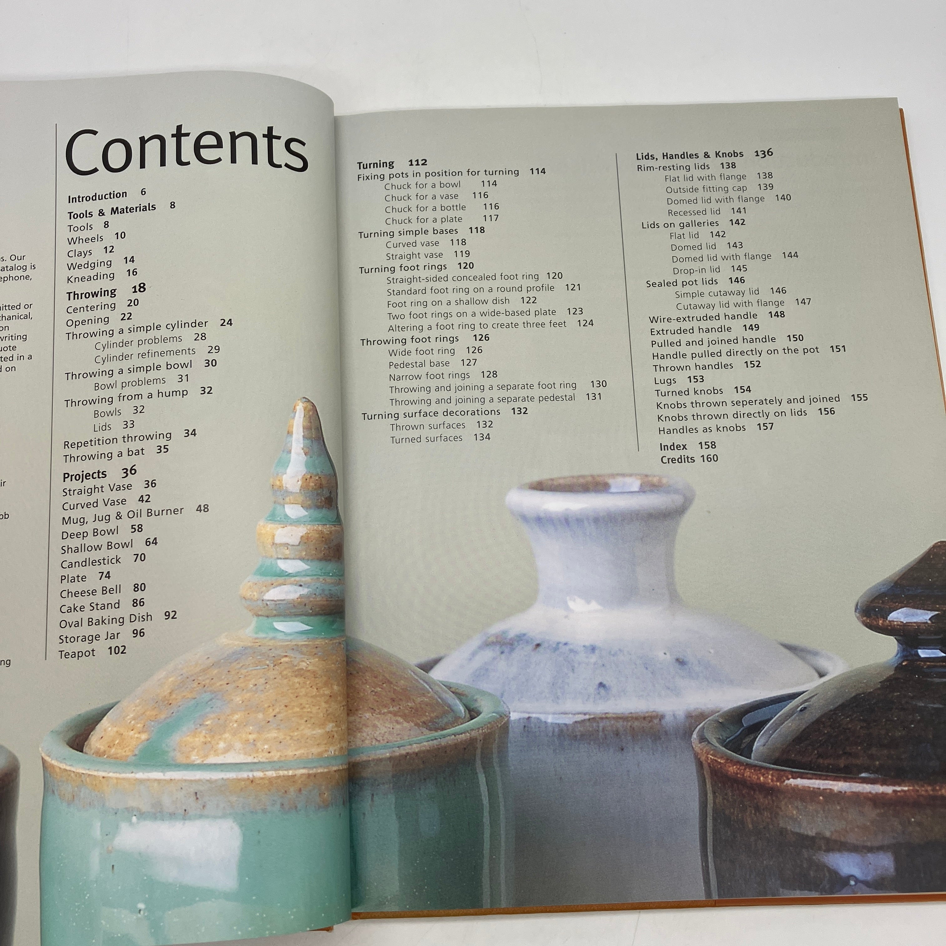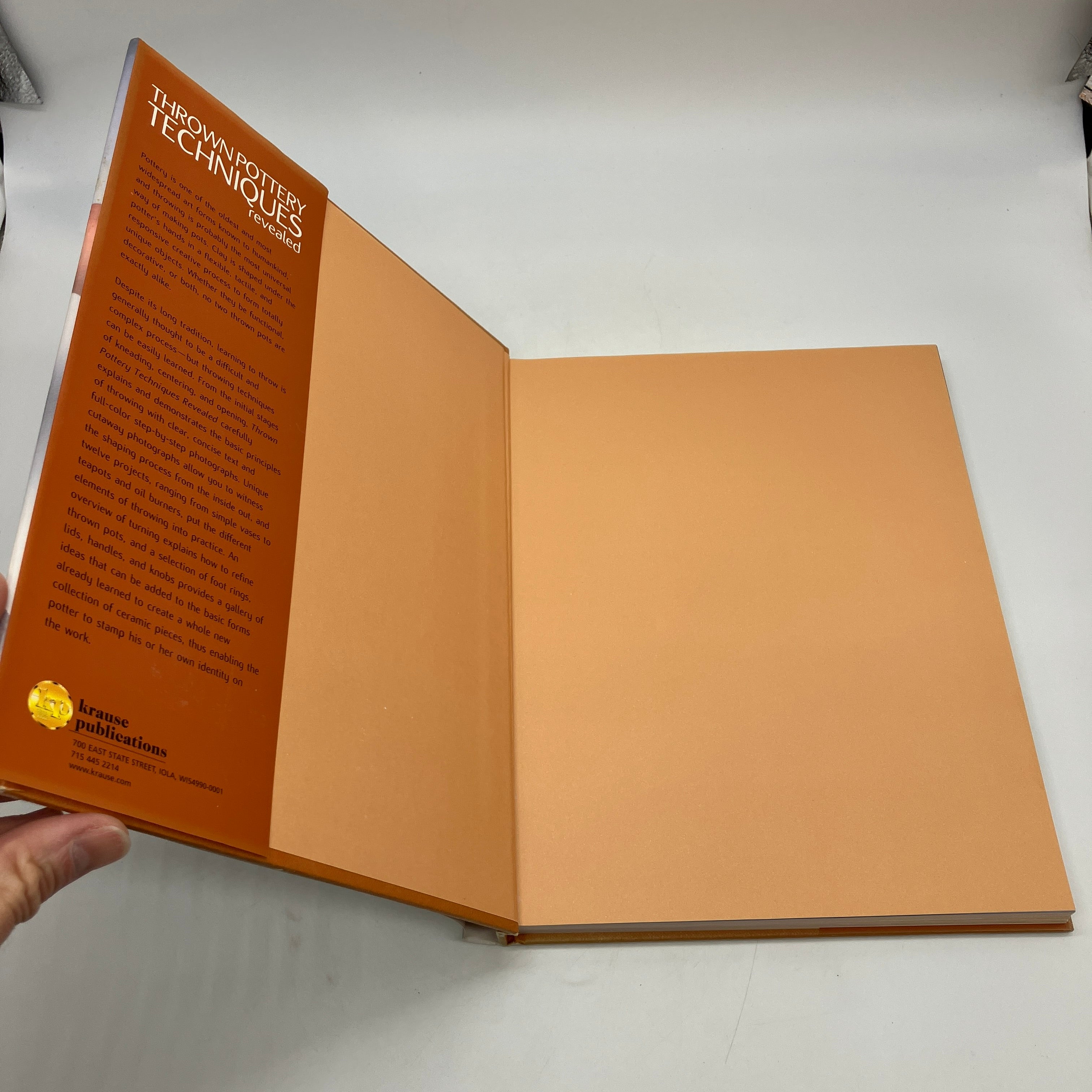 Krause Publications, 2001. Large cloth bound hardcover with dust jacket of Thrown Pottery Techniques Revealed: The Secrets of Perfect Throwing Shown in Unique Cutaway Photography by Mary Chappelhow.