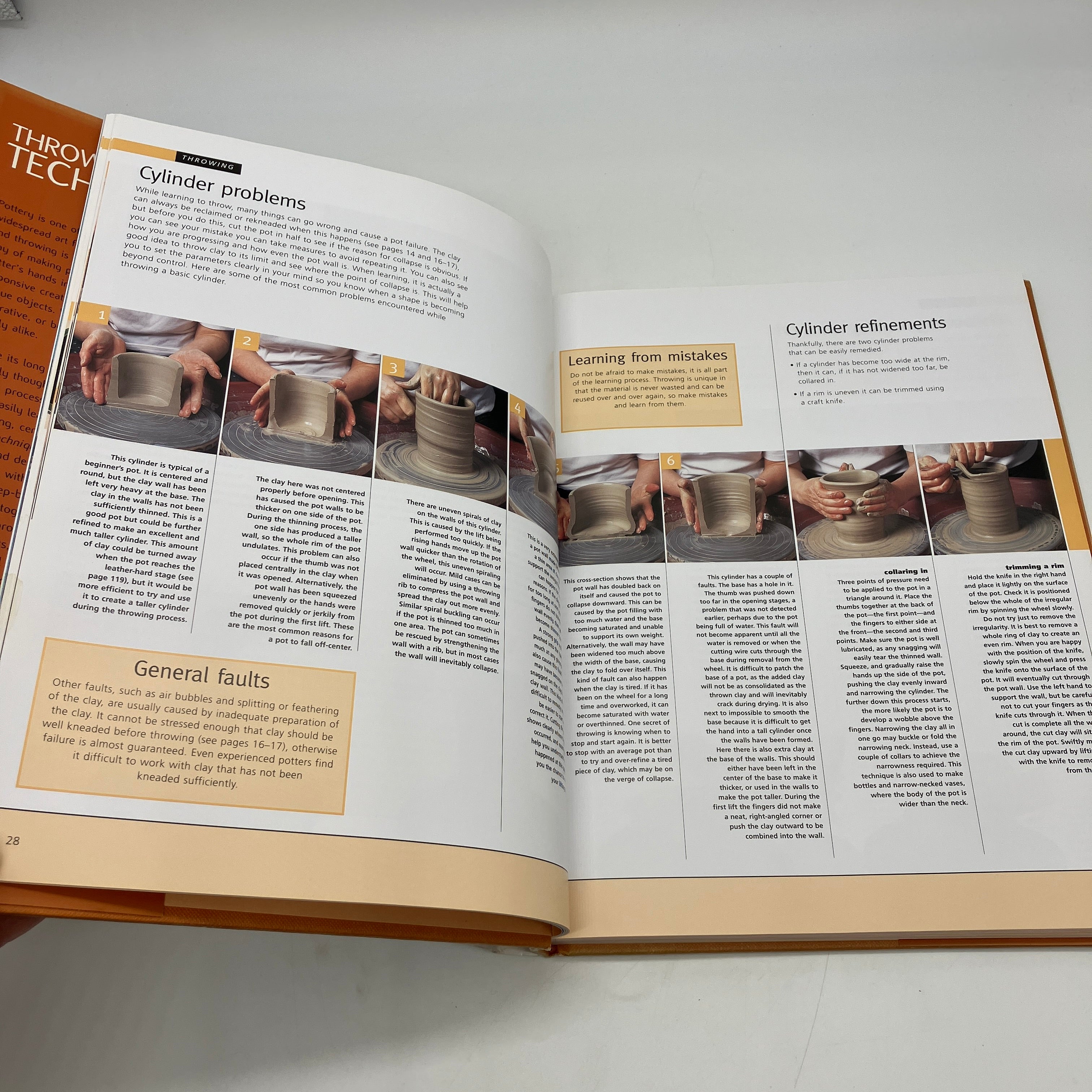 Step-by-step instructions on thrown pottery with tips on cylinder problems, lifting the wall, and coning up.