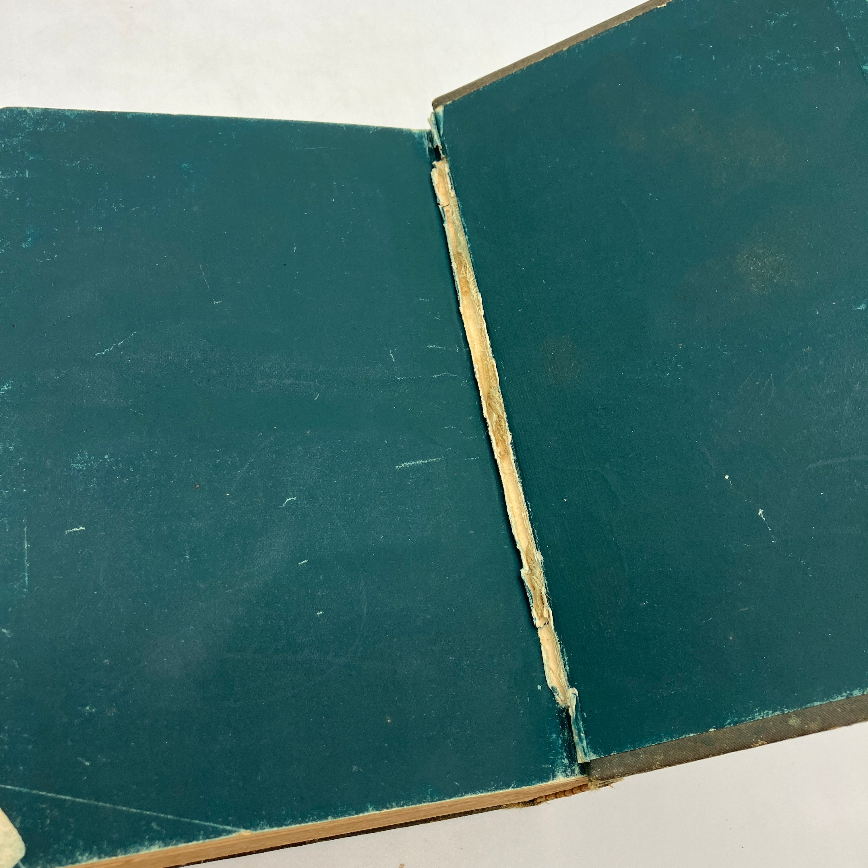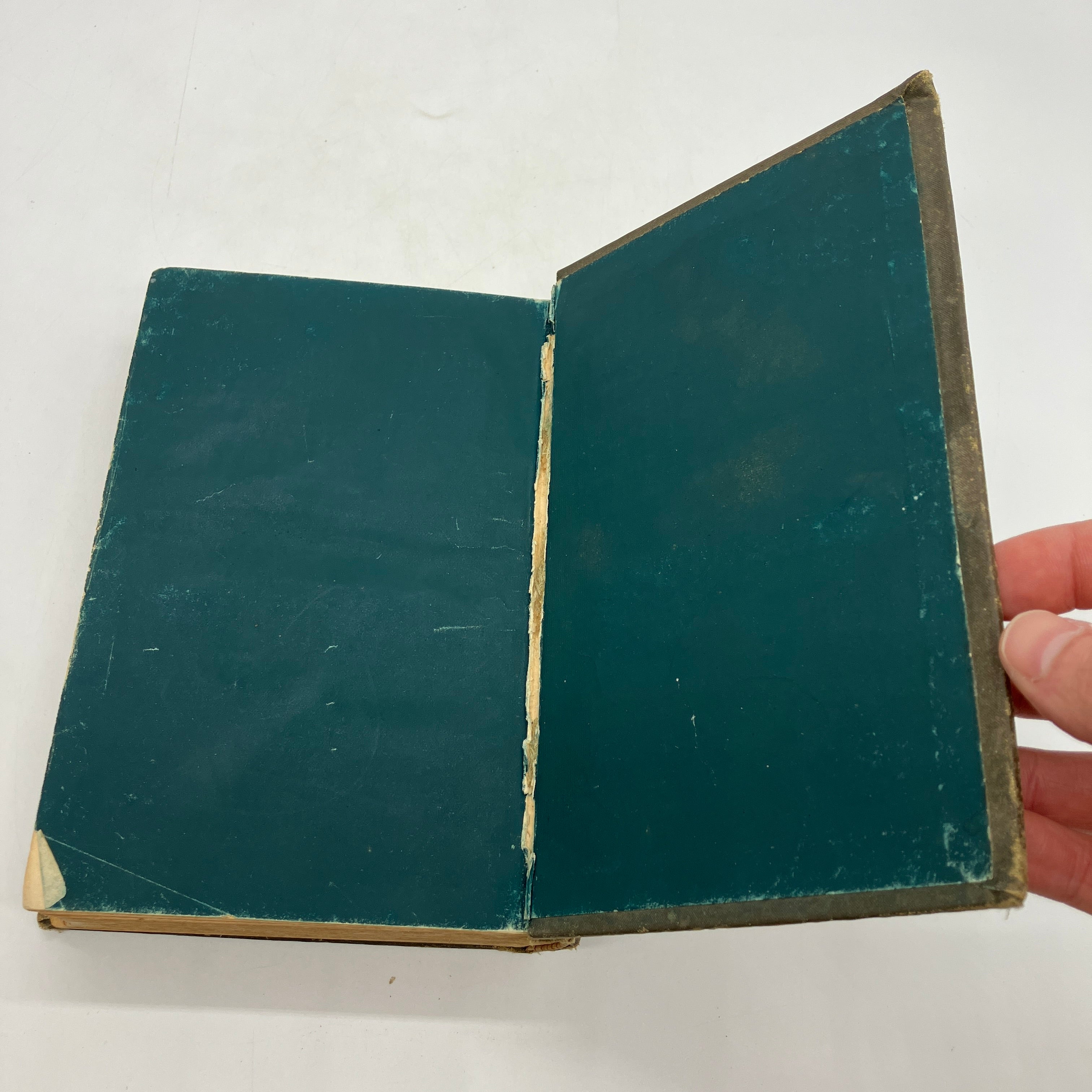 Good condition. Interior hinges are worn with tearing at the end papers, but intact. Covers cloth material worn and scuffed. Isolated spot of damage to the cloth near the top of the spine. Open tear to the front free end paper near the hinge. Page block edges soiled. Long tear to the first page of ads. Interior pages clean. Solid book with shelf wear.