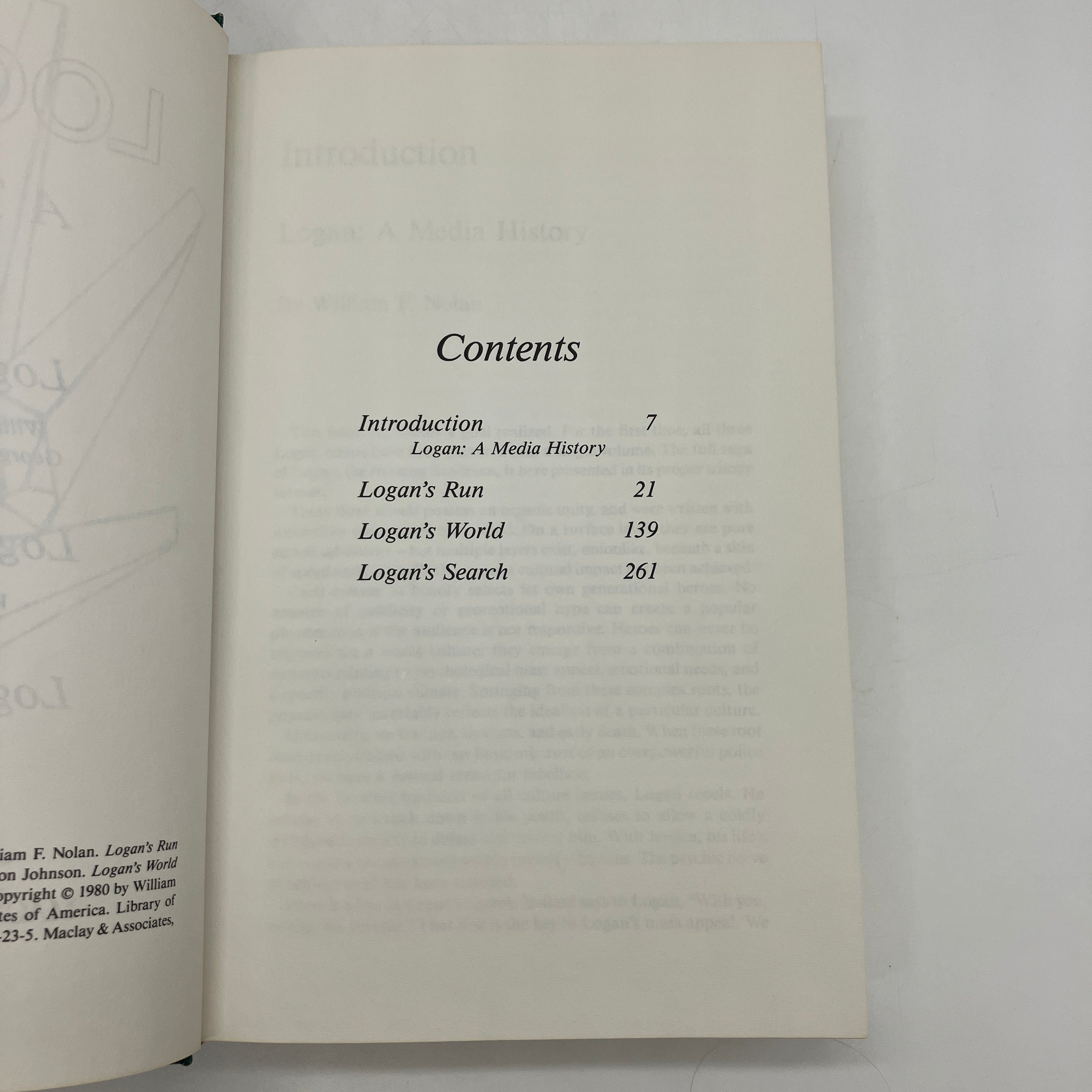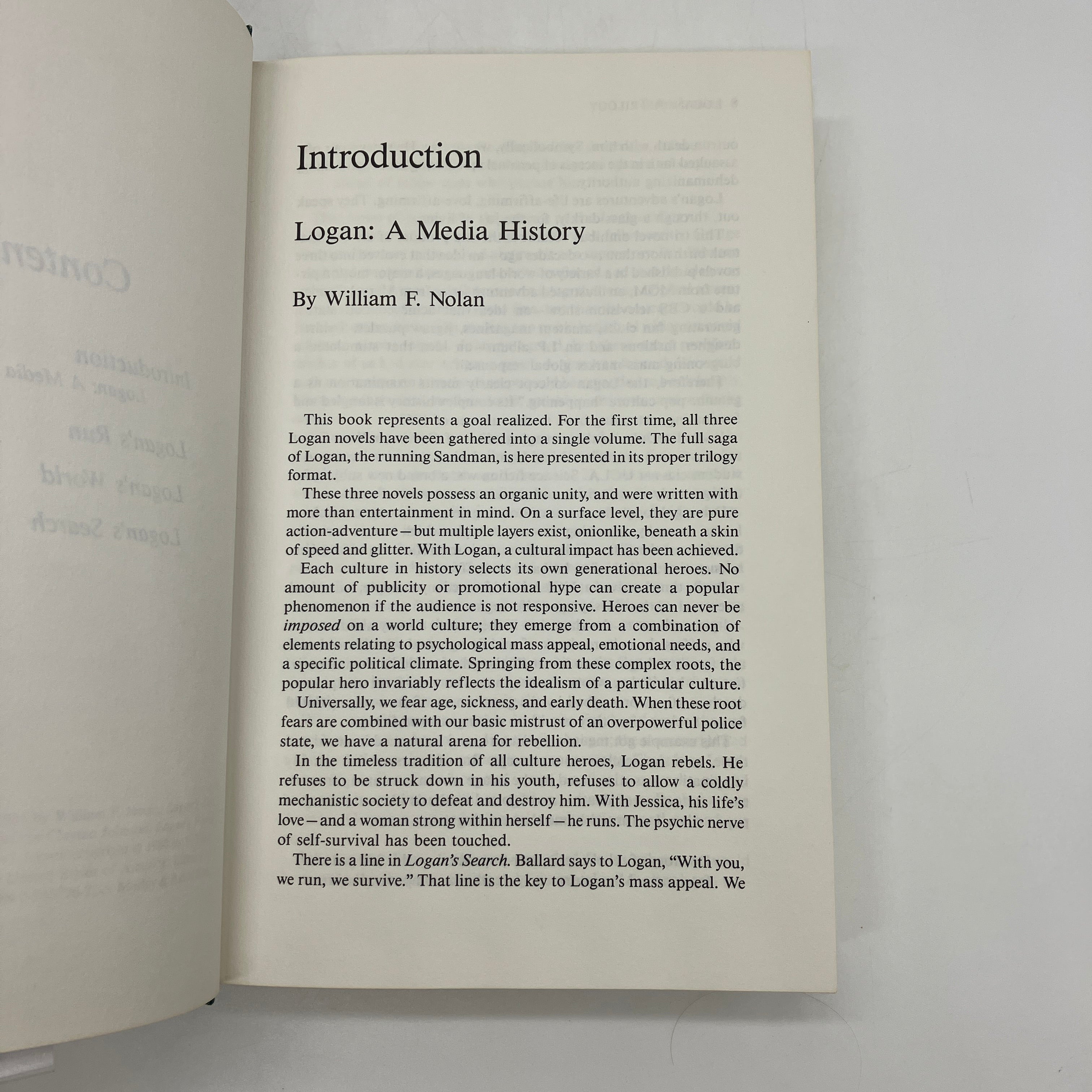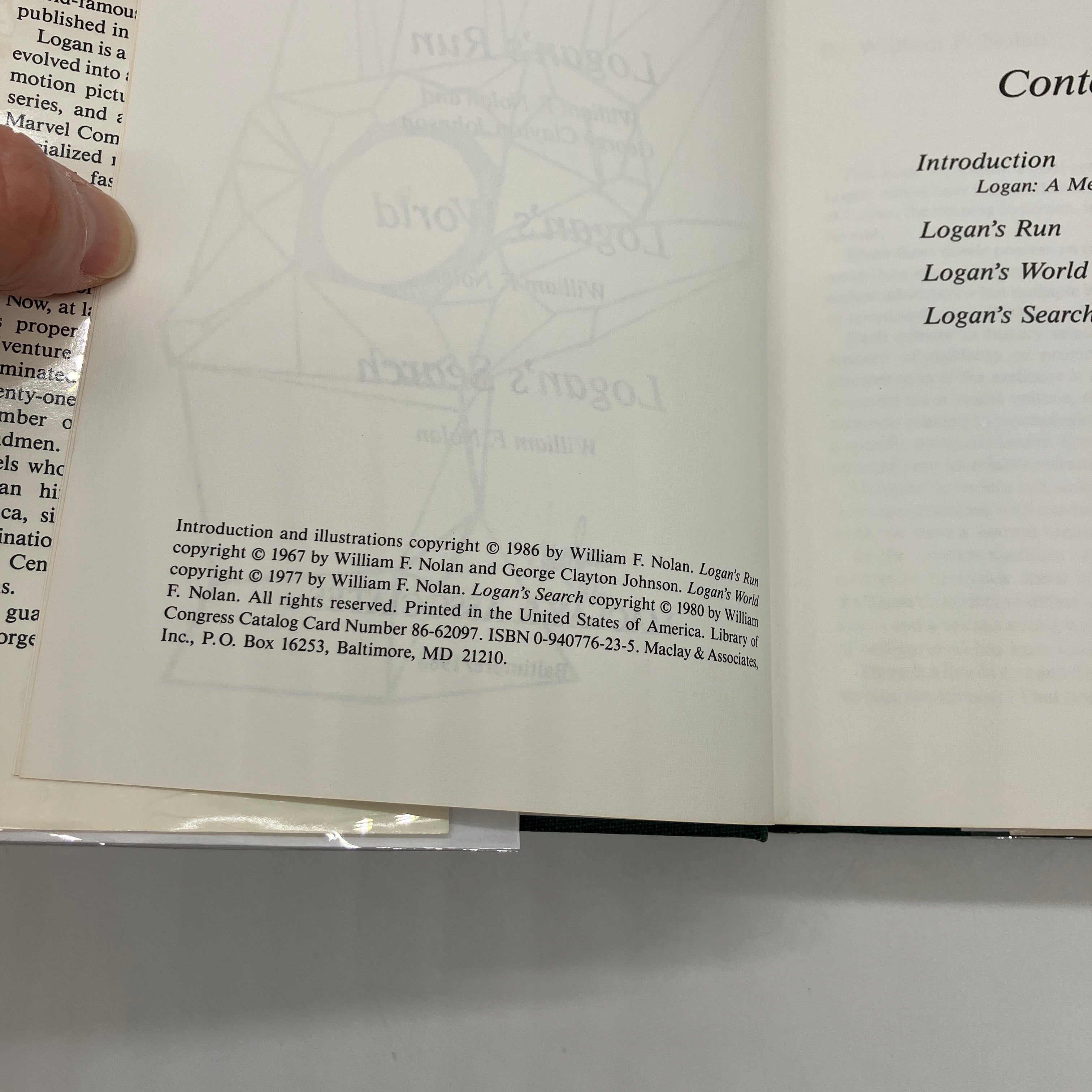 Maclay and Associates, 1986. First omnibus edition cloth bound hardcover with dust jacket of Logan: A Trilogy by William F. Nolan.