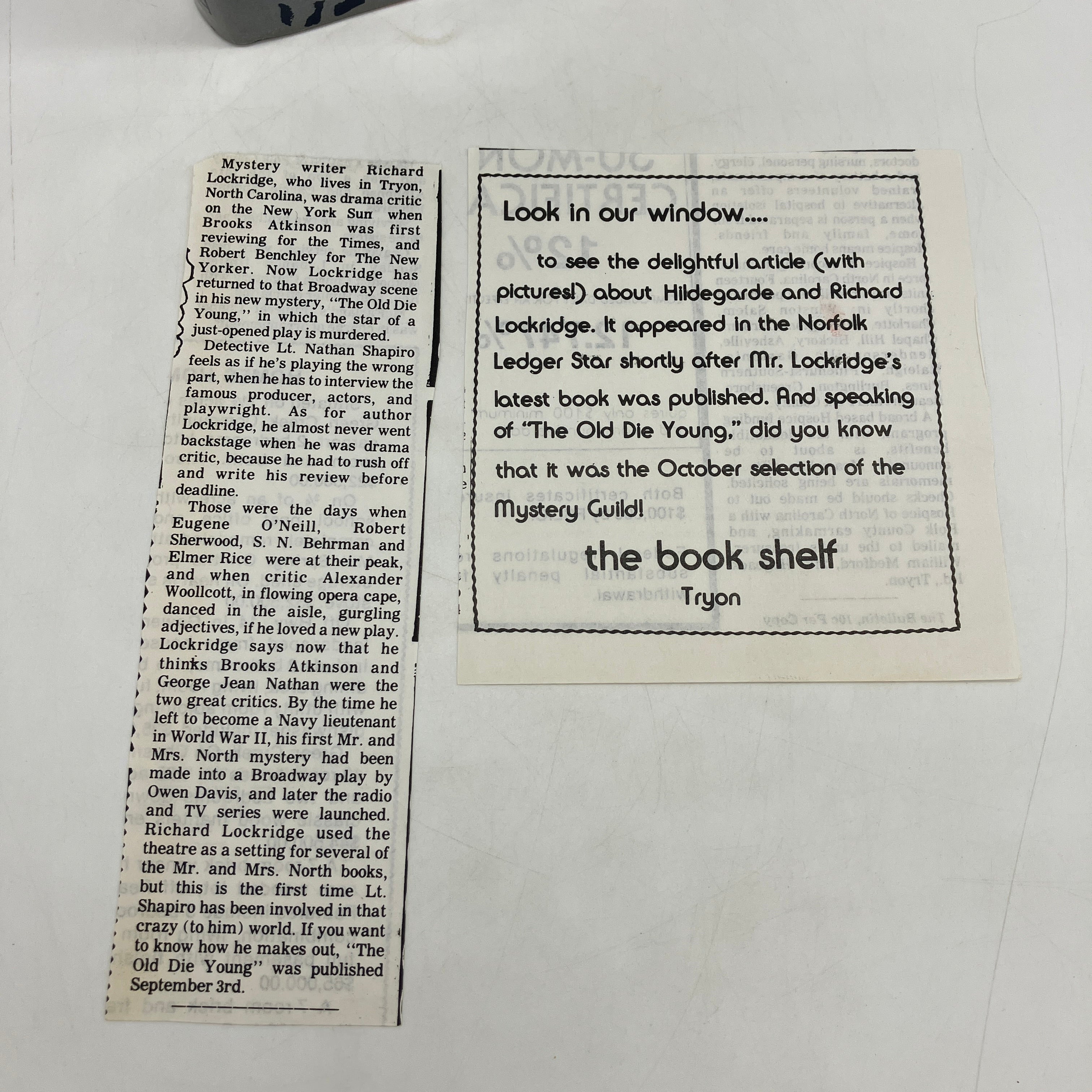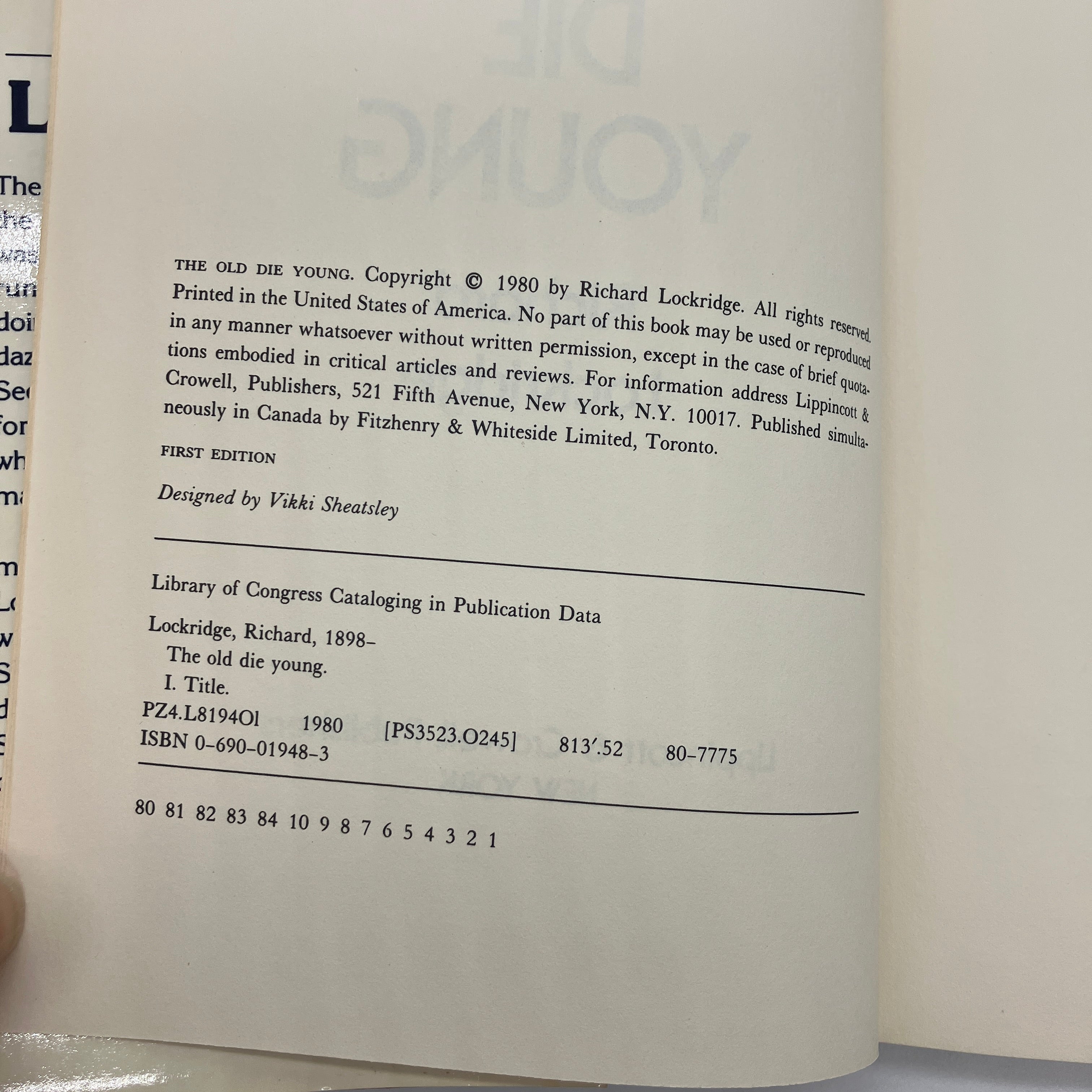 Lippincott & Crowell, 1980. Signed first edition hardcover with dust jacket of The Old Die Young by Richard Lockridge.
