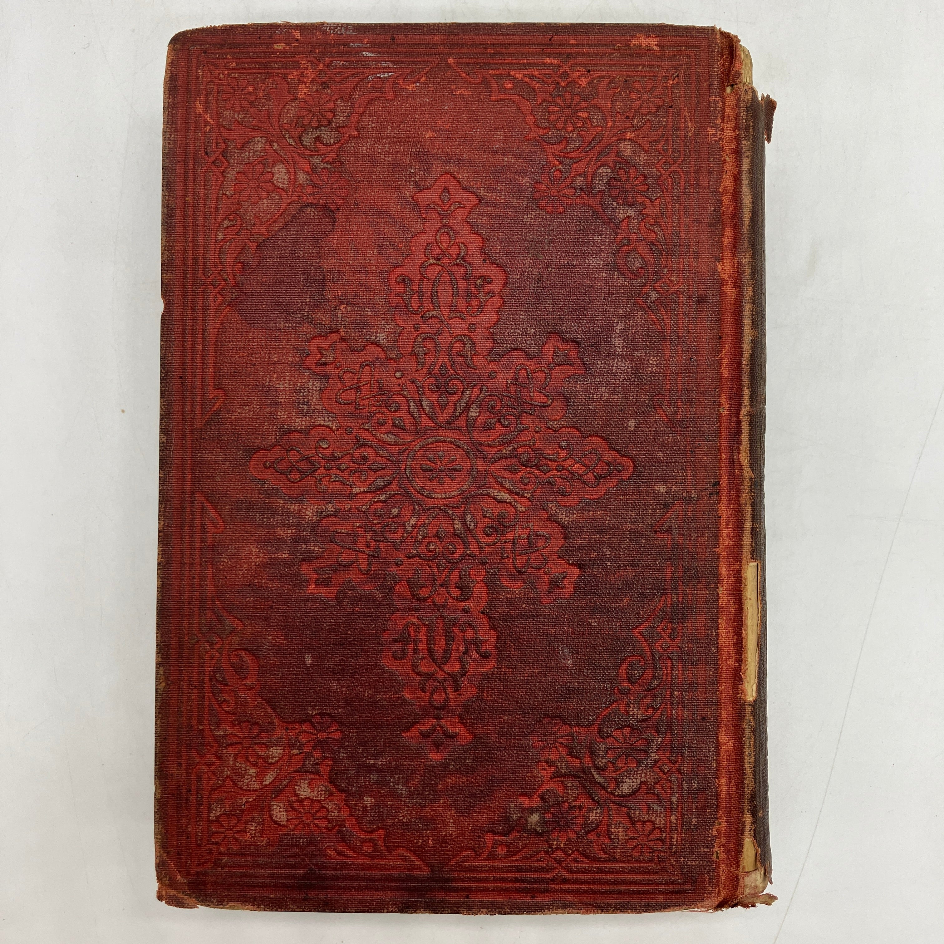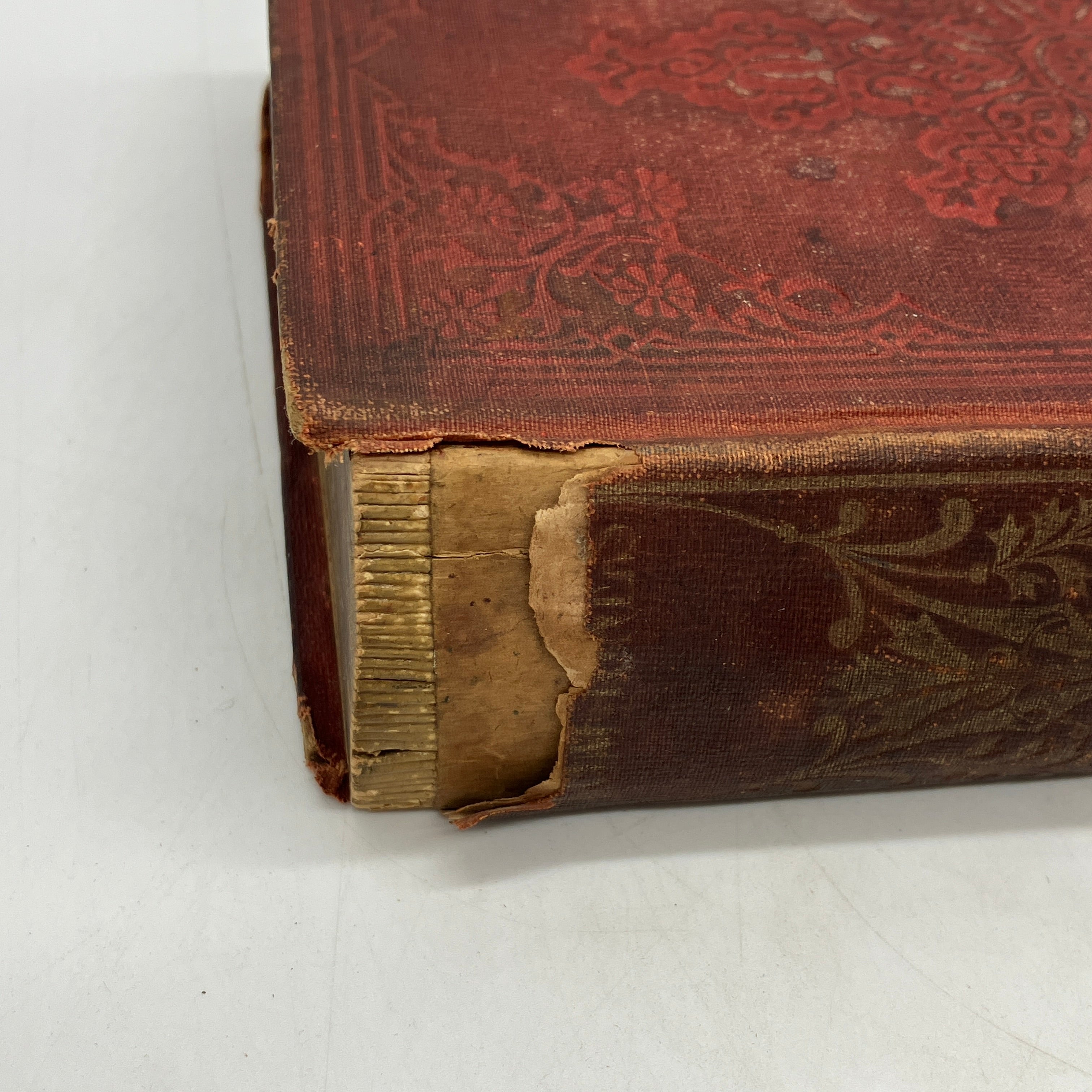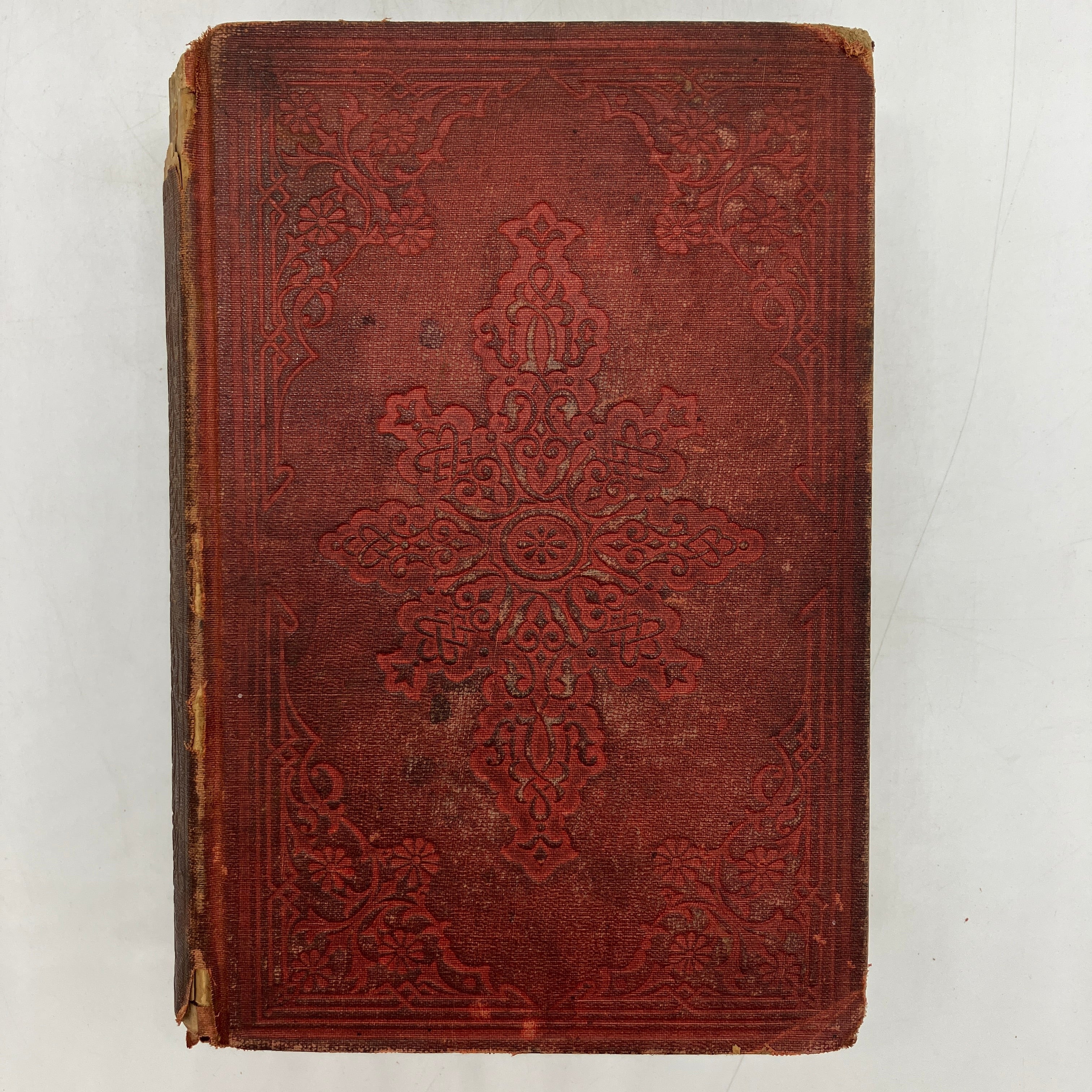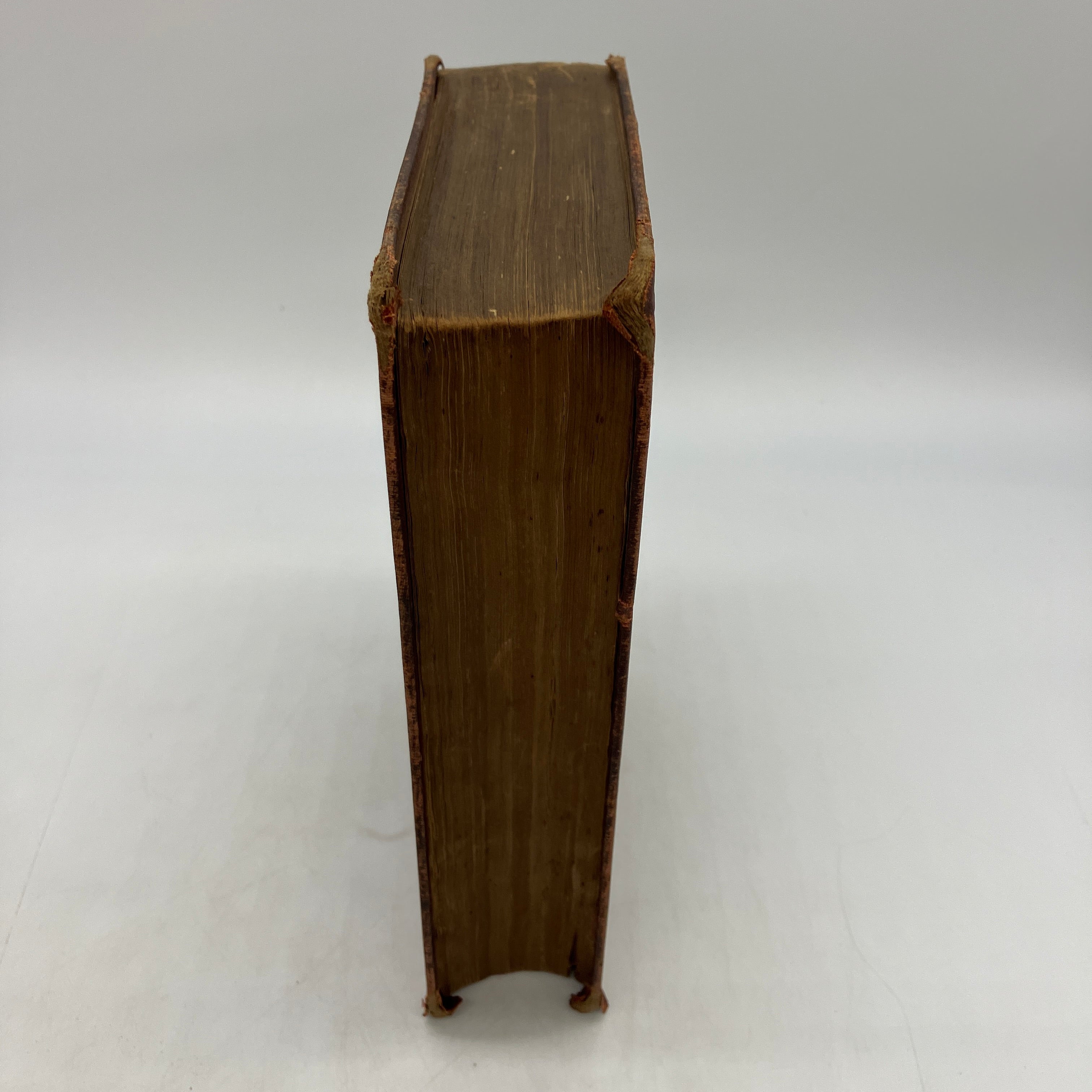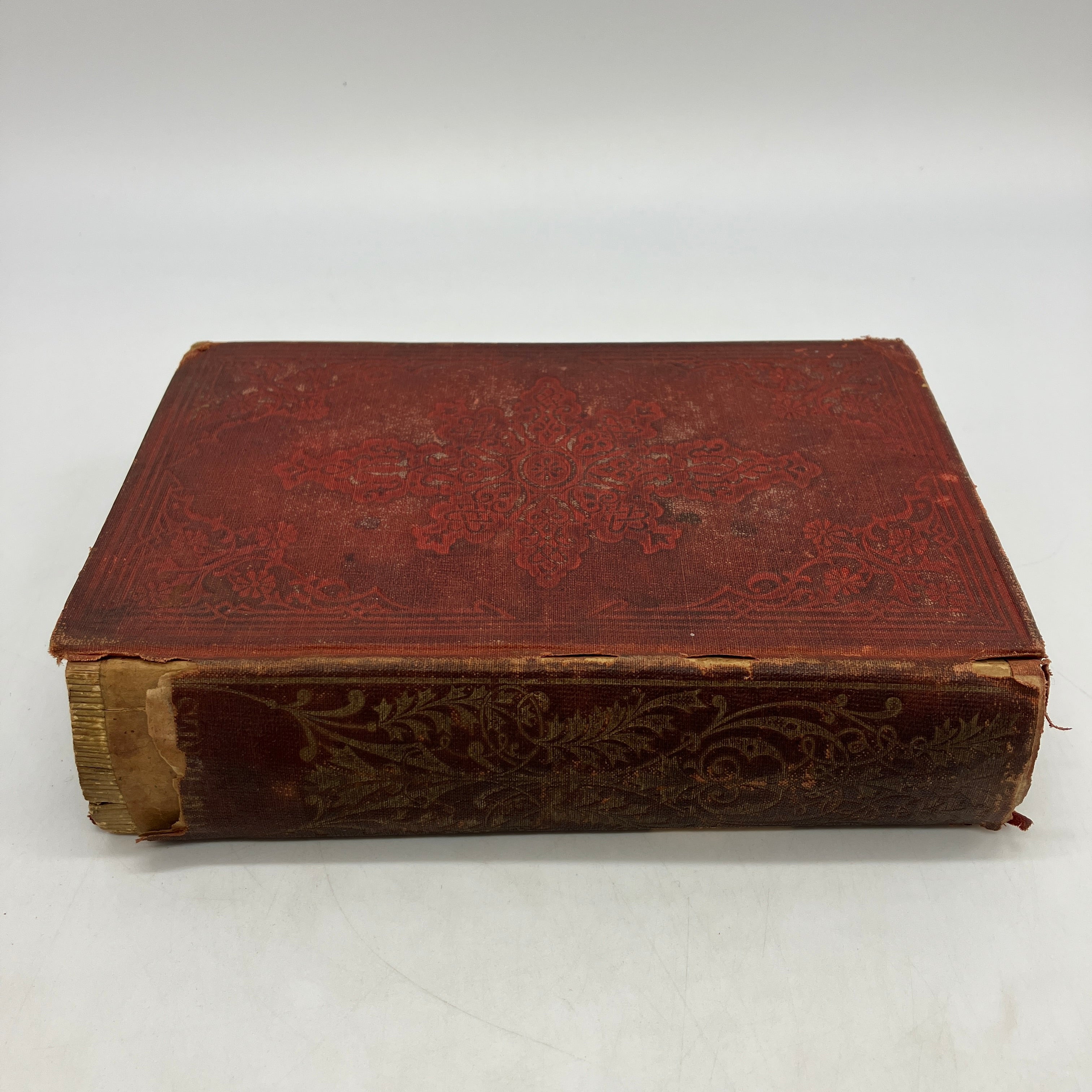 POOR condition. 1-inch of chipping to the top of the spine, and additional chipping at the bottom and hinges. Covers soiled and worn. Binding loose. Front fly leaf is cleanly torn out. No illustrations in the book, except for the frontispiece. Spotting to pages. Lots of folded page corners. 1 long horizontal tear found to page 51. A few previous owner markings to the margins, and previous owner's name inside the front cover. Book is complete. Antiquarian book in poor but readable condition.