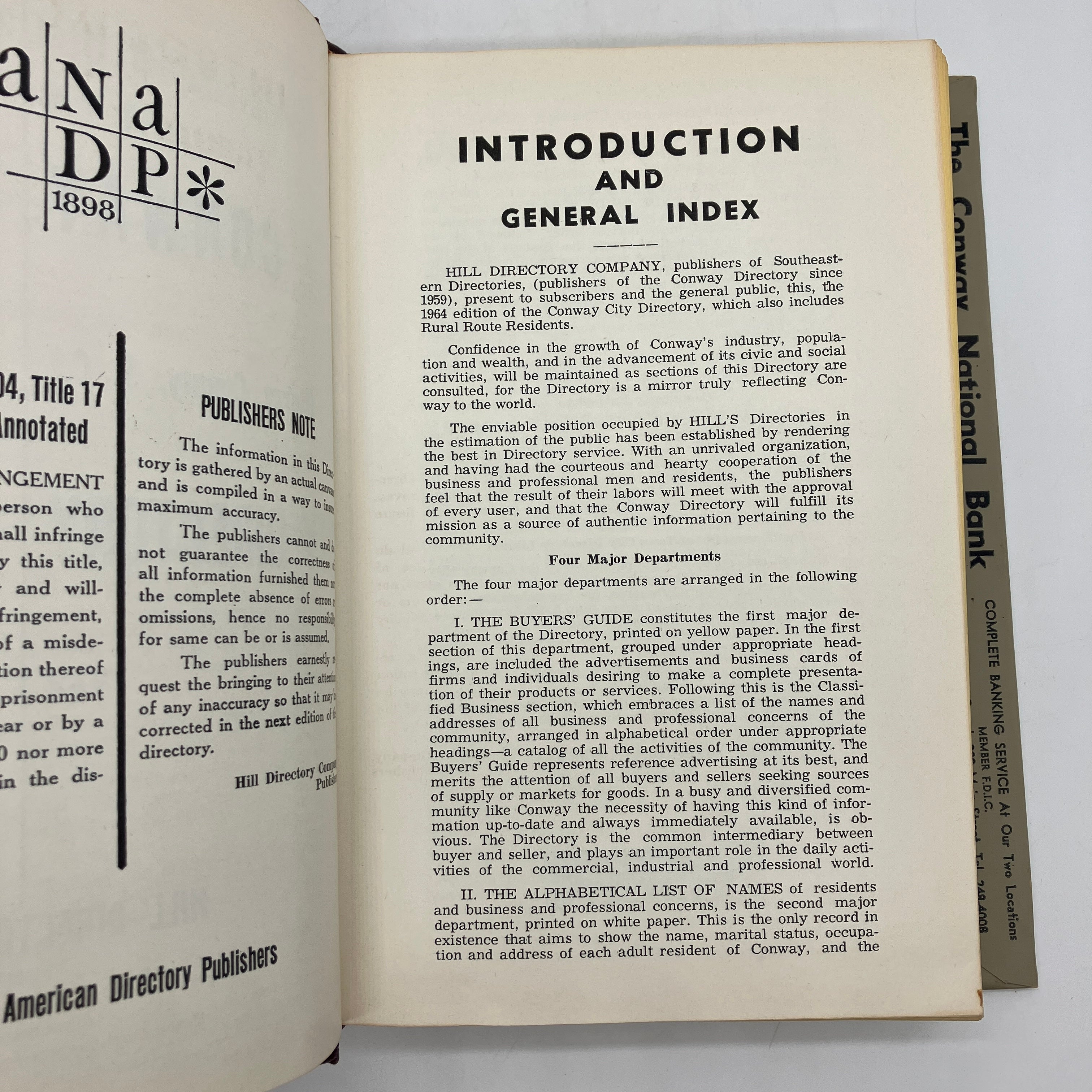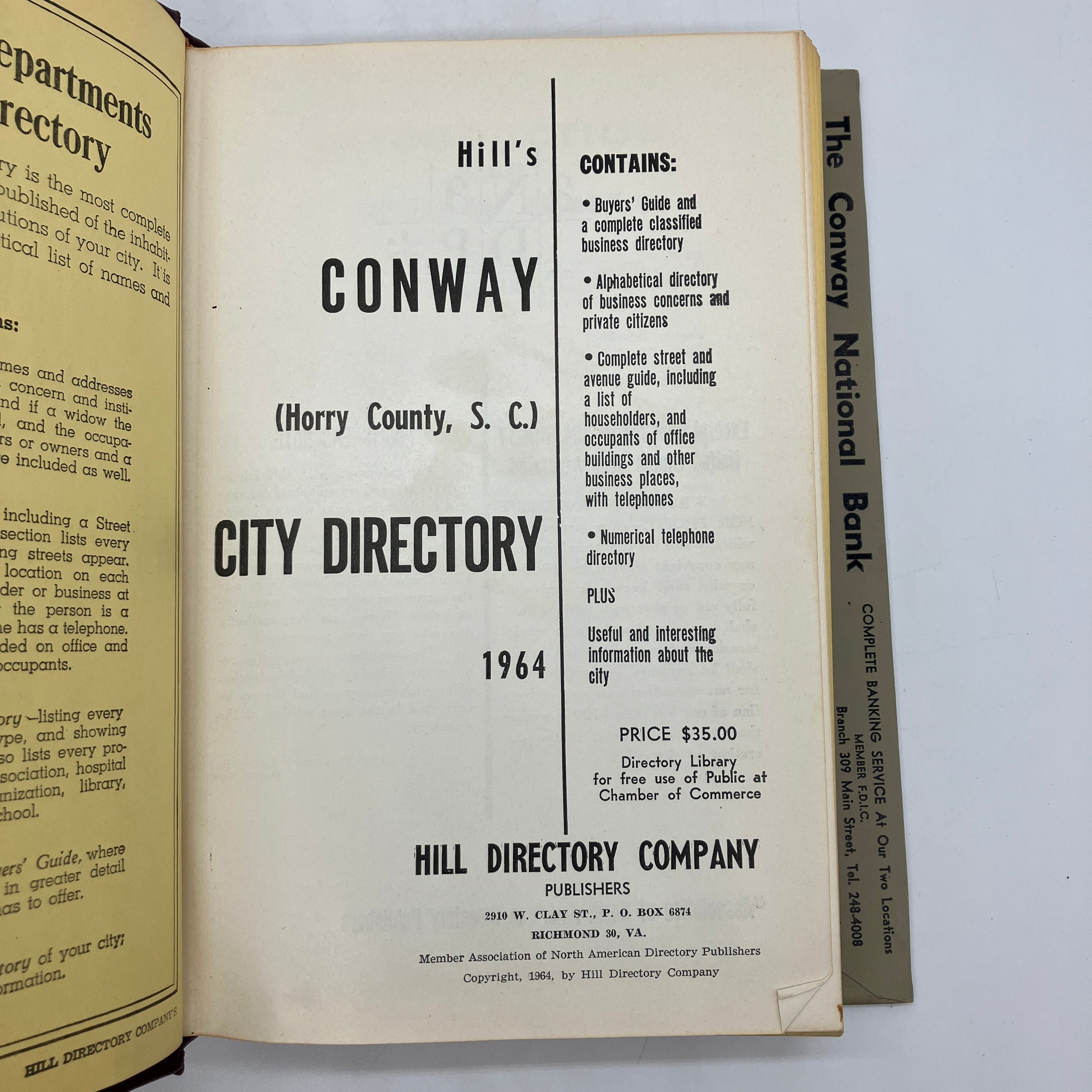 Hill Directory Company, 1964. Hardcover of Hill's Conway, S.C. City Directory Horry County, South Carolina by Hill Directory Company.