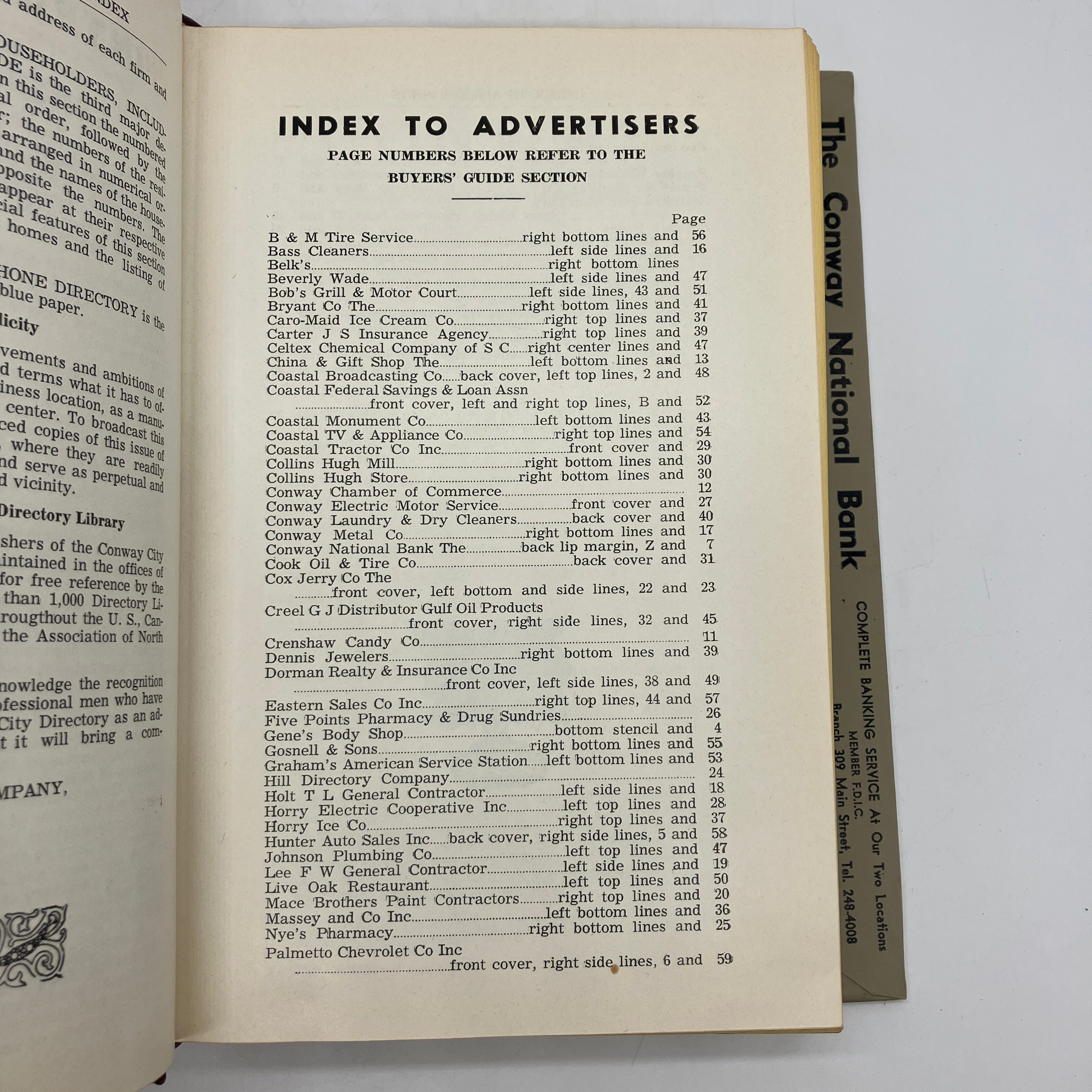 Conway, SC Hill's City Phone Directory (1964) Horry County Myrtle Beach Metro HC