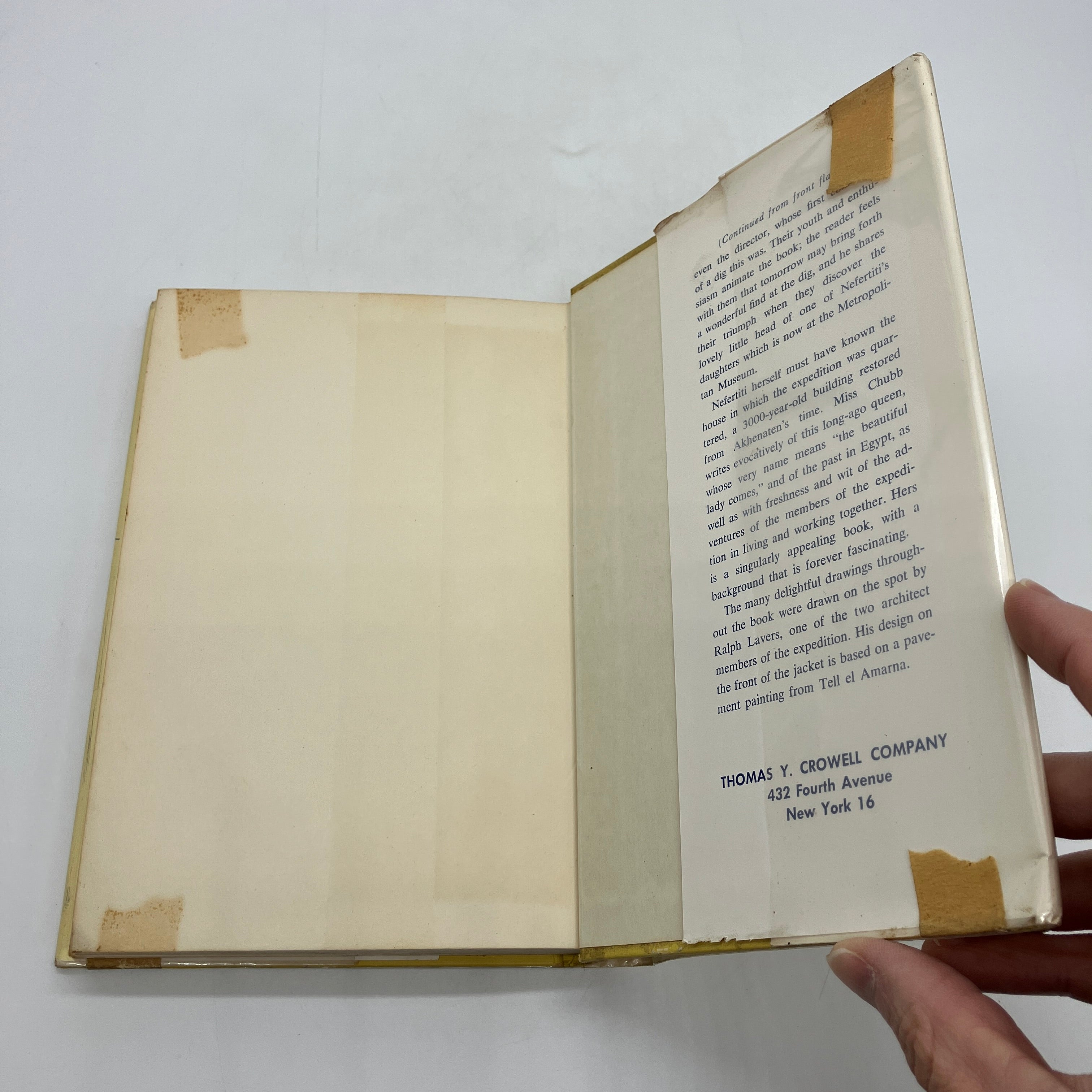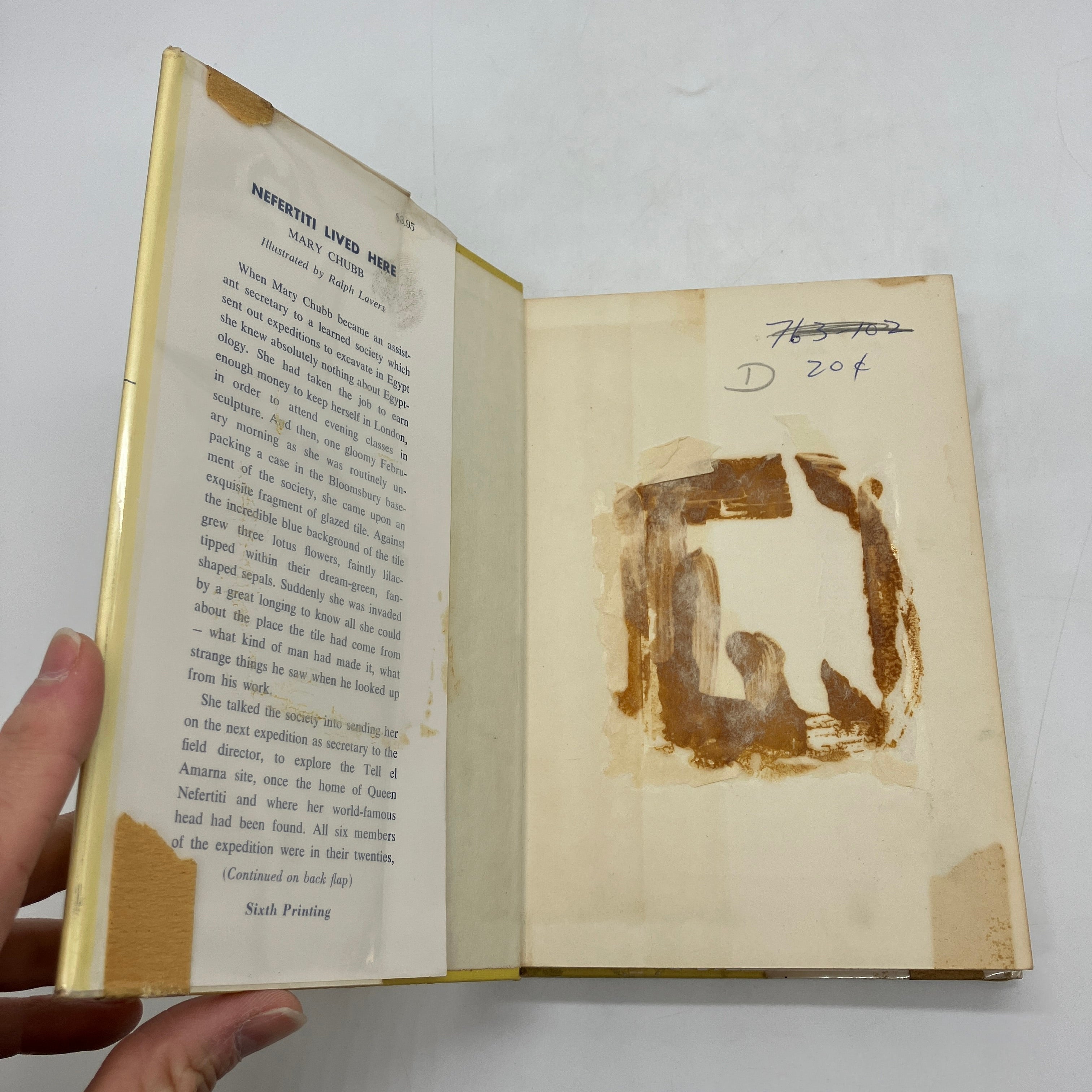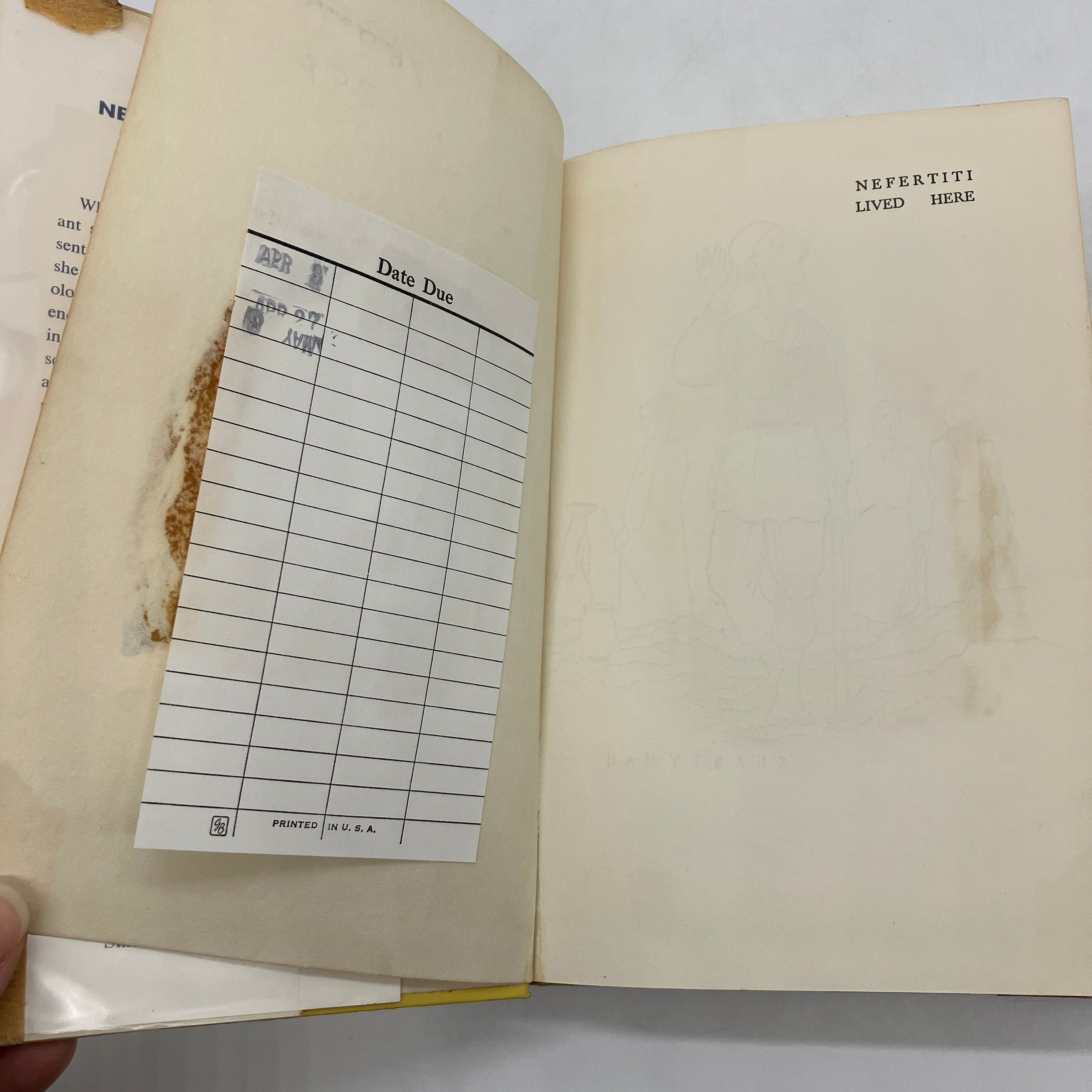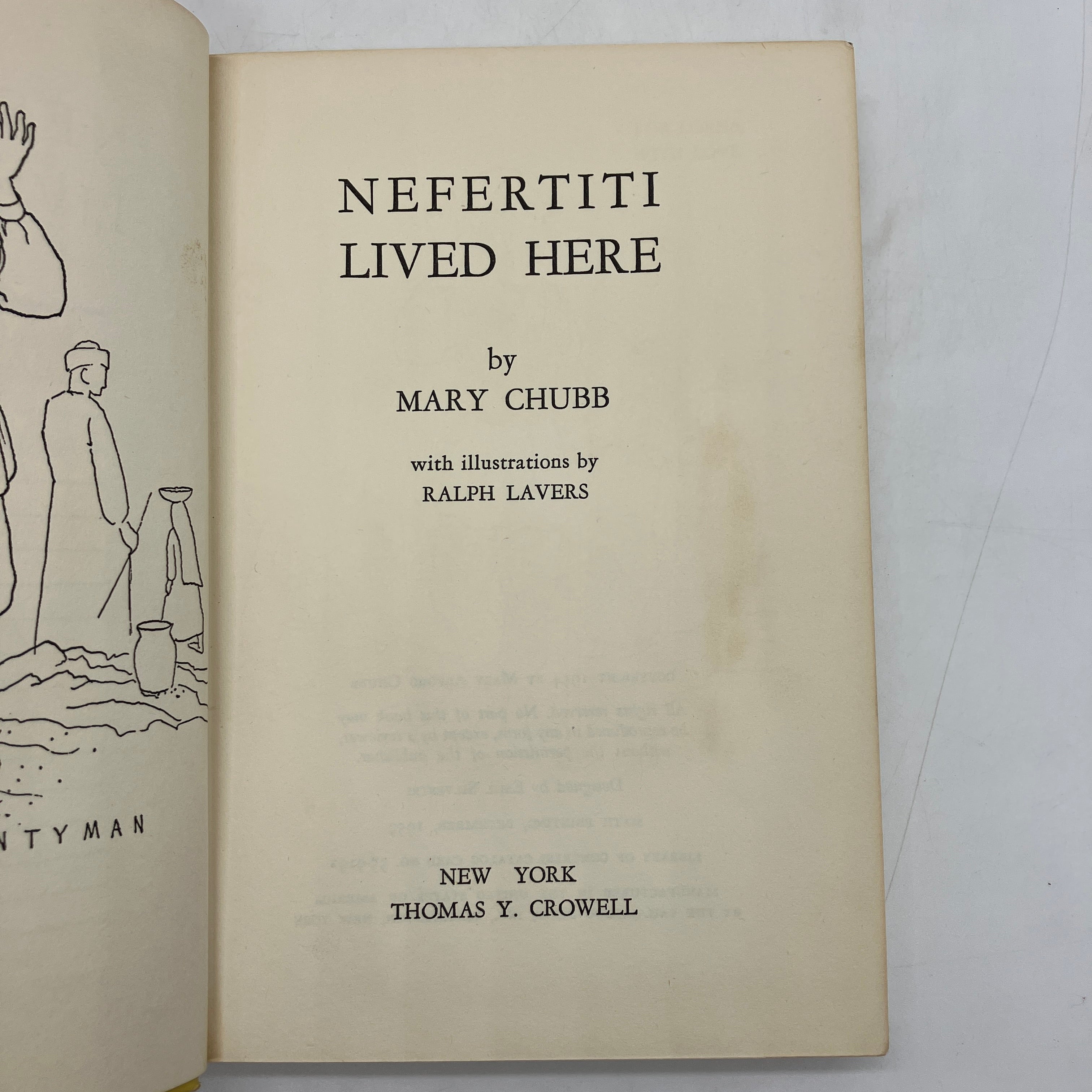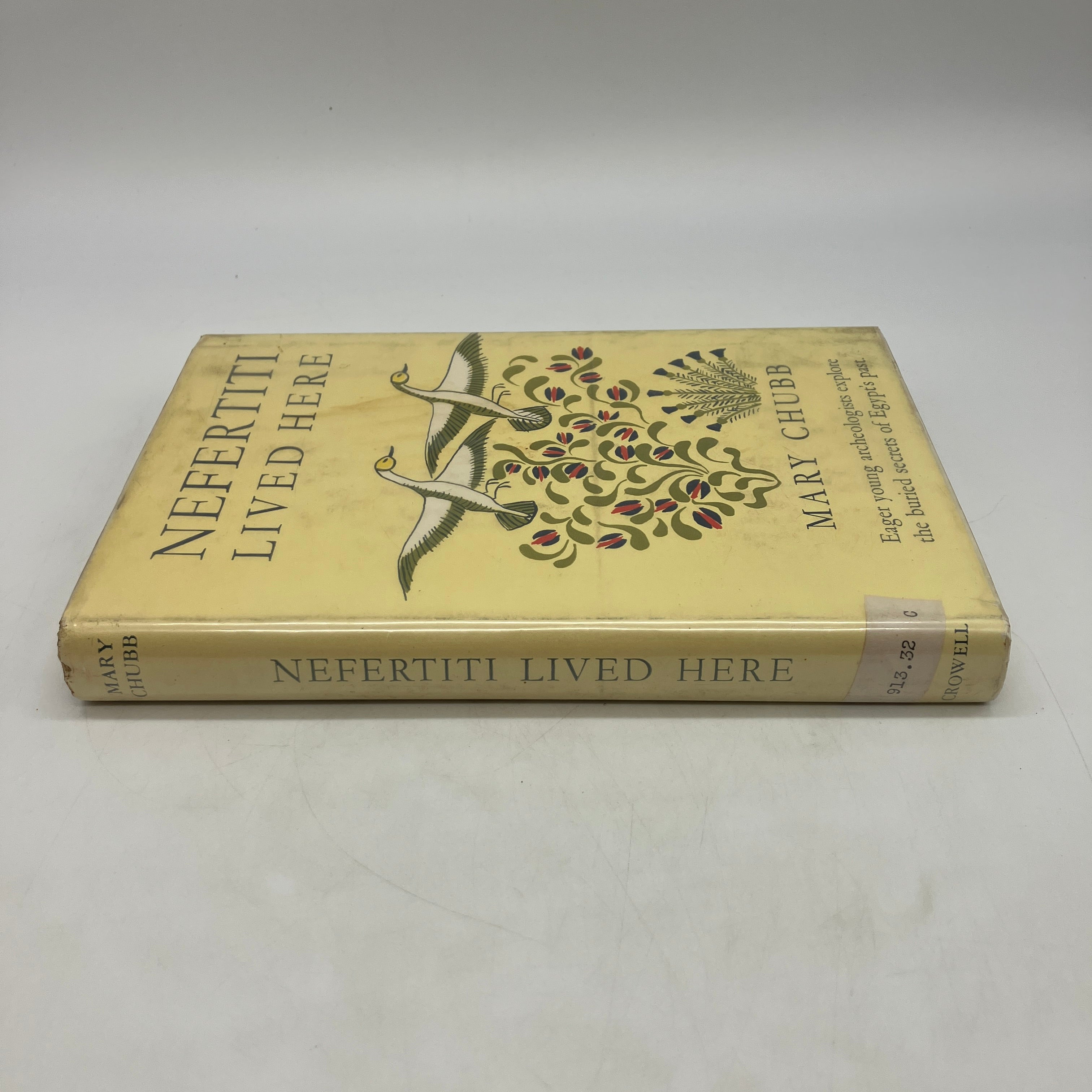 Thomas Y. Crowell, 1959. Ex-library cloth bound hardcover with dust jacket of Nefertiti Lived Here by Mary Chubb.