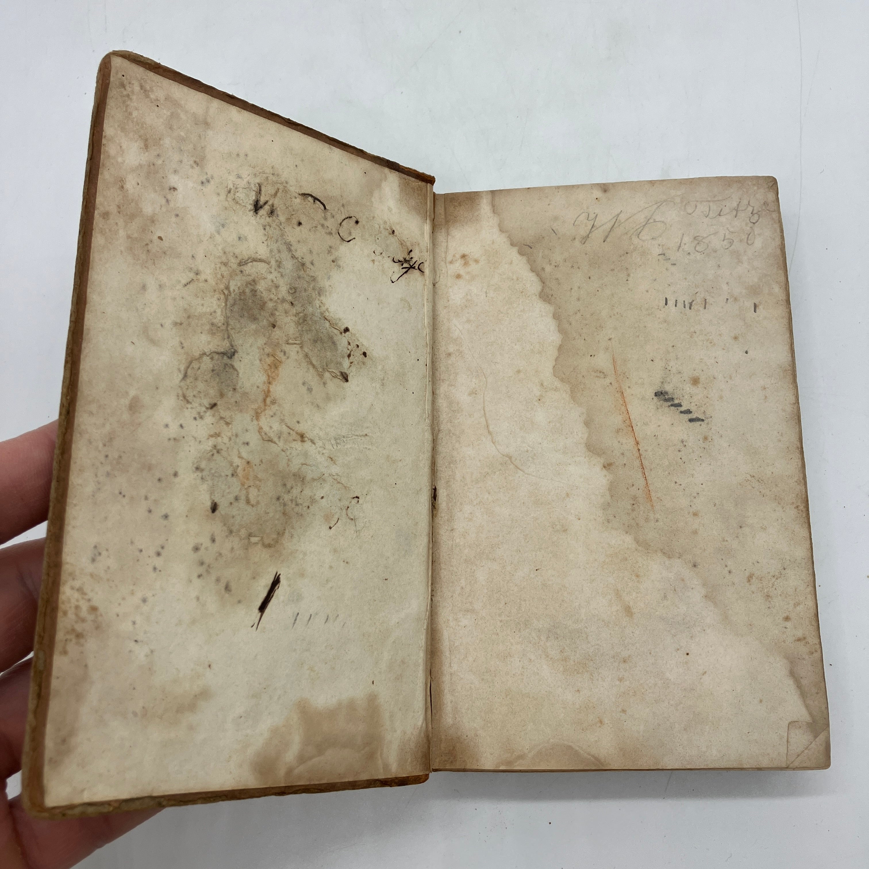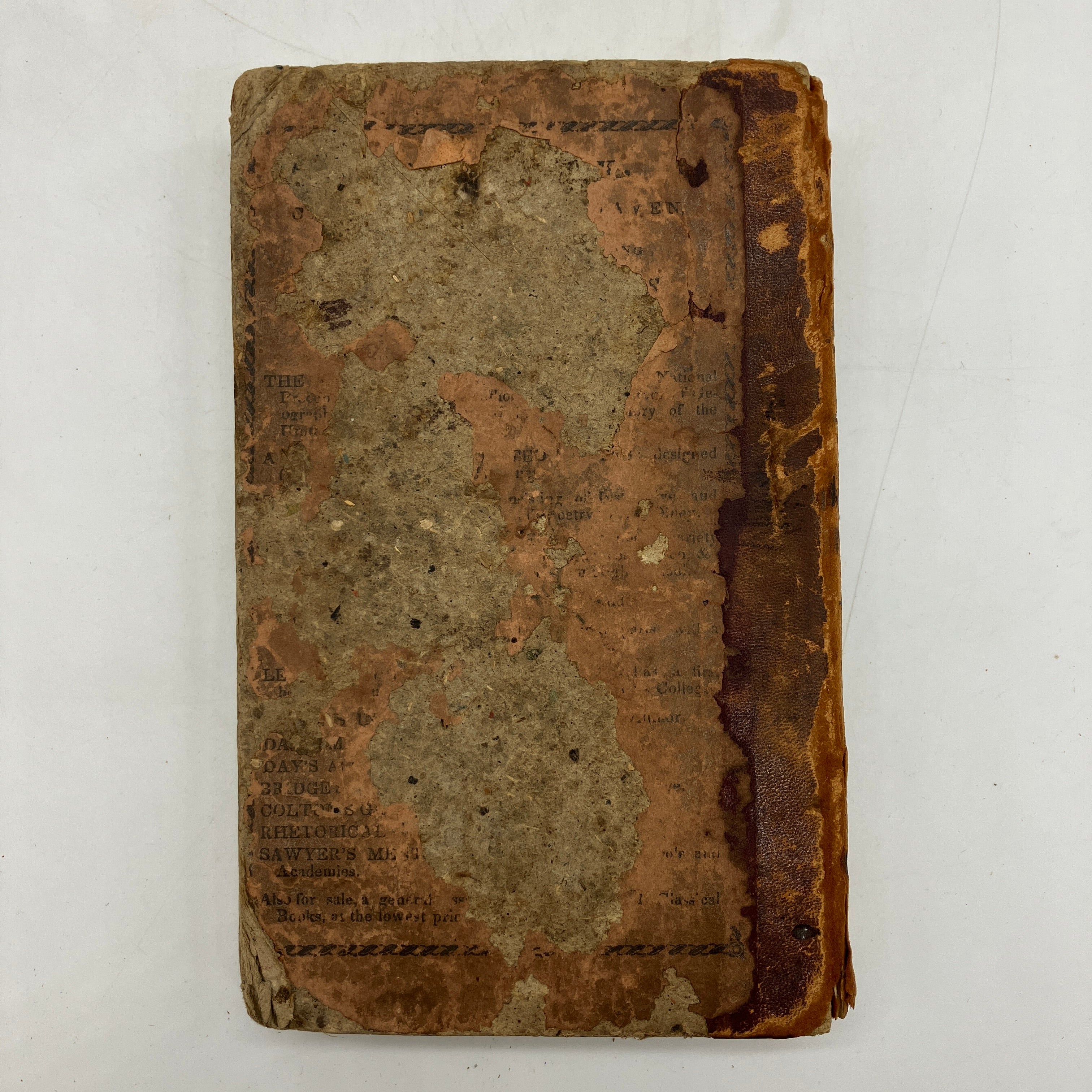 Fair condition. Covers very worn and faded, with material flaking off the spine. Crown and foot of spine chipped away. Binding intact and a little loose. Previous owner/student markings inside the covers. Small pencil markings to the pages throughout that do not obscure text. Illustrations have been partially hand-colored by a bored student. Liquid stains to the early pages of the book. The last few blank pages, including the rear fly leaf, appear to have been cleanly cut out of the book. Okay antiquarian book, complete, in fair condition.