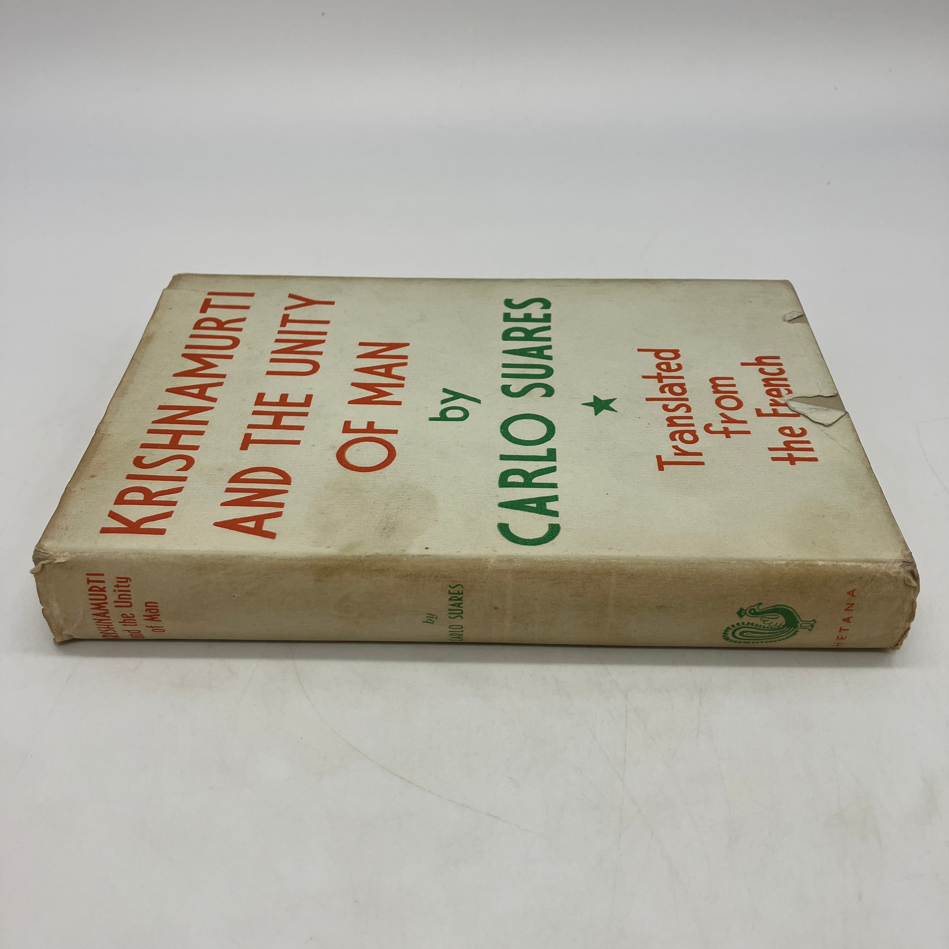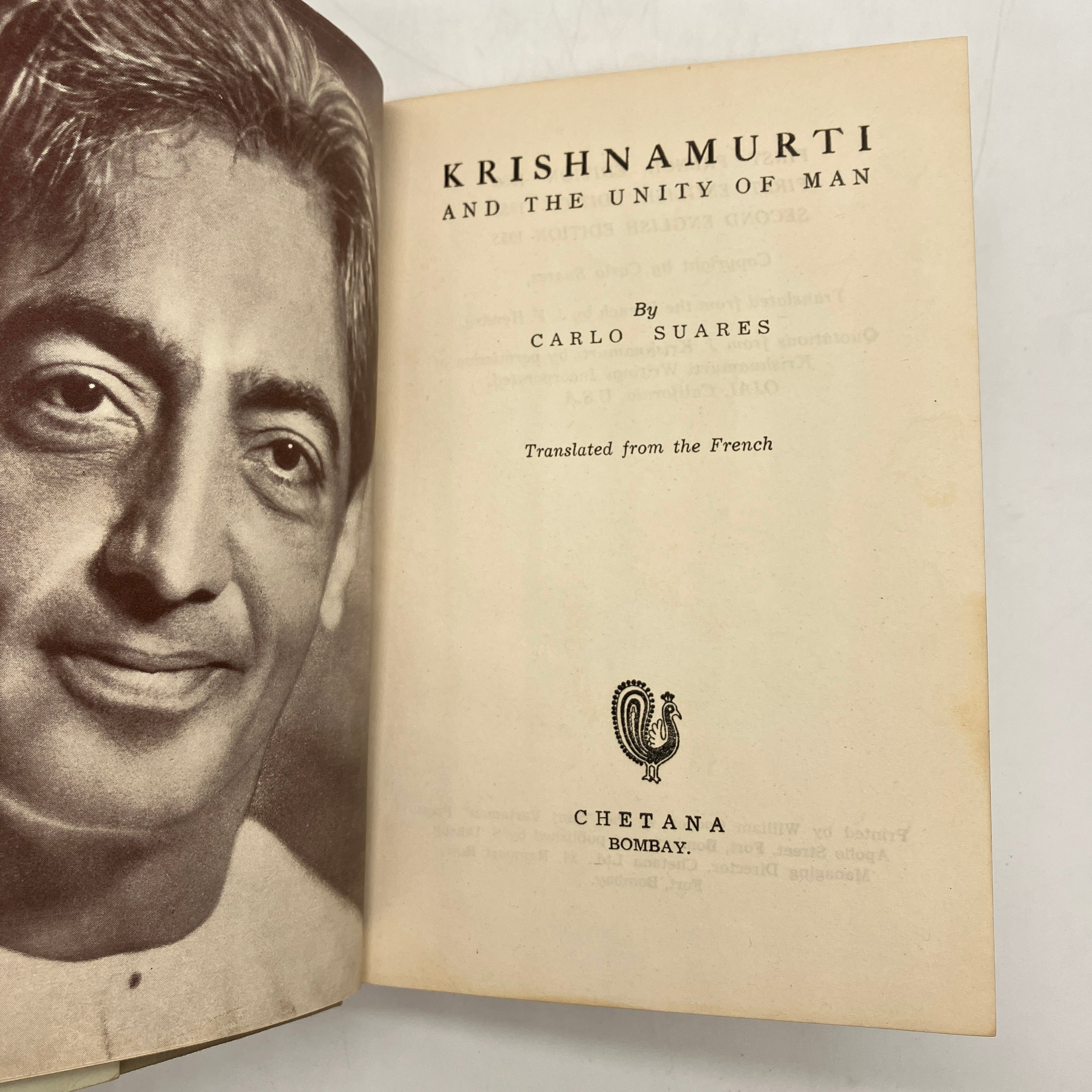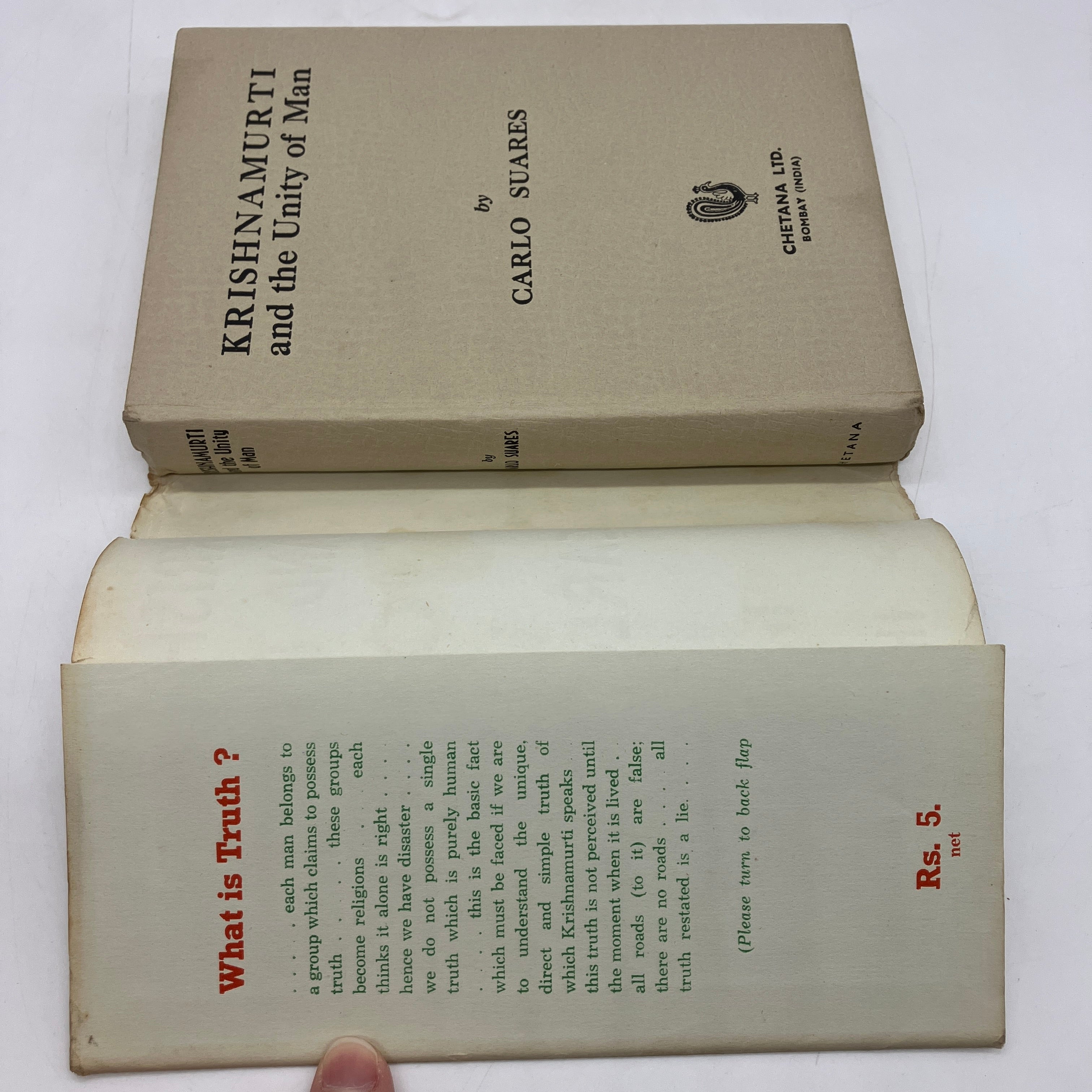 Chetana: Bombay, 1974. Cloth bound hardcover with dust jacket of Krishnamurti and the Unity of Man by Carlo Suares.