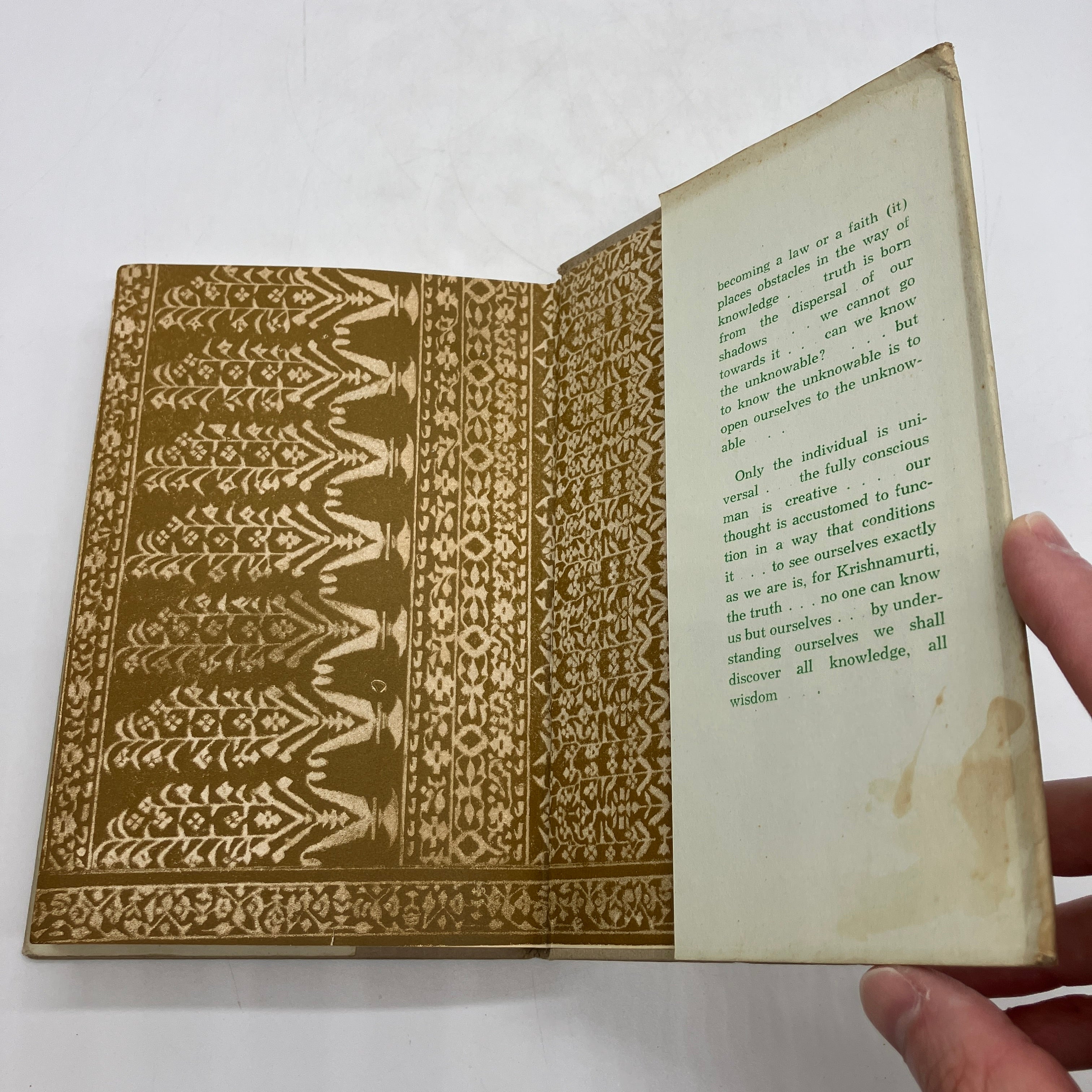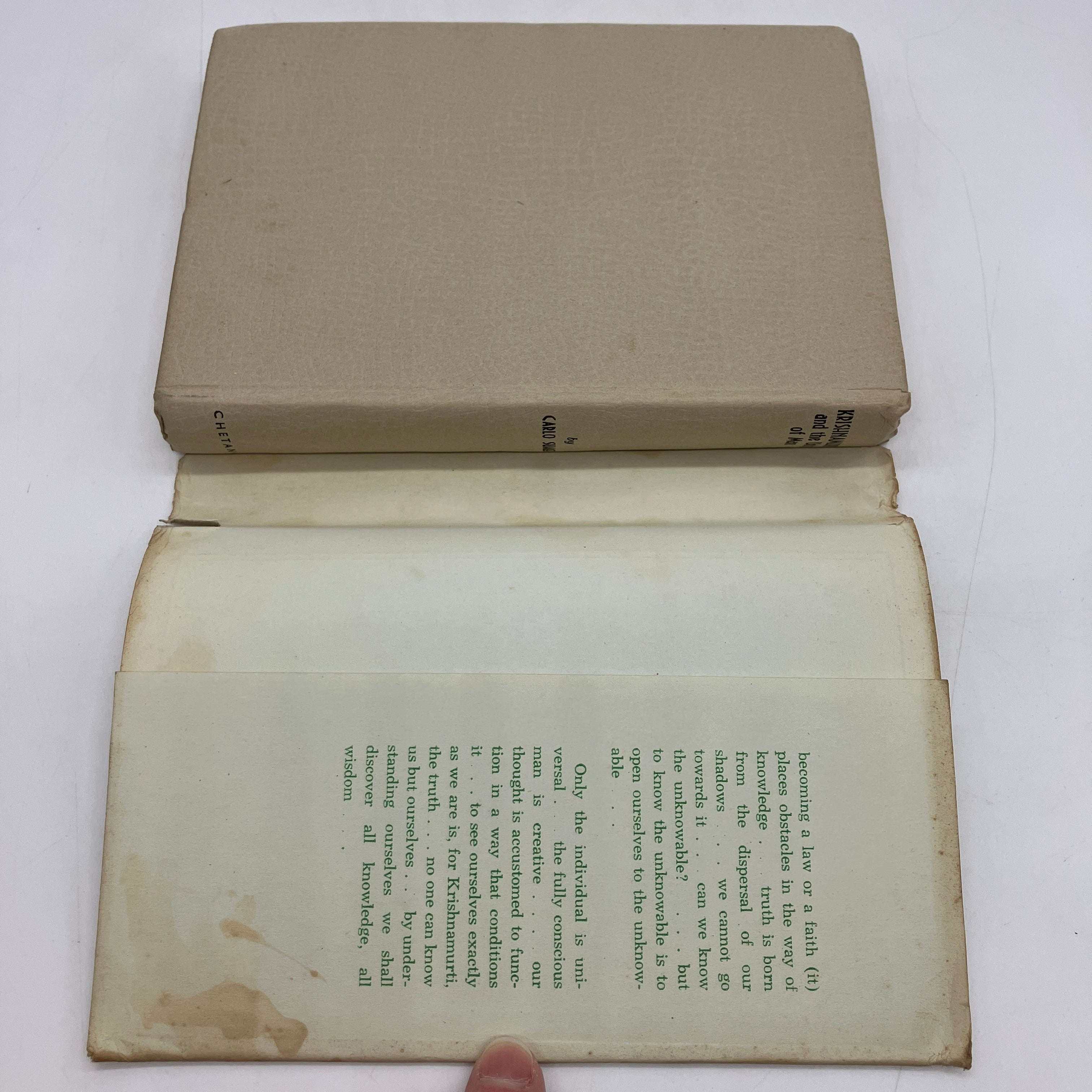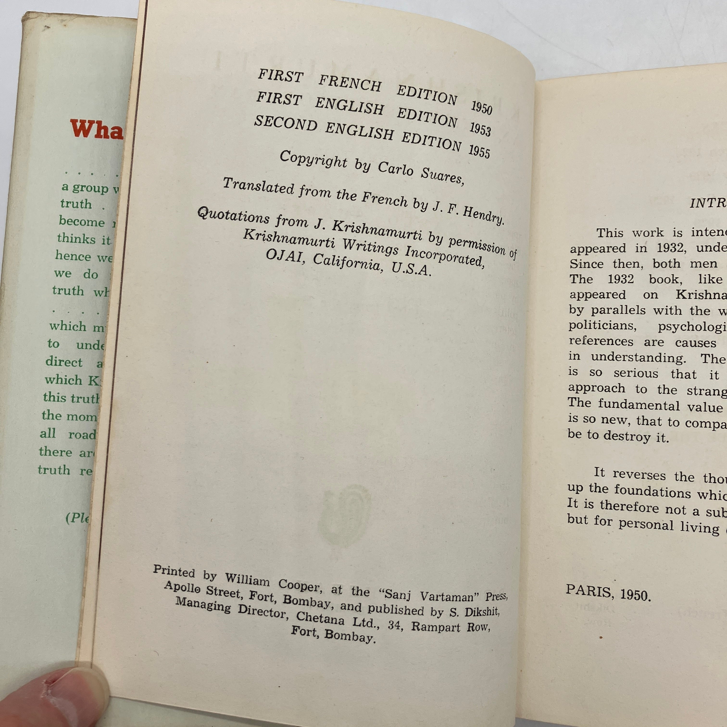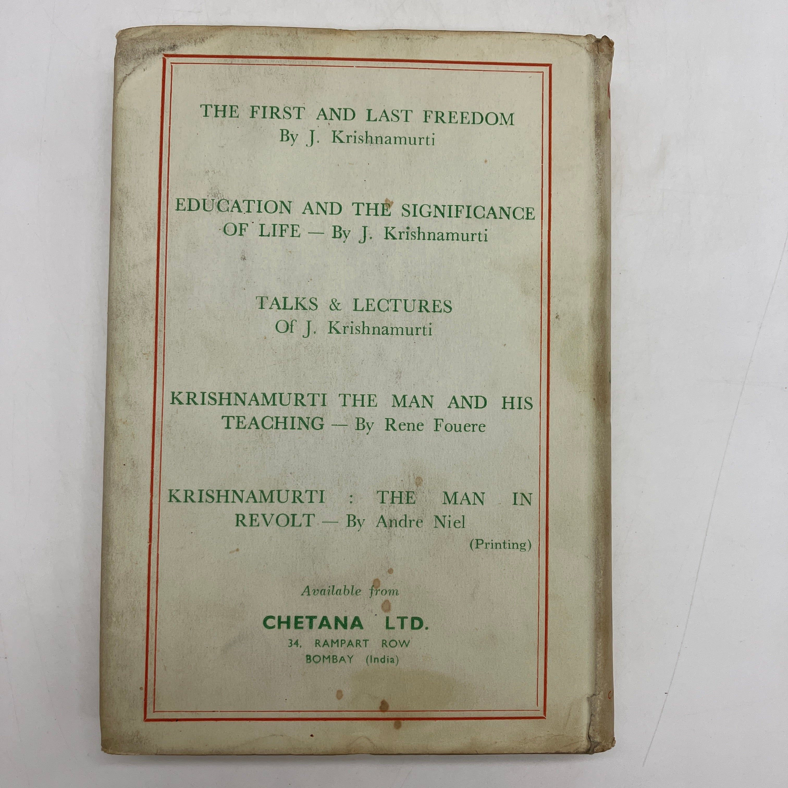 Chetana: Bombay, 1974. Cloth bound hardcover with dust jacket of Krishnamurti and the Unity of Man by Carlo Suares.
