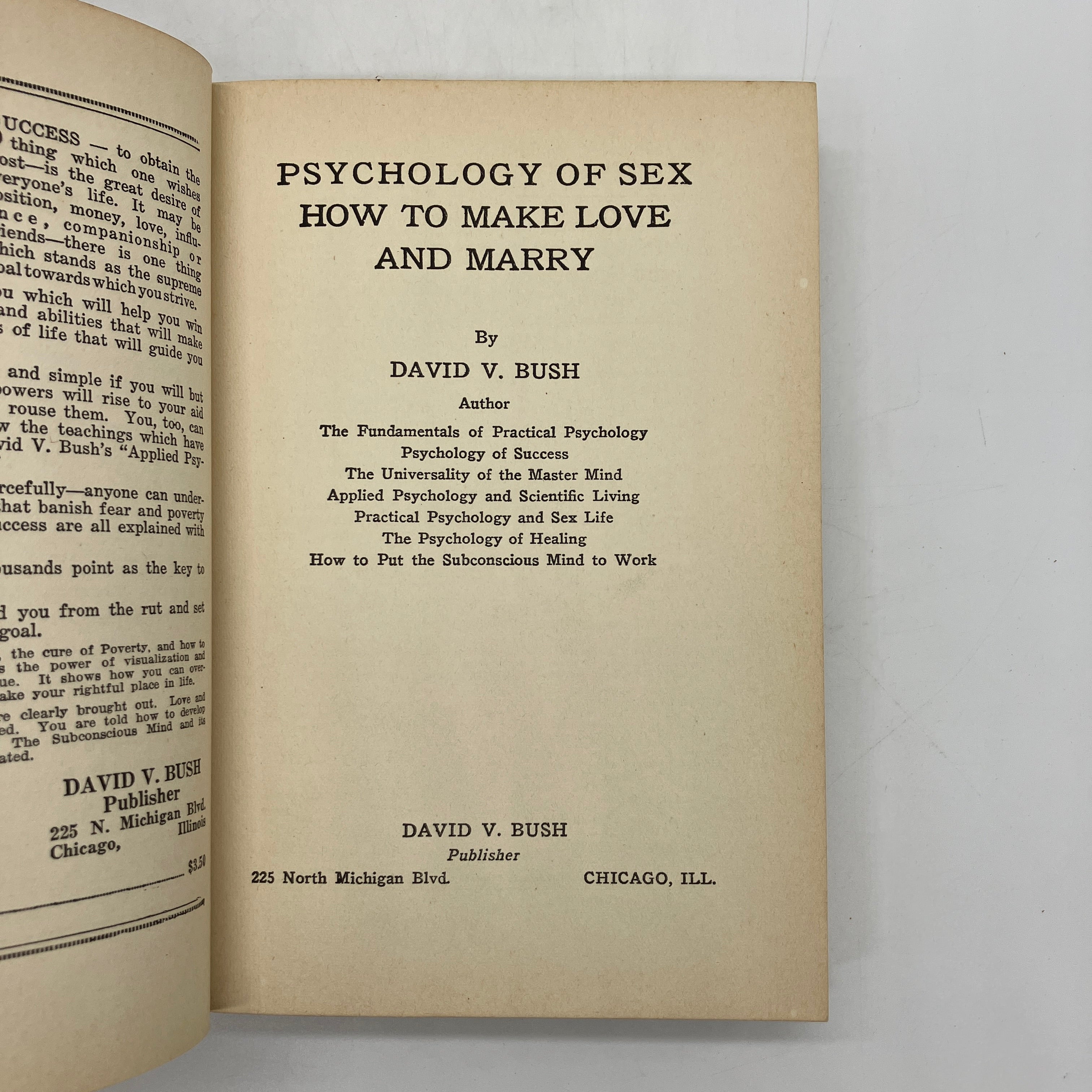 David V. Bush, 1924. Cloth bound hardcover with dust jacket of Psychology of Sex: How to Make Love and Marry by David V. Bush.
