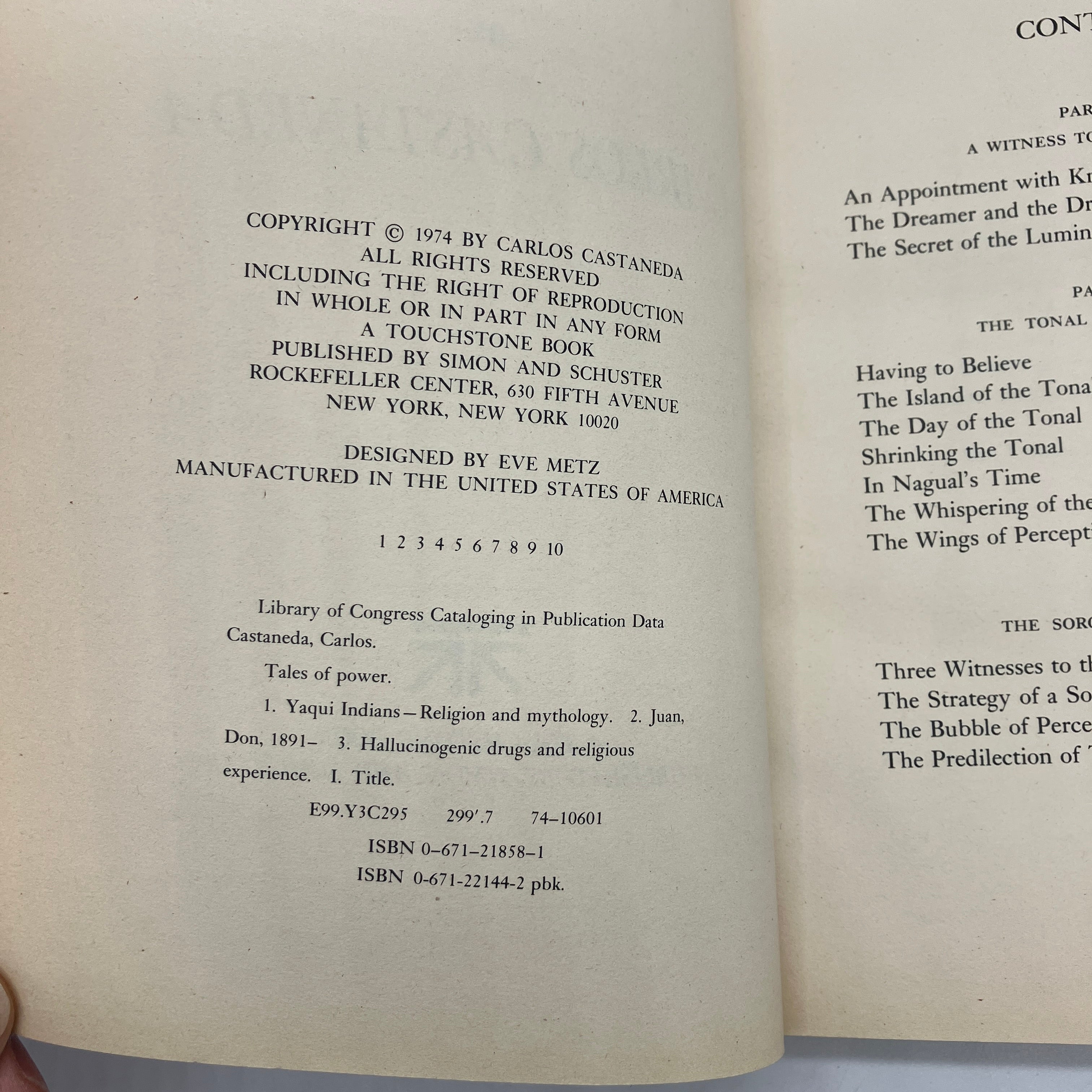 Touchstone, 1974. Trade paperback of Tales of Power by Carlos Castaneda.