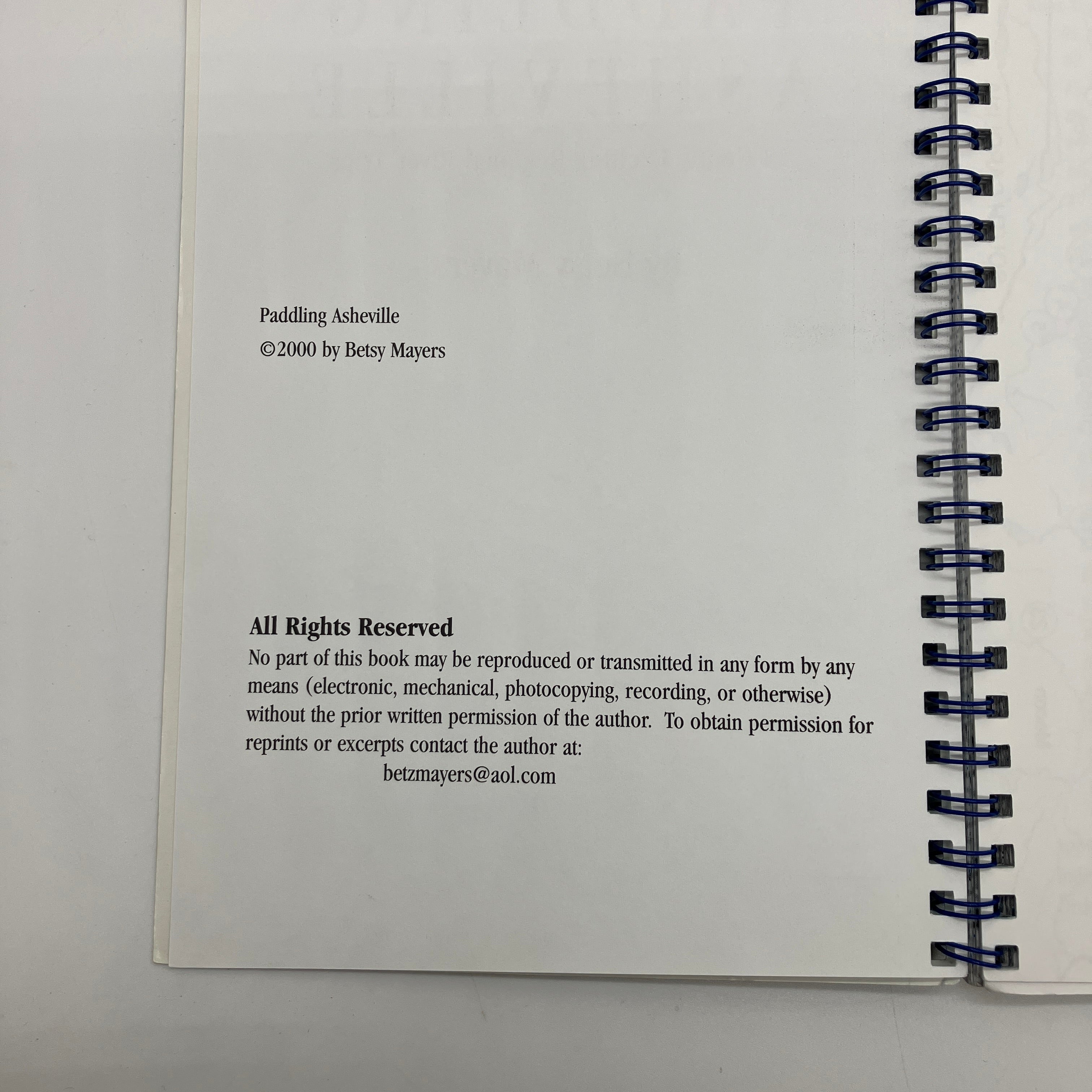 Betsy Mayers, 2000. Spiral bound softcover of Paddling Asheville: 28 Gently Exciting Regional River Trips by Betsy Mayers.