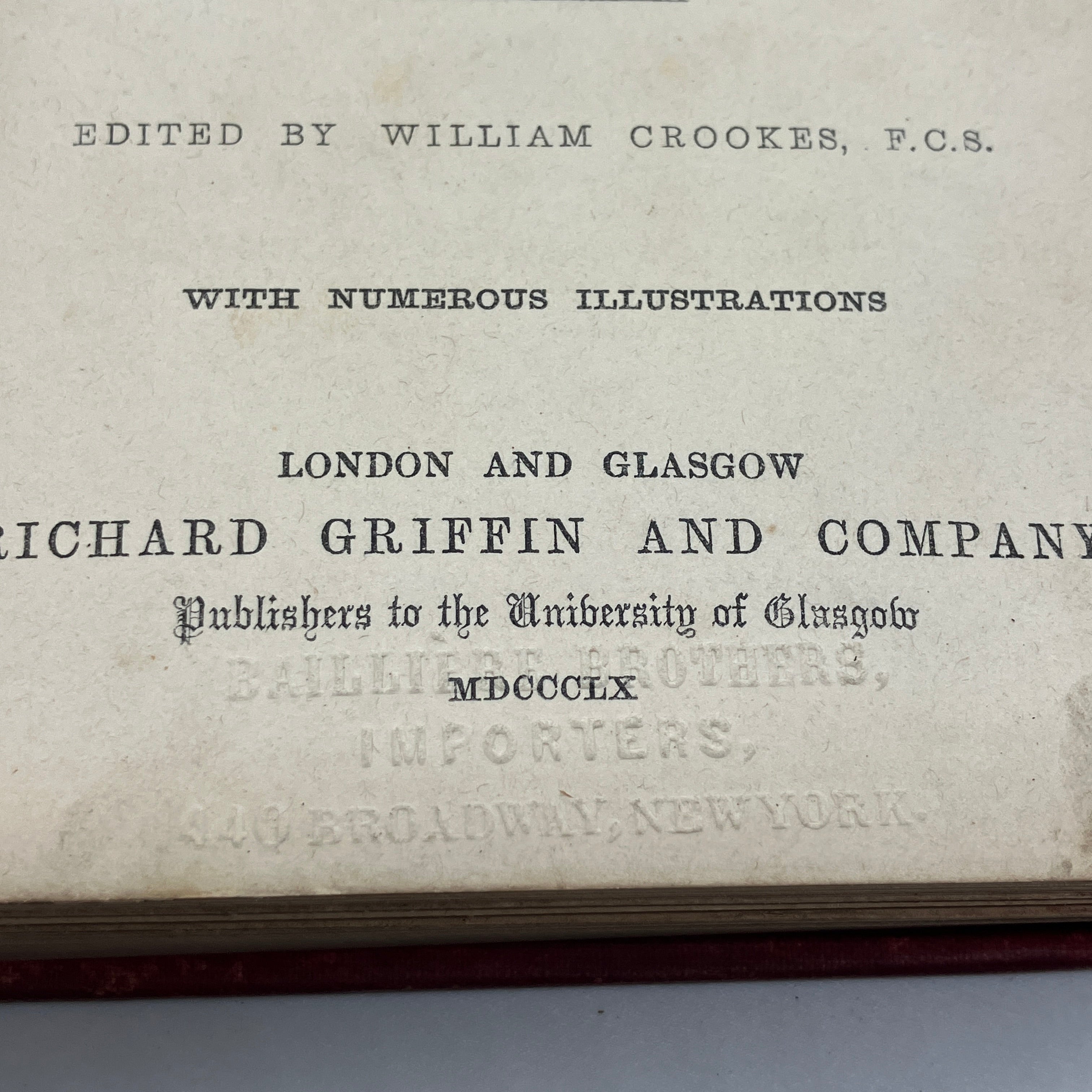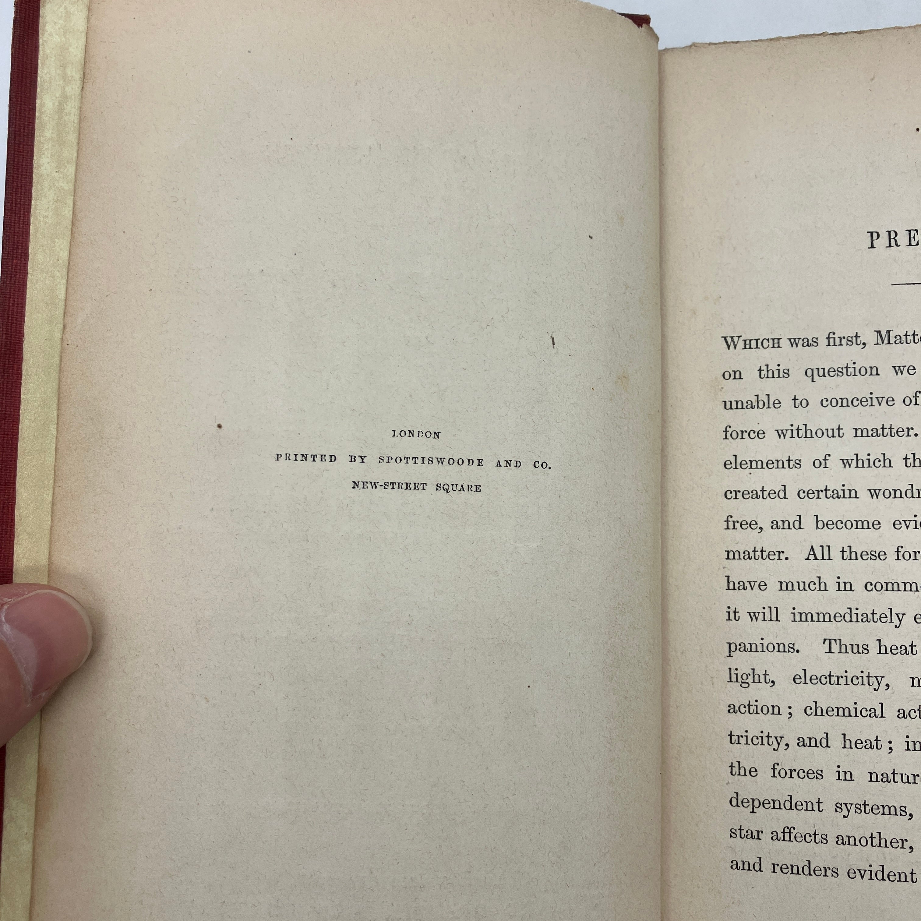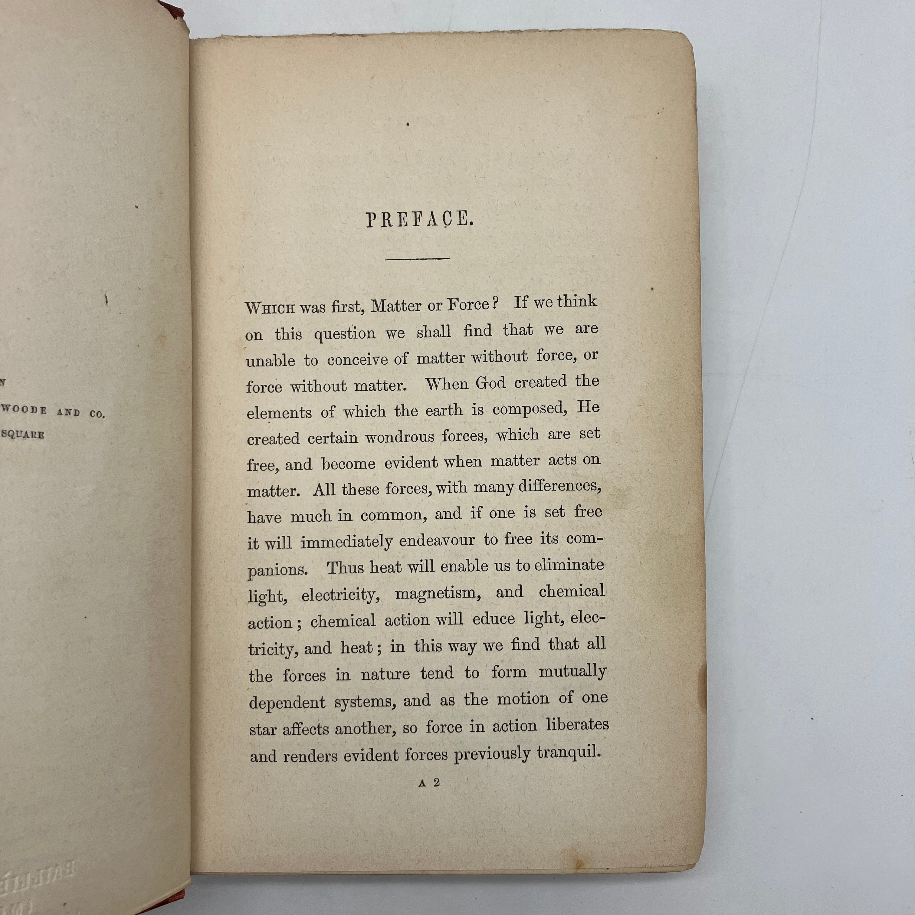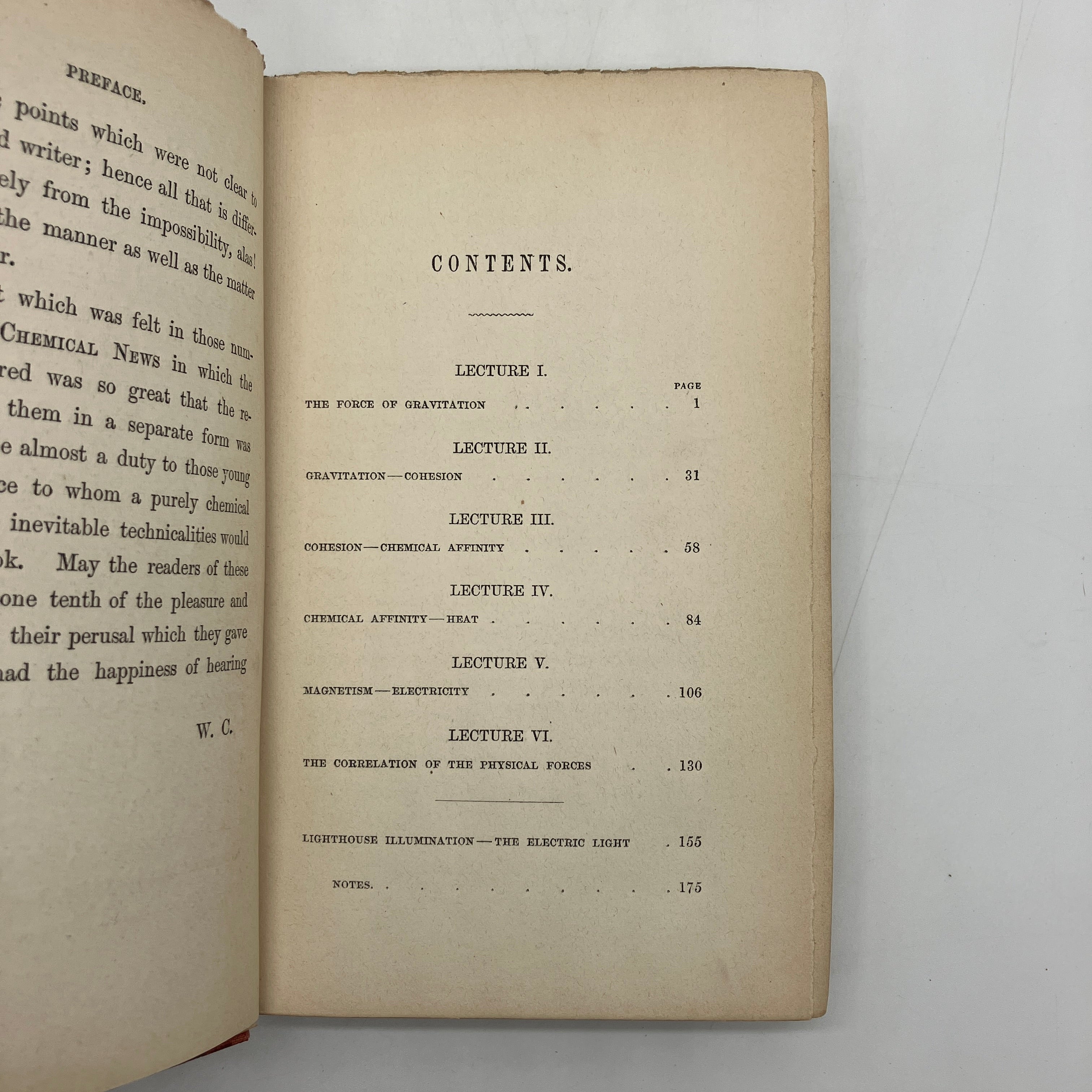 Richard Griffin and Company, 1860. First edition antiquarian cloth bound hardcover of A Course of Six Lectures on the Various Forces of Matter and Their Relations to Each Other by Michael Faraday.
