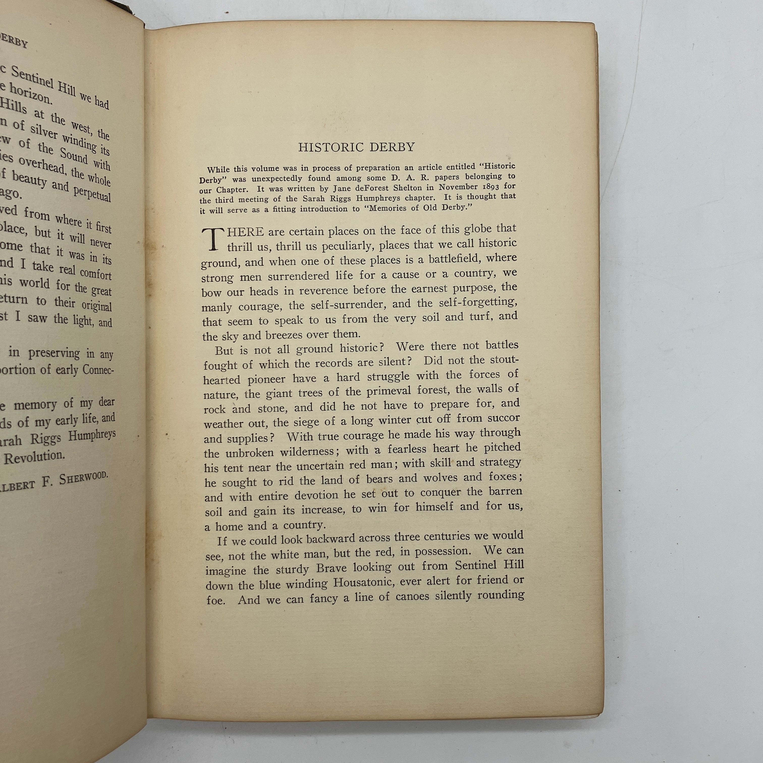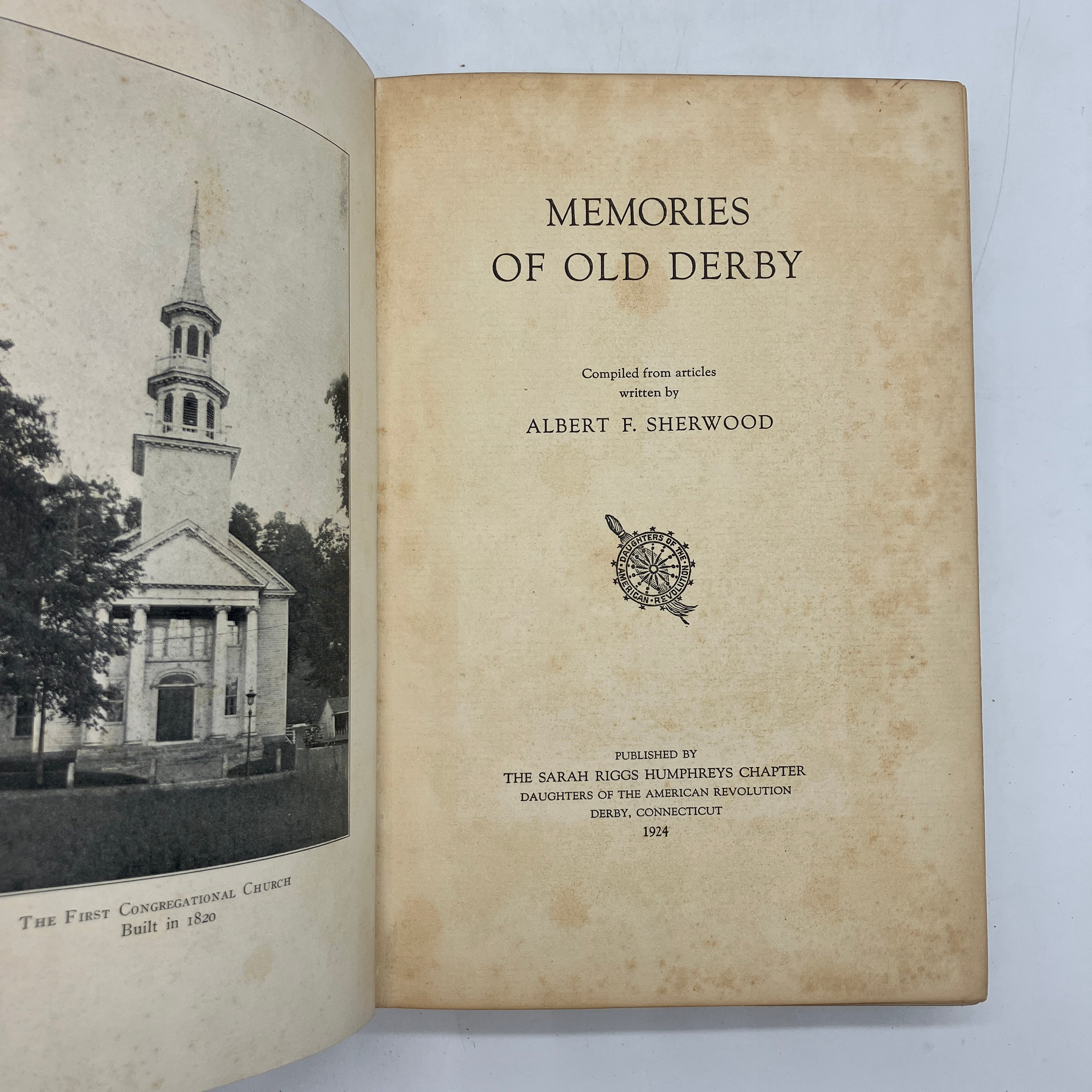 The Sarah Riggs Humphreys Chapter Daughters of the American Revolution Derby, Connecticut, 1924. First edition cloth bound hardcover of Memories of Old Derby by Albert Sherwood.