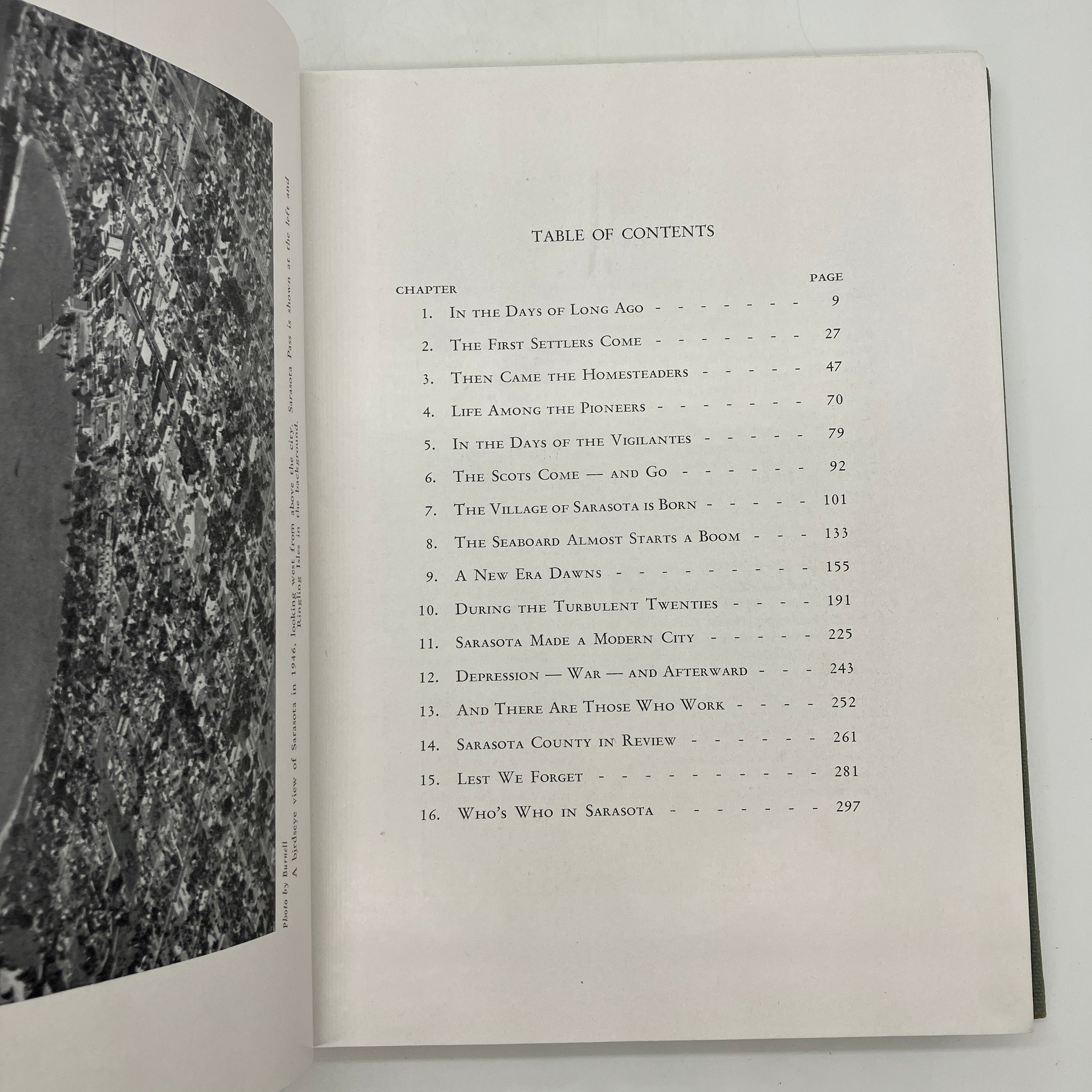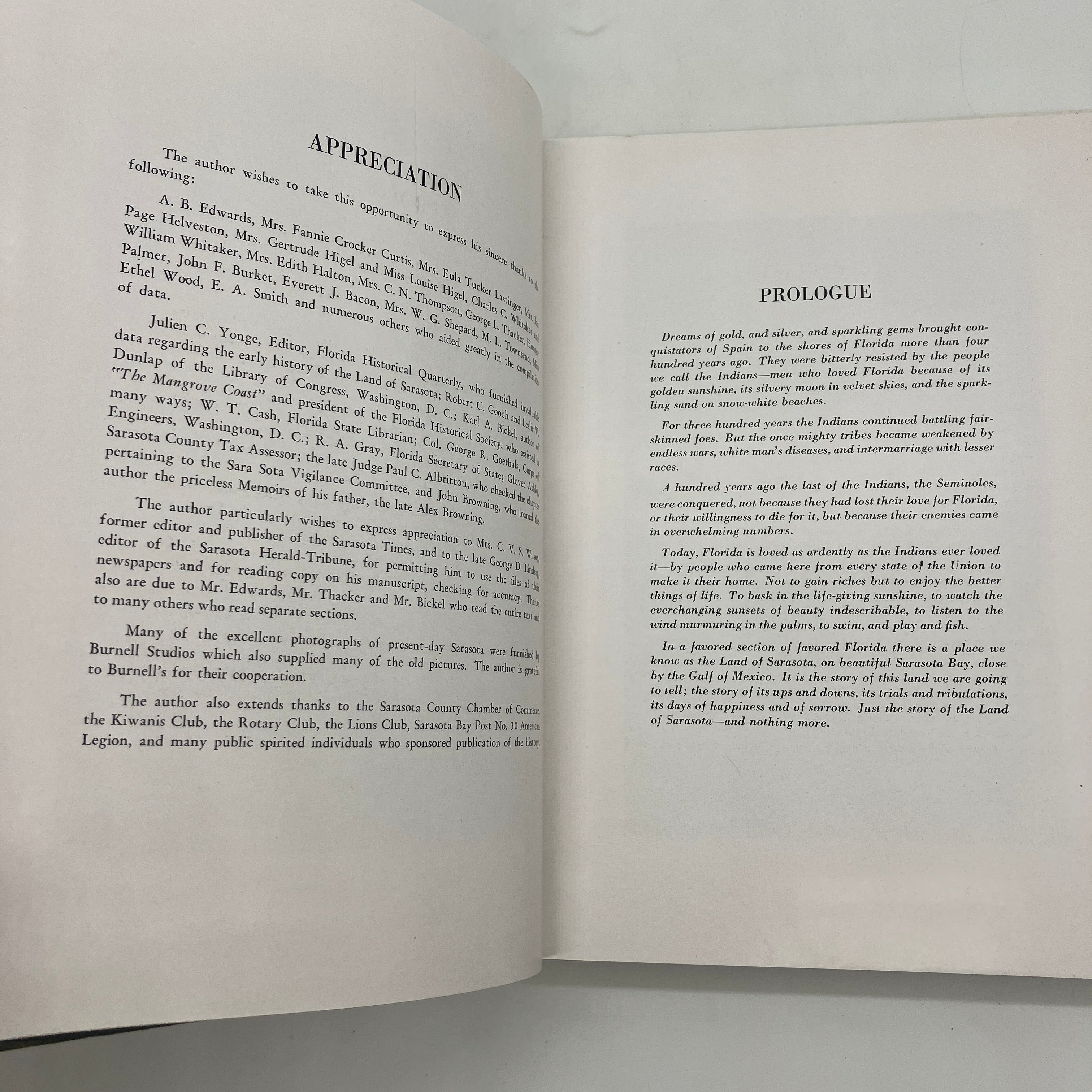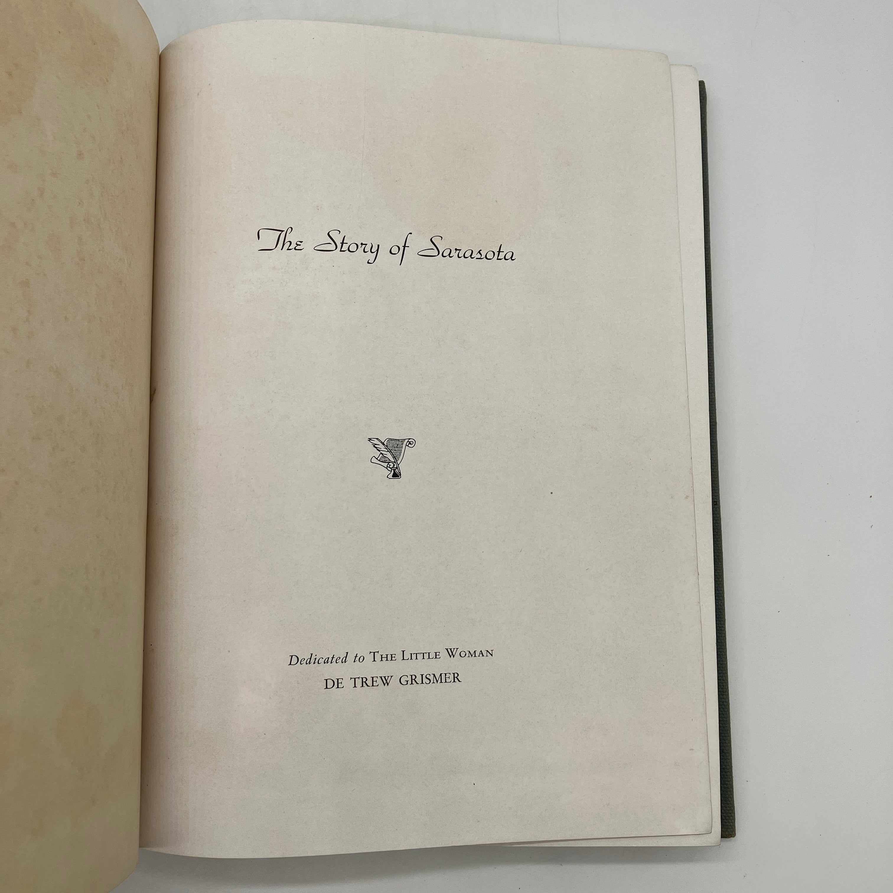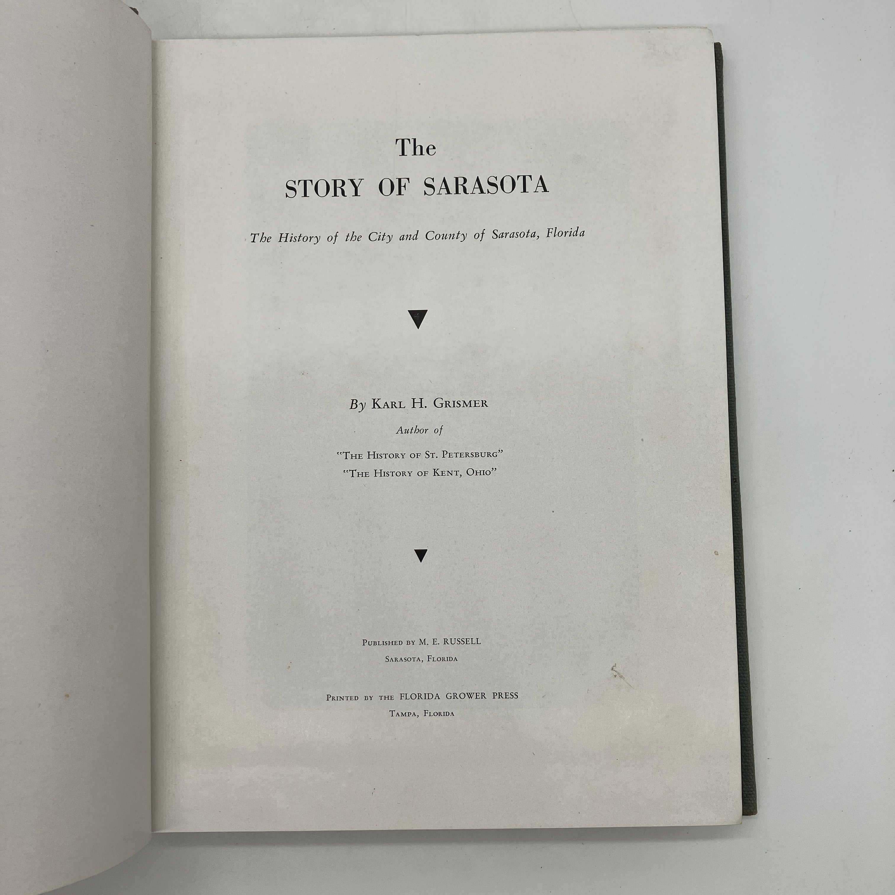 M. E. Russell, 1946. First edition cloth bound hardcover of The Story of Sarasota: The History of the City and County of Sarasota, Florida by Karl Grismer.