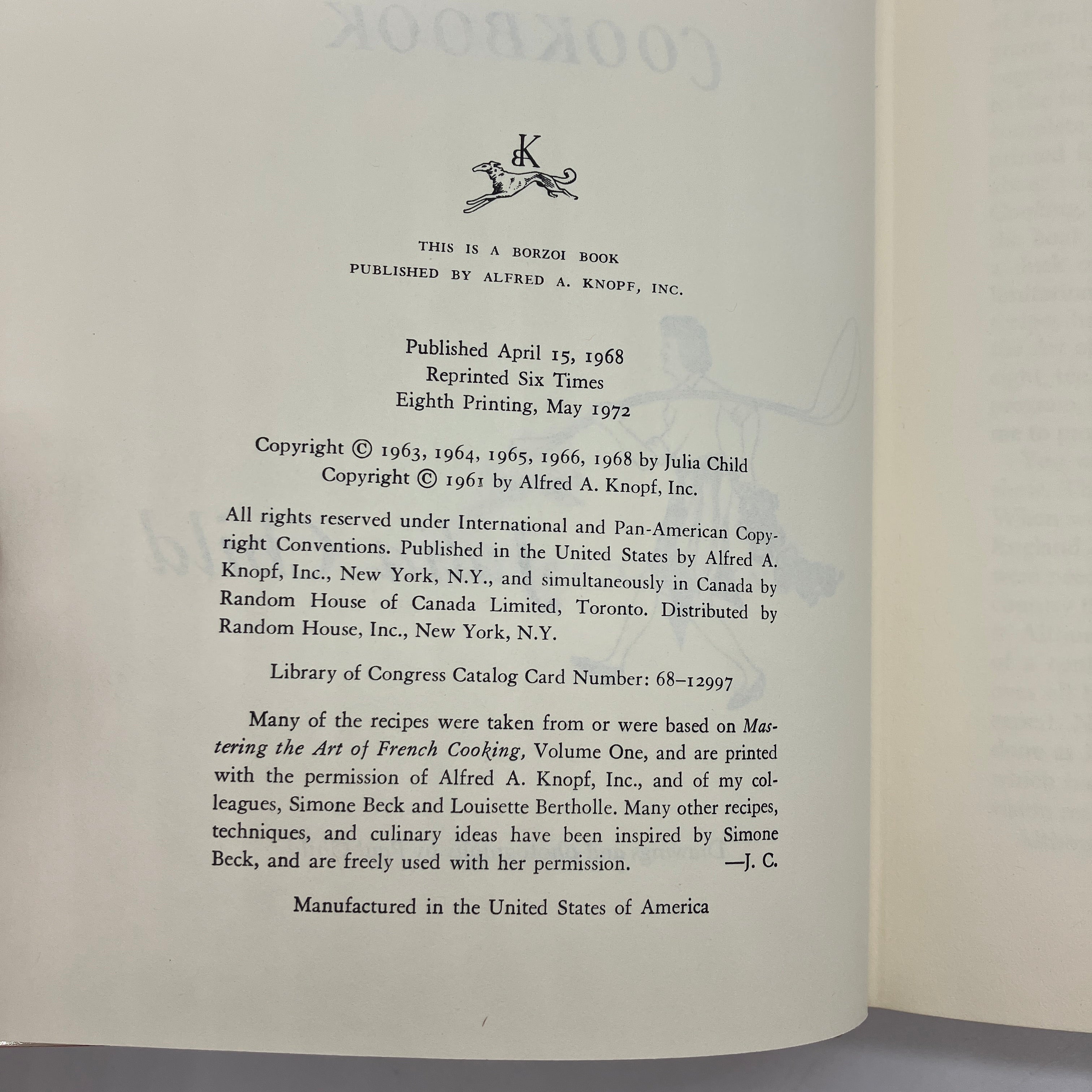 Alfred A. Knopf, 1972. Hardcover with dust jacket of The French Chef Cookbook by Julia Child.