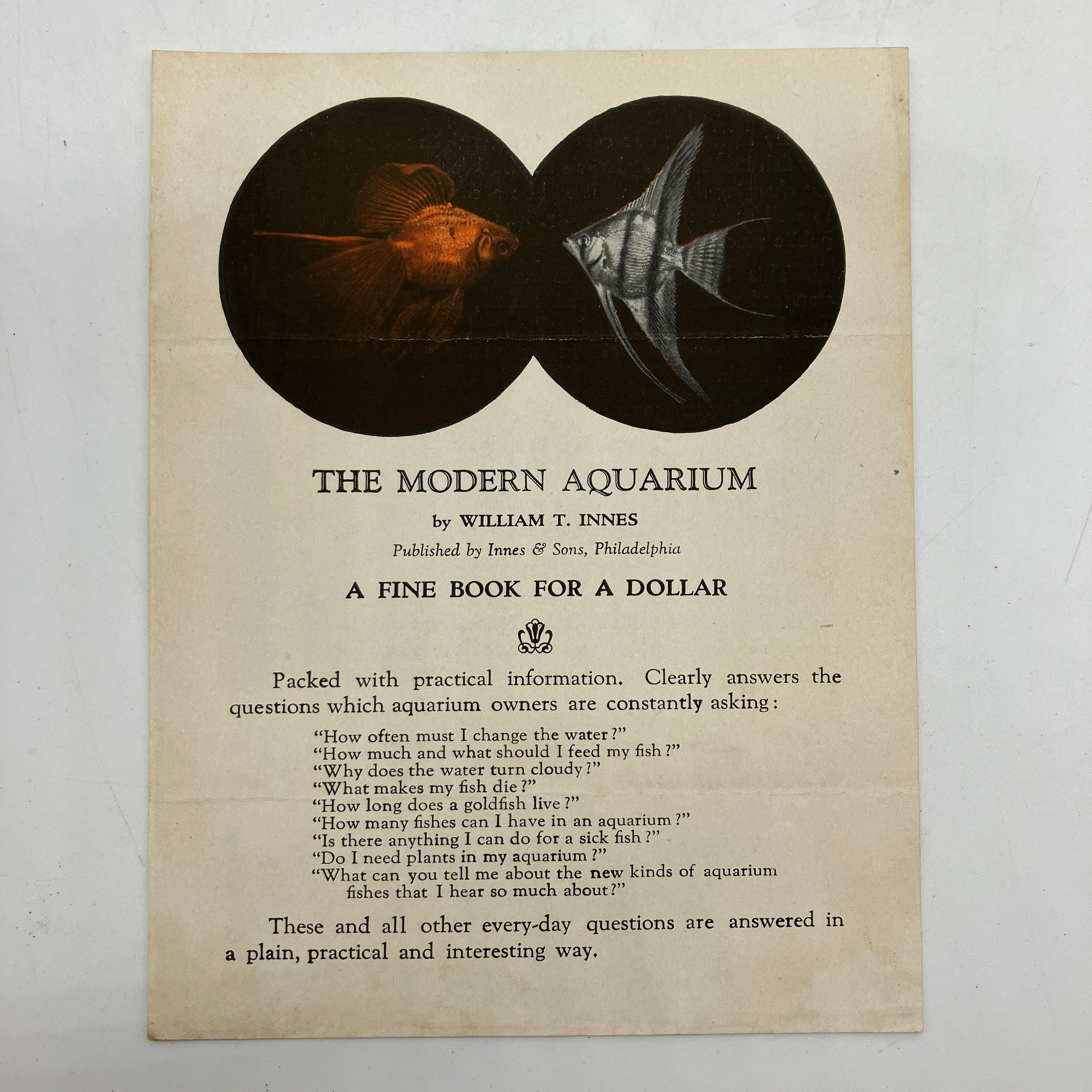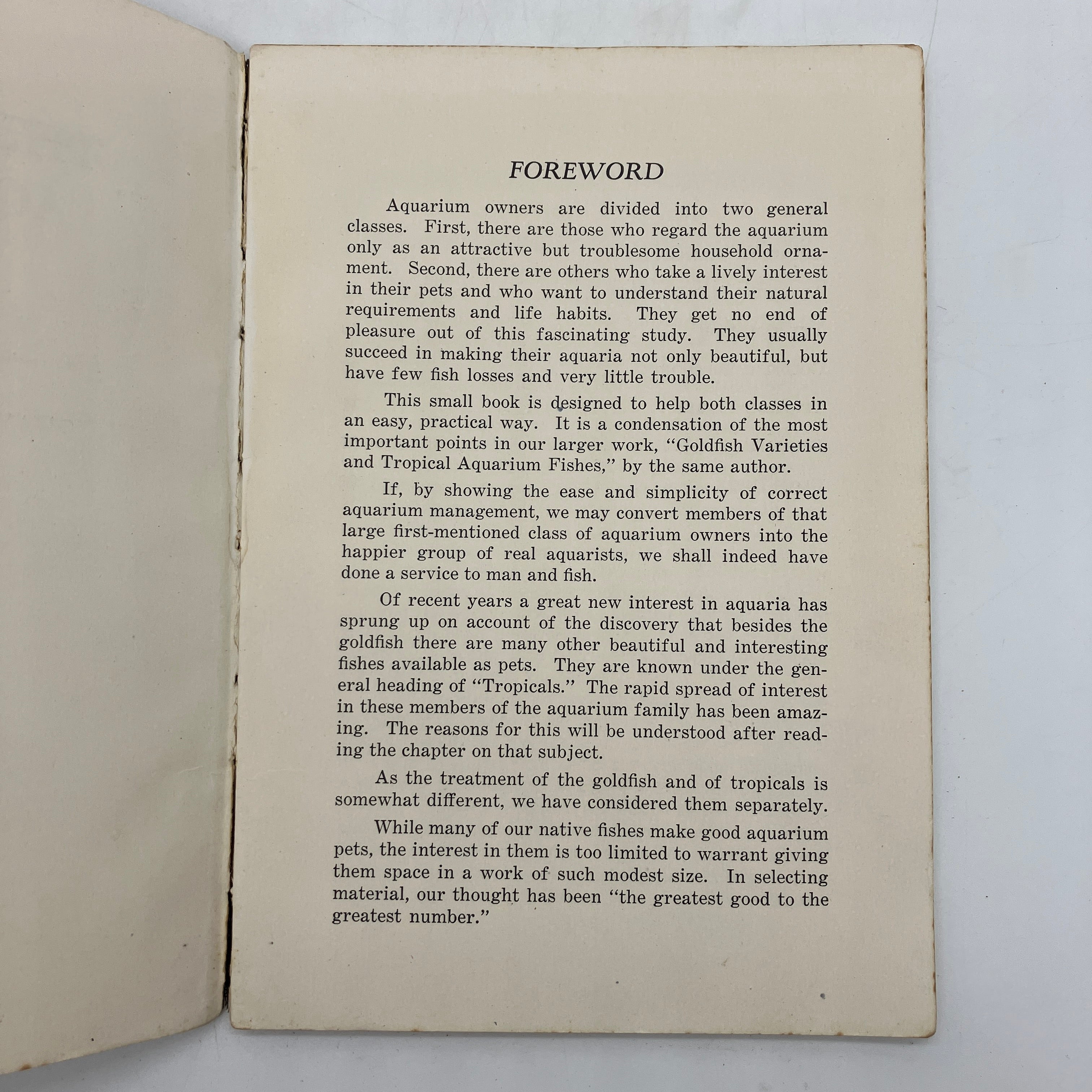 Innes & Sons, 1928. Second edition trade paperback of The Modern Aquarium by William Innes.