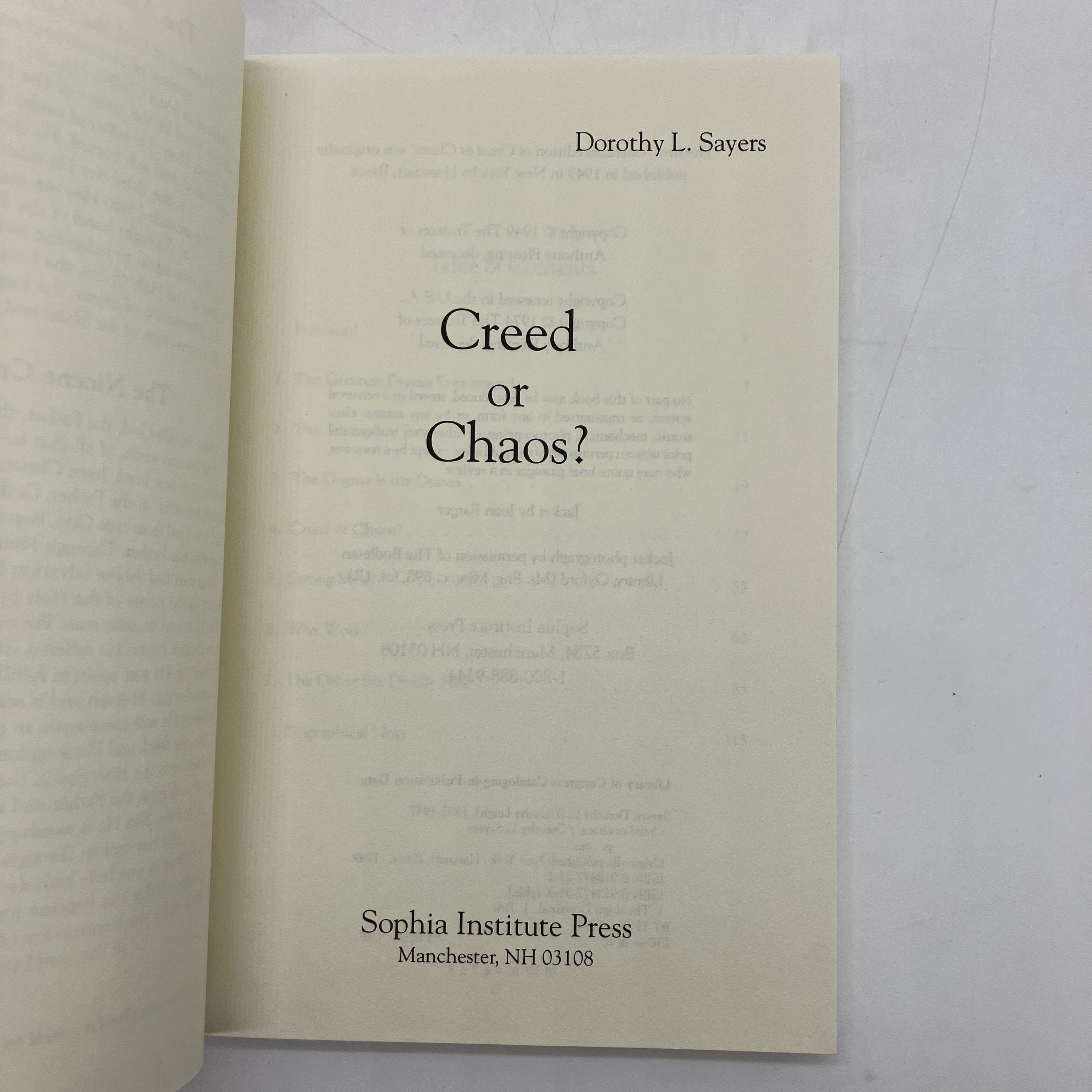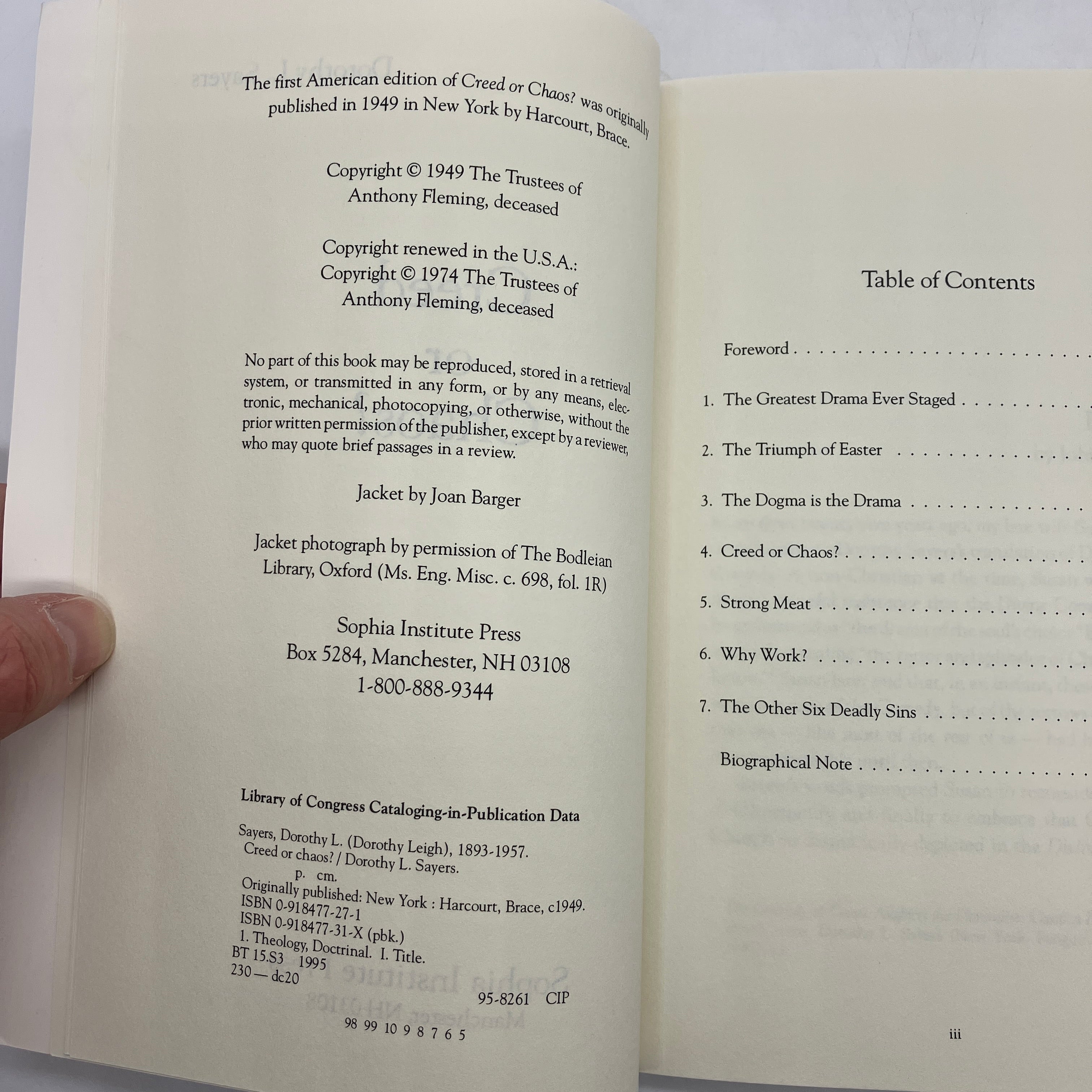 Sophia Institute Press, 1995. Trade paperback of Creed or Chaos? by Dorothy Sayers.