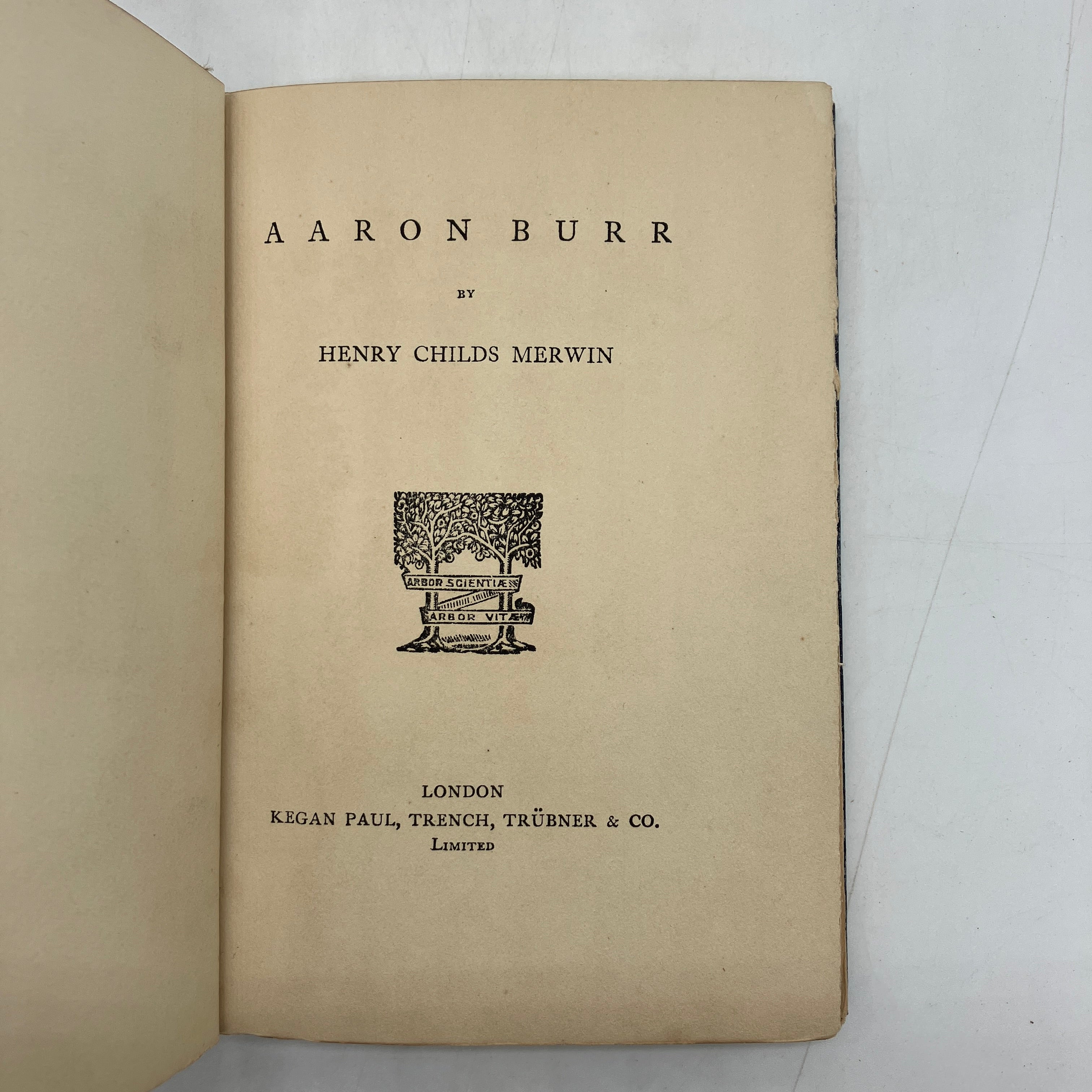 Kegan Paul, Trench, Trubner & Co., 1899. First edition antiquarian cloth bound hardcover of Aaron Burr by Henry Childs Merwin.