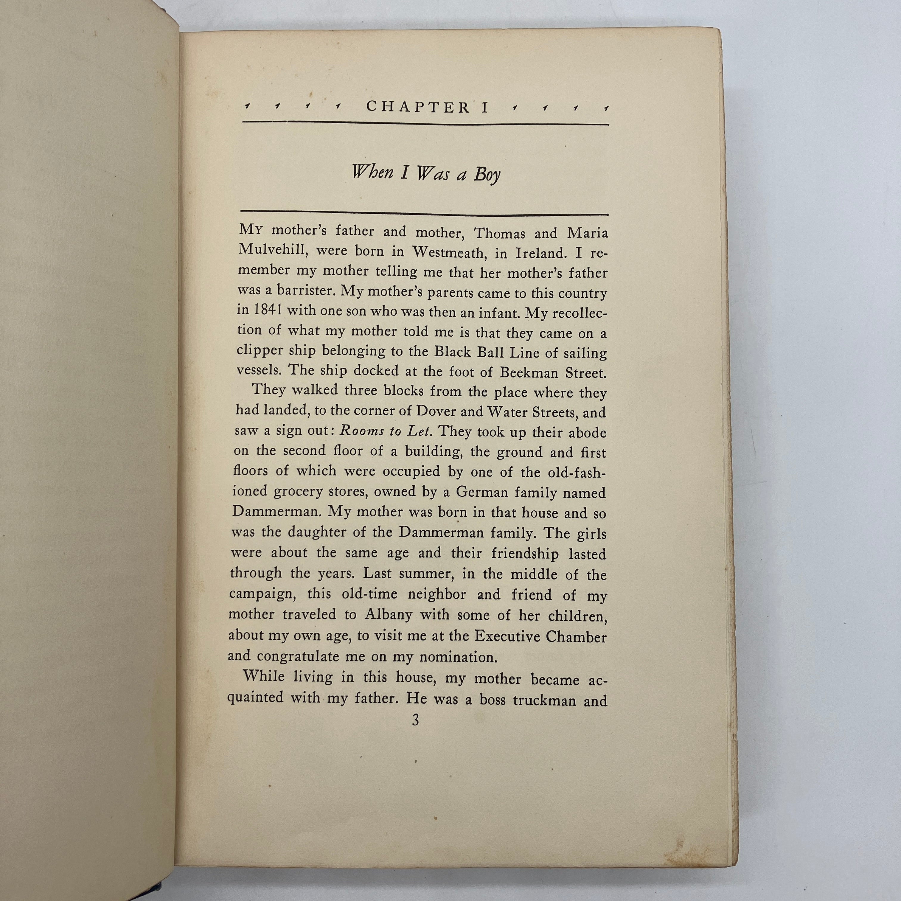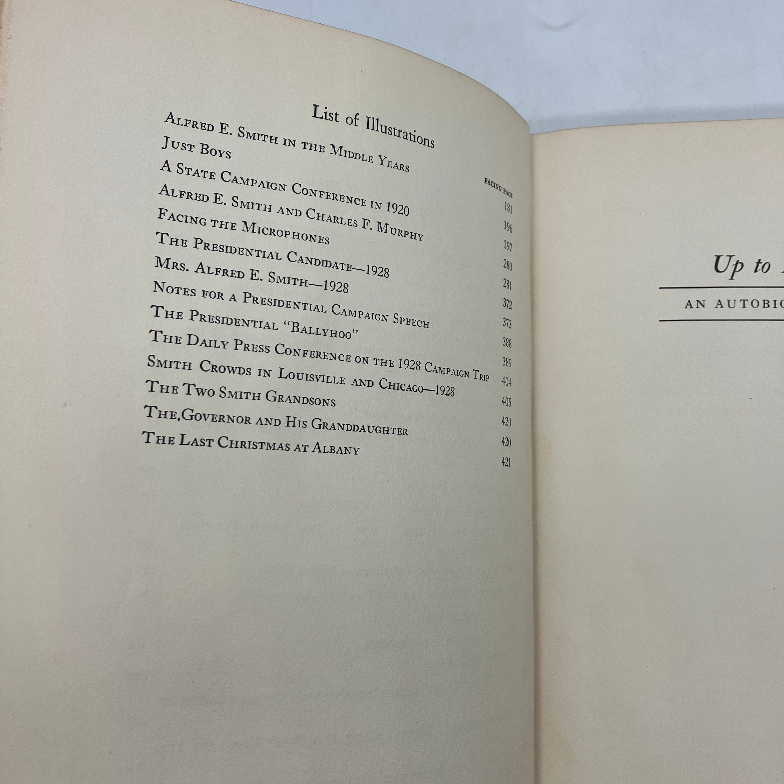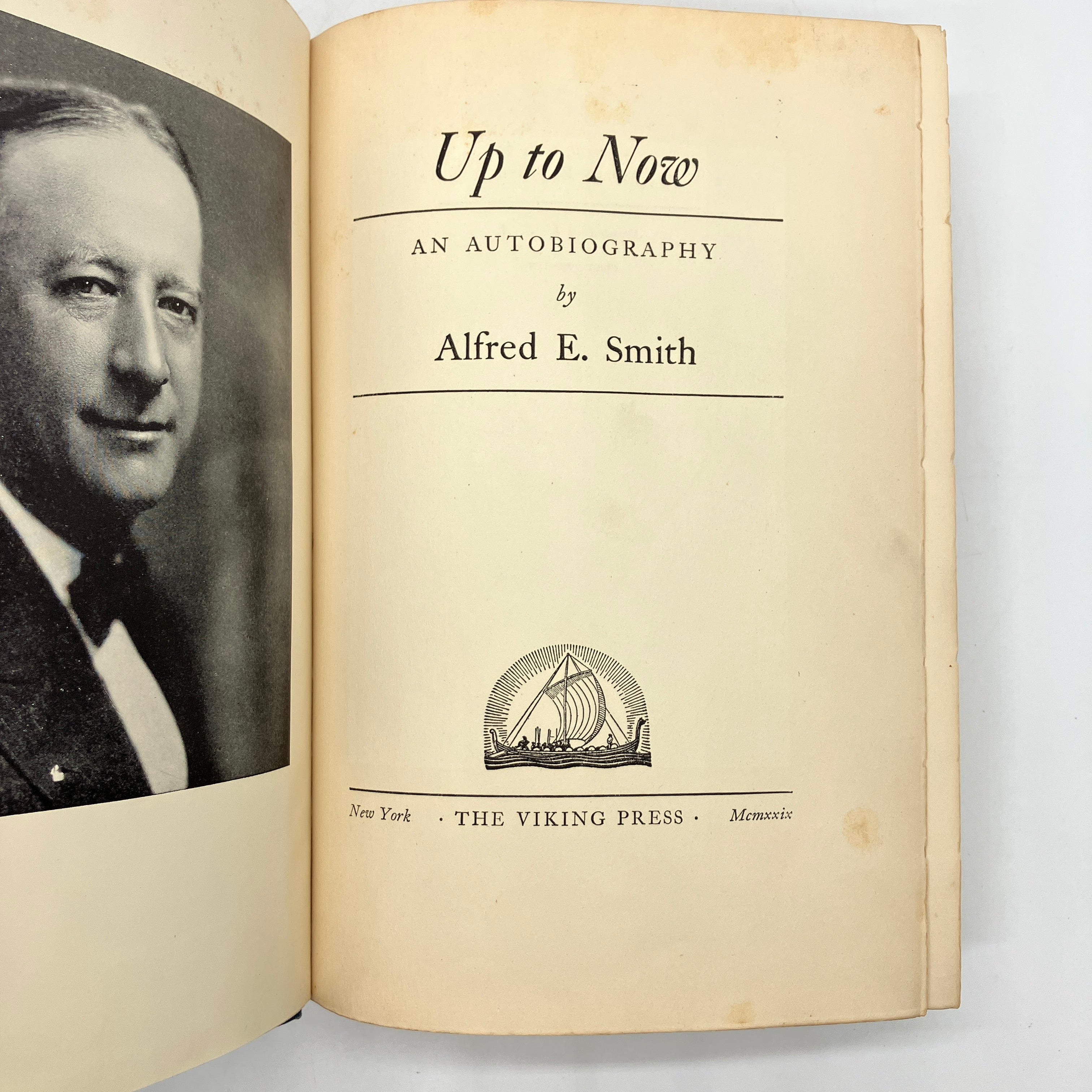 The Viking Press, 1929. First edition cloth bound hardcover of Up to Now: An Autobiography by Alfred E. Smith.