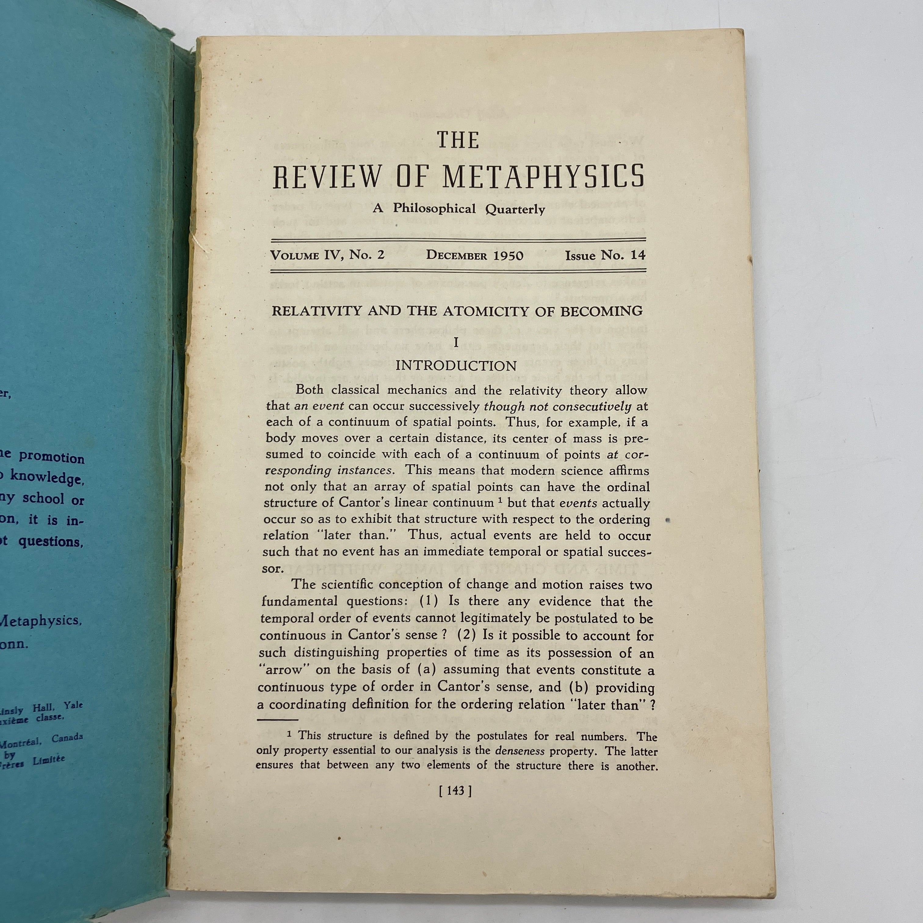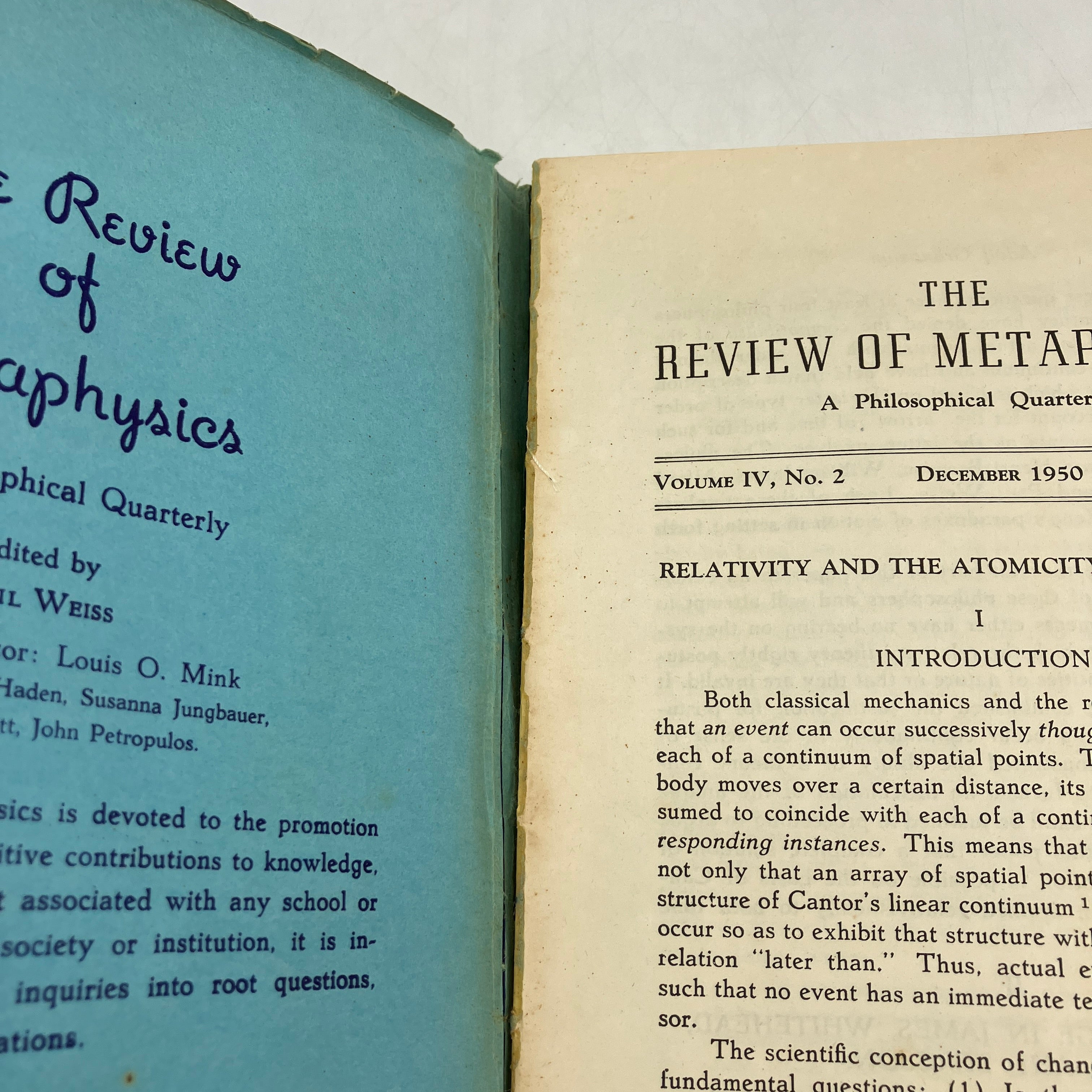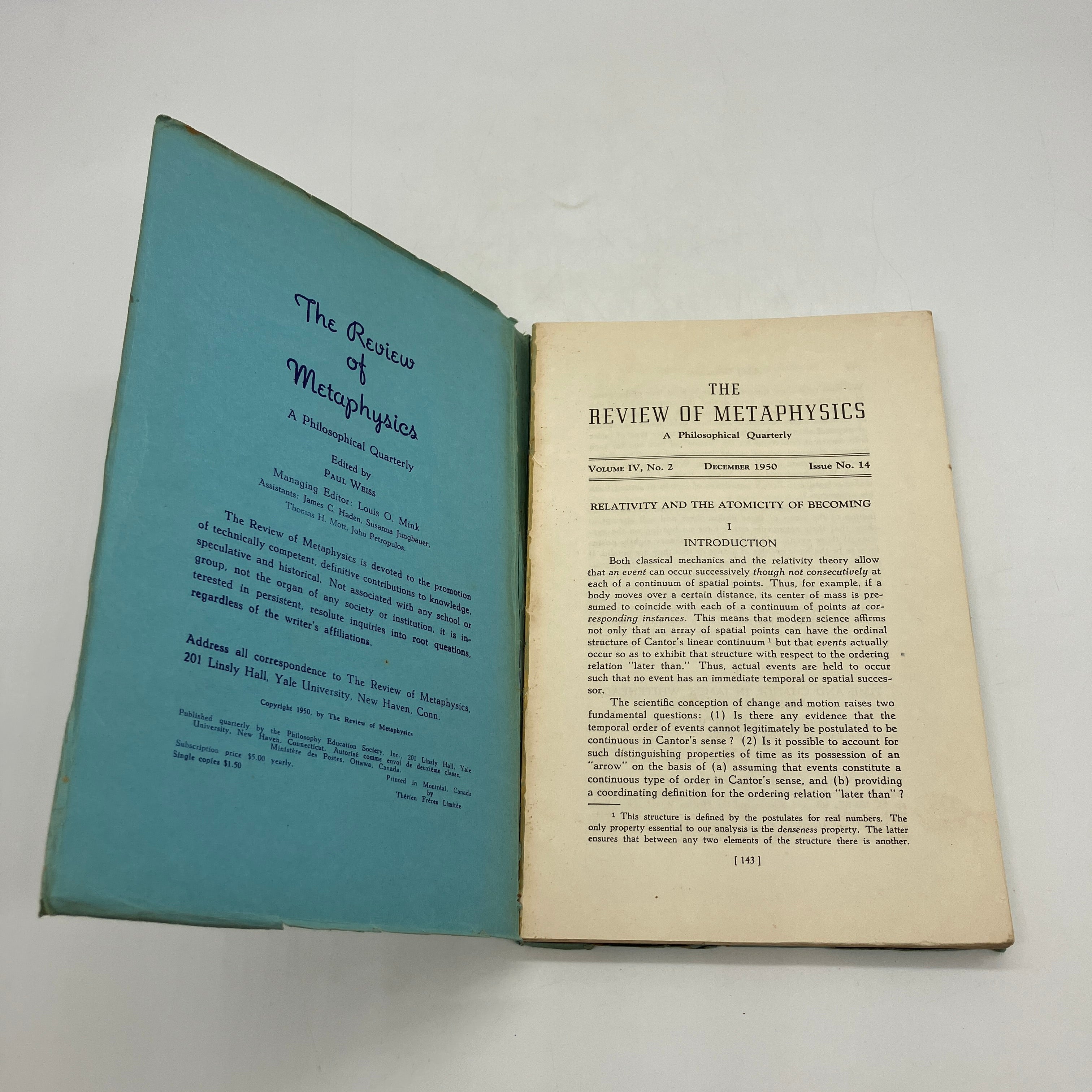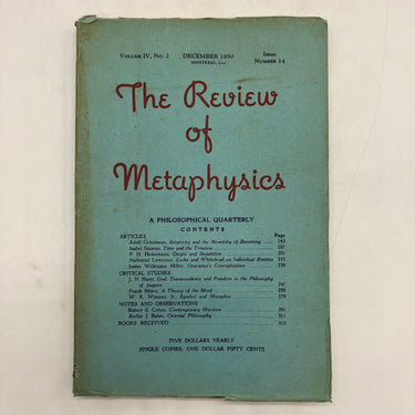The Review of Metaphysics, 1950. Trade paperback of The Review of Metaphysics: A Philosophical Quarterly, Issue No. 14, December 1950, Volume IV, No. 2 edited by Paul Weiss.