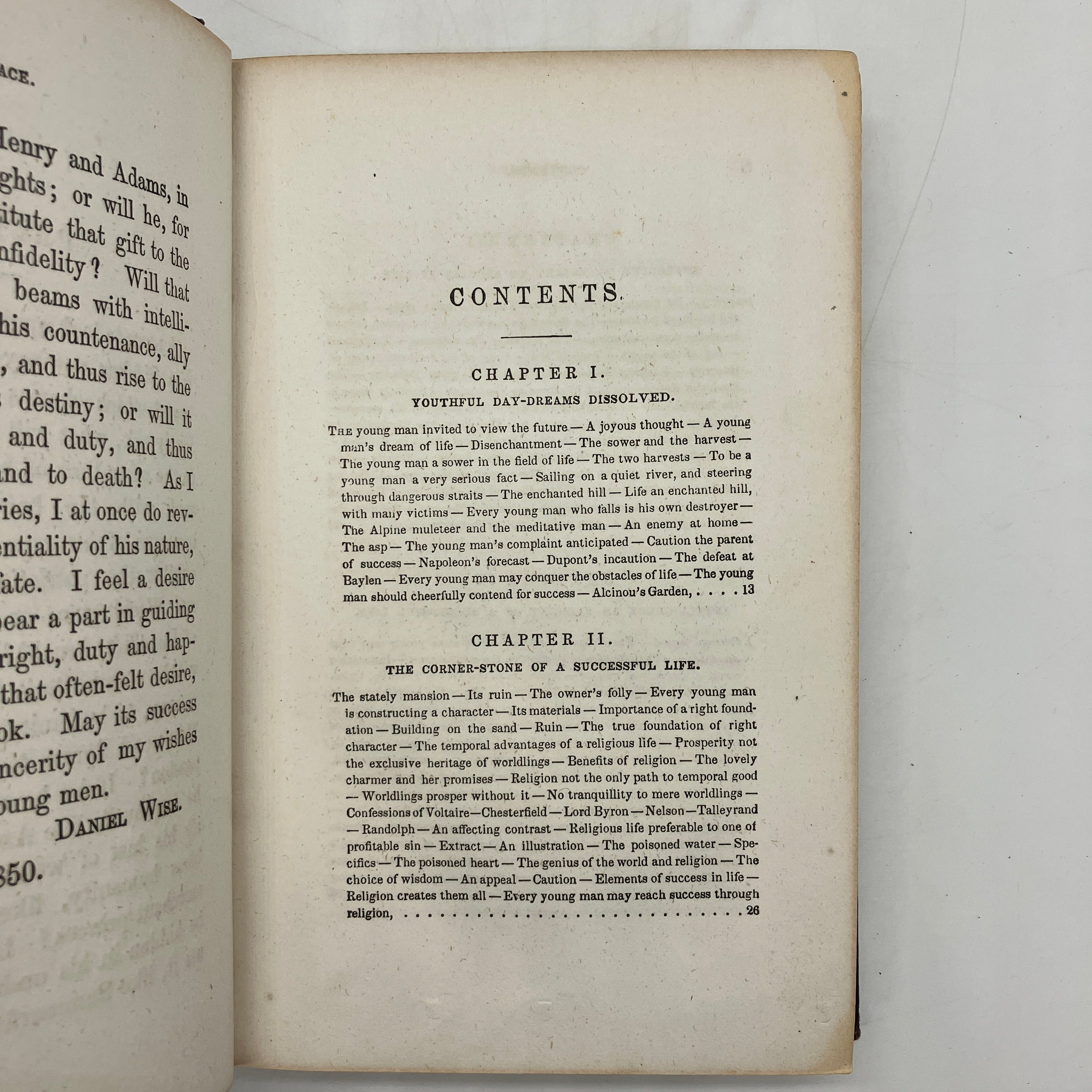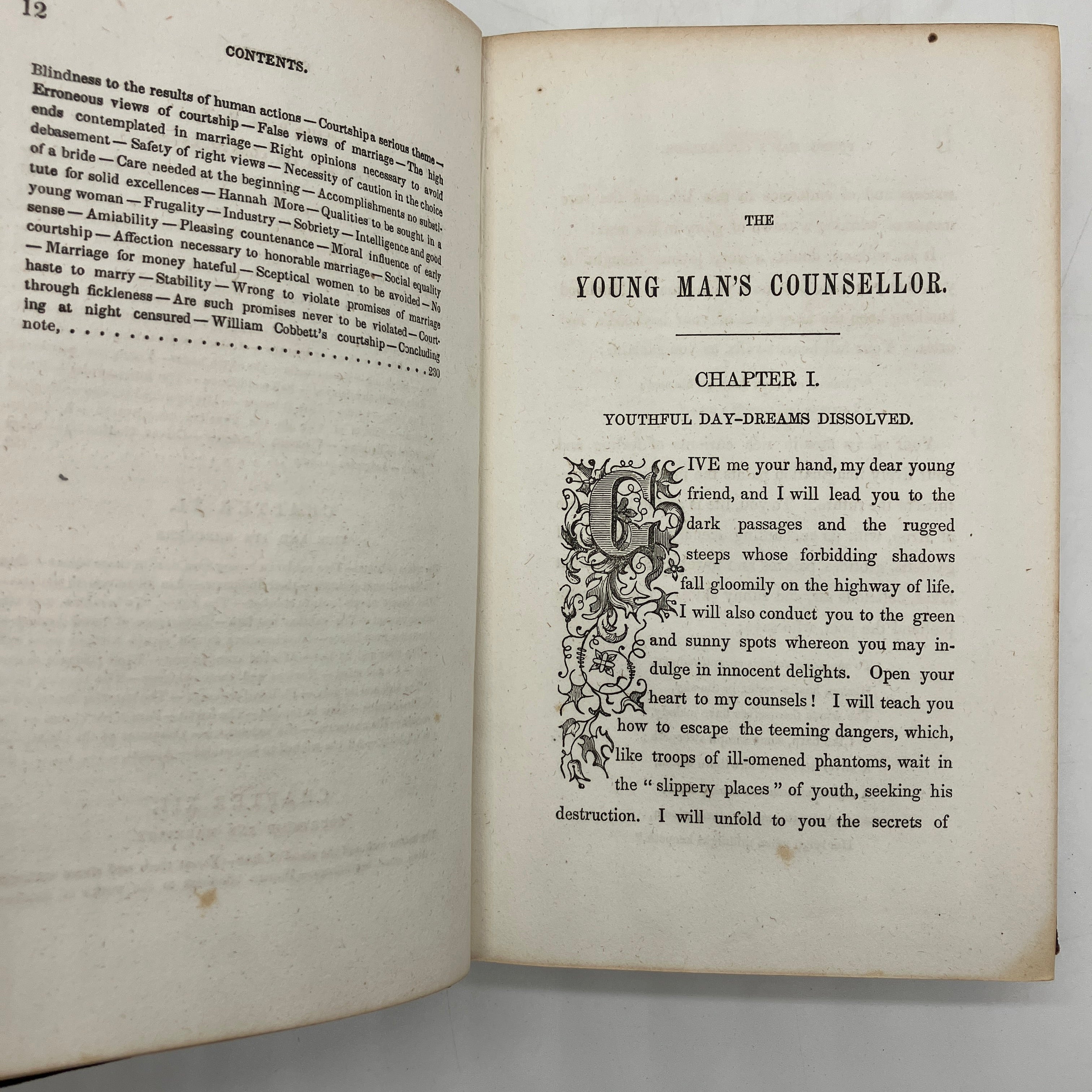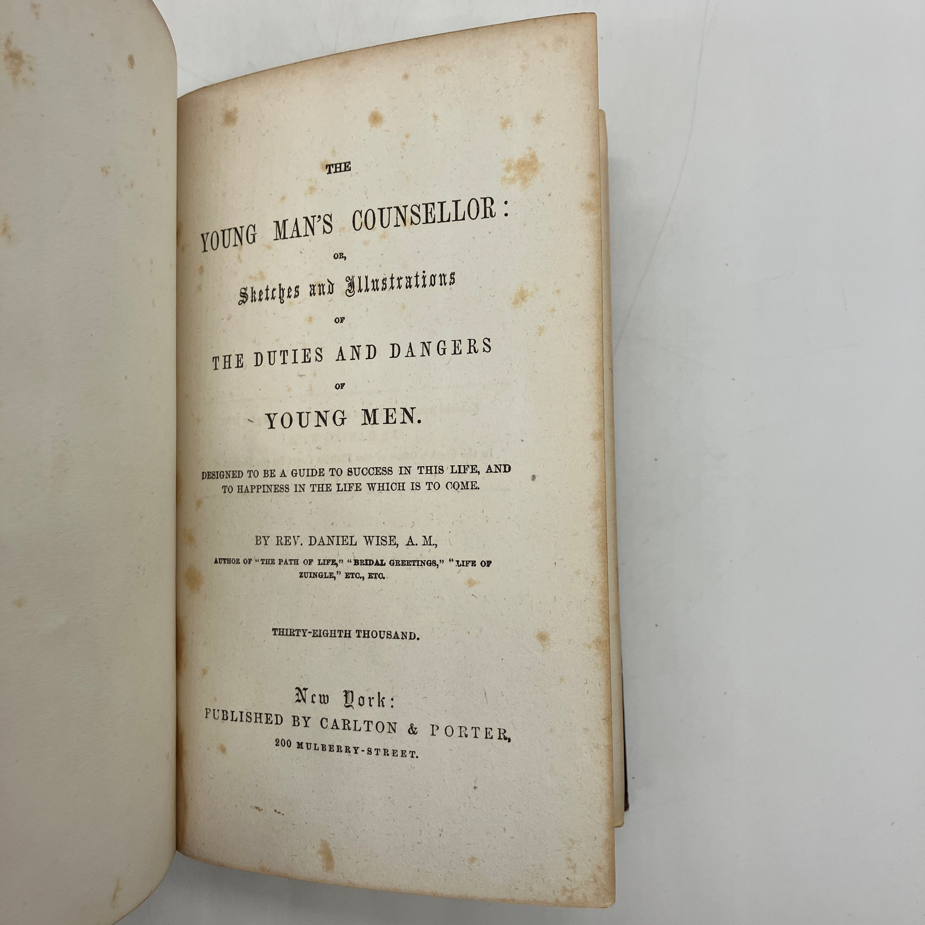 Carlton & Porter, 1867. Antiquarian cloth bound hardcover of The Young Man's Counsellor; or, Sketches and Illustrations of the Duties and Dangers of Young Men. Designed To Be a Guide To Success In This Life, and To Happiness In The Life Which Is To Come by Daniel Wise.