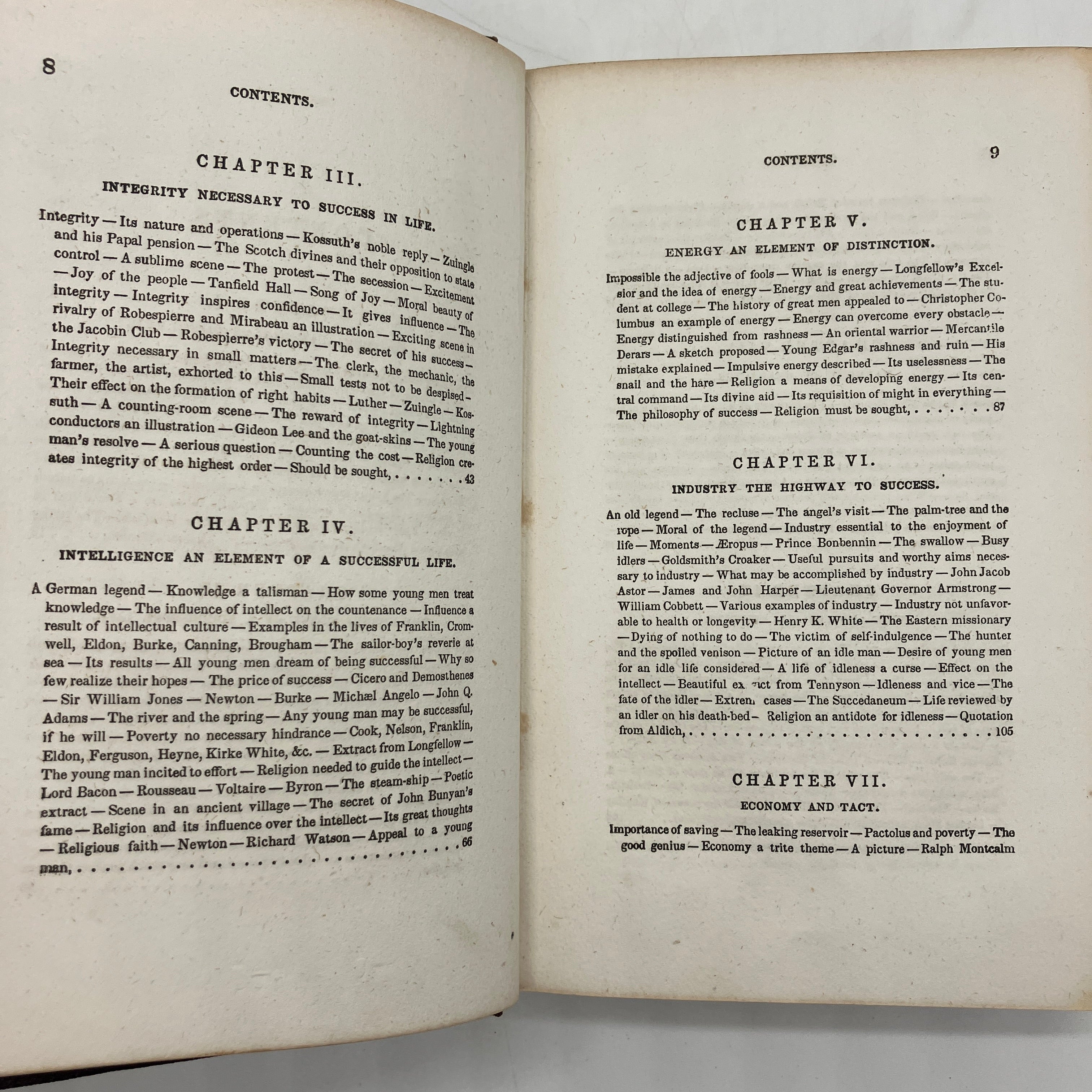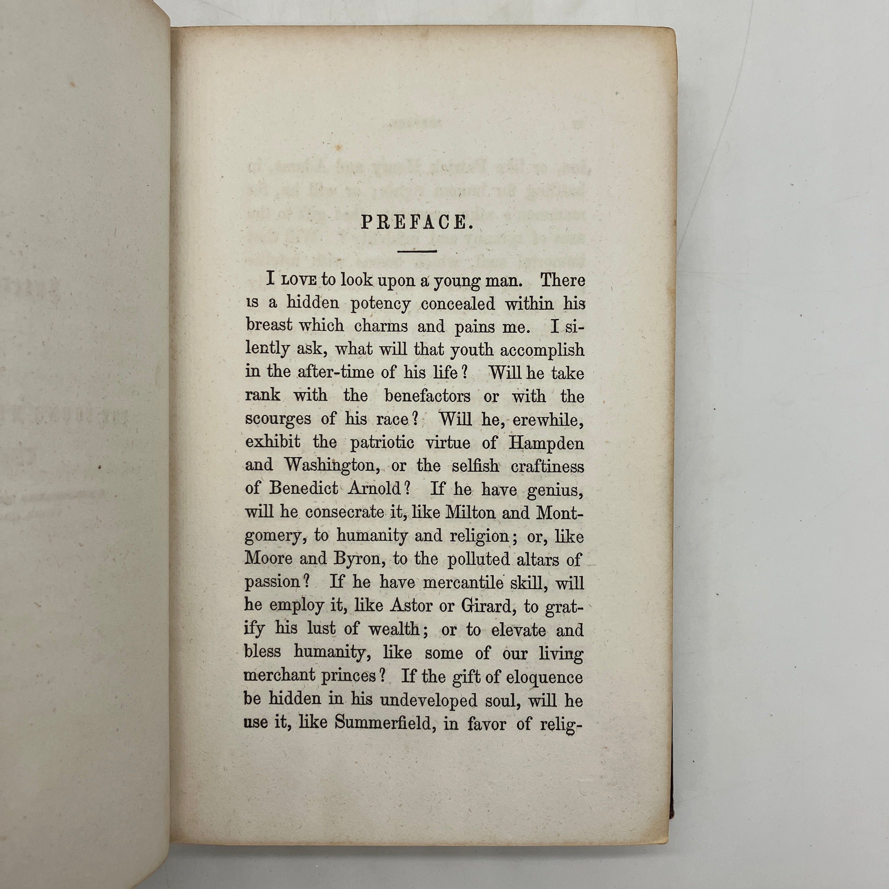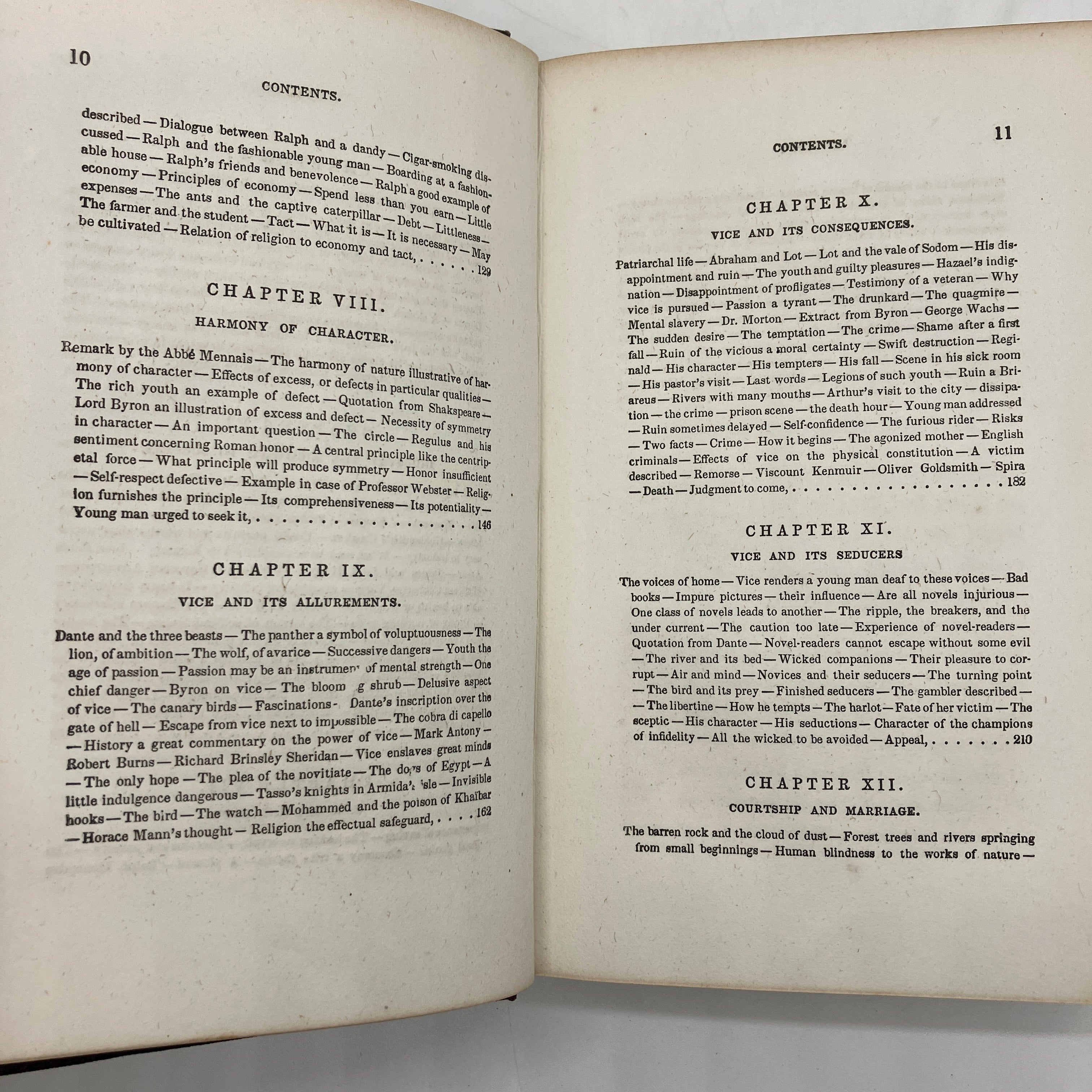 A book of 19th century moral and ethical instruction guiding young men toward a life of virtue, success, and religious piety.