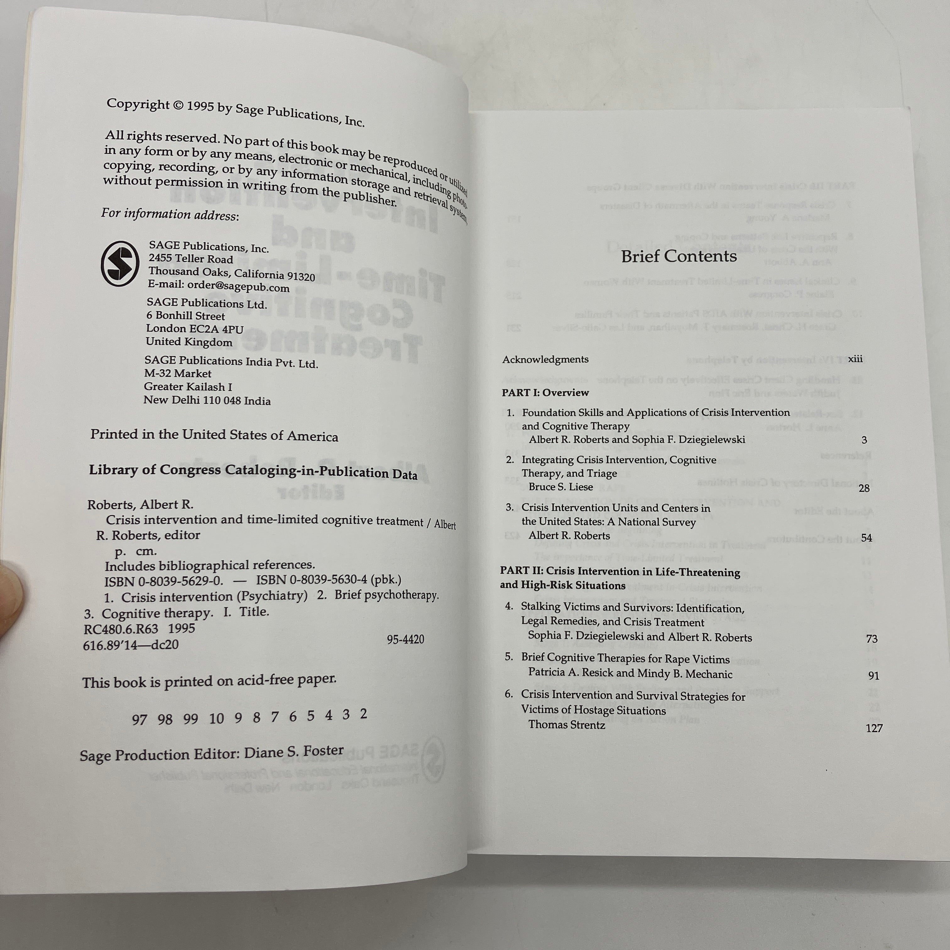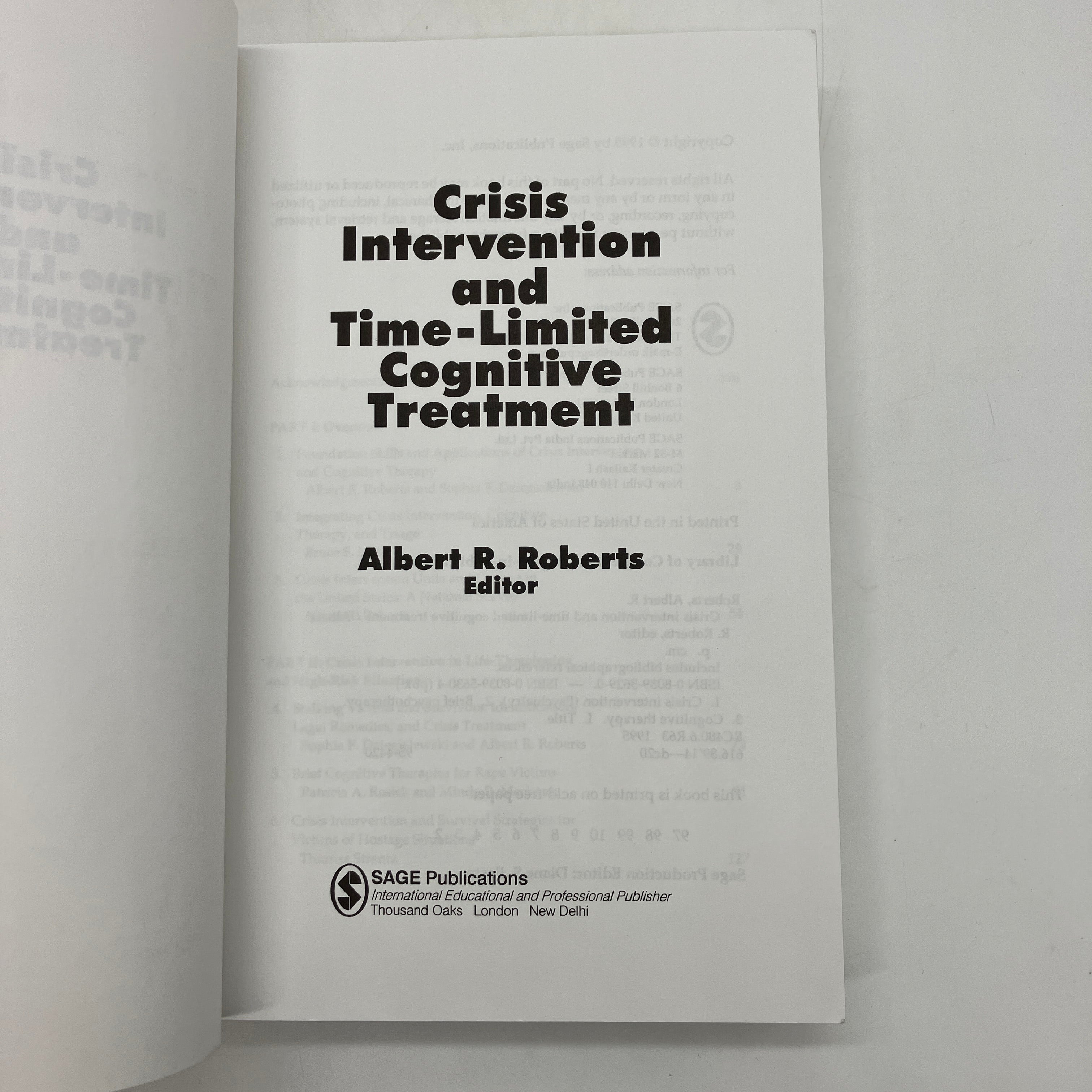 SAGE Publications, 1995. Trade paperback of Crisis Intervention and Time-Limited Cognitive Treatment by Albert Roberts.