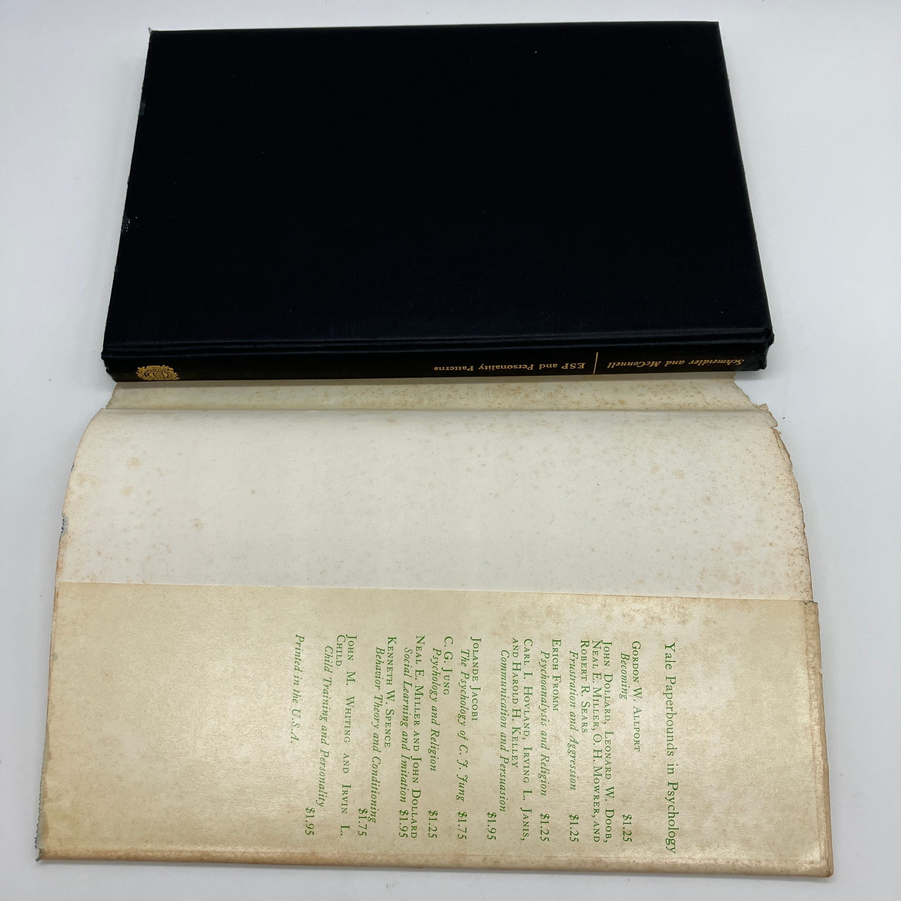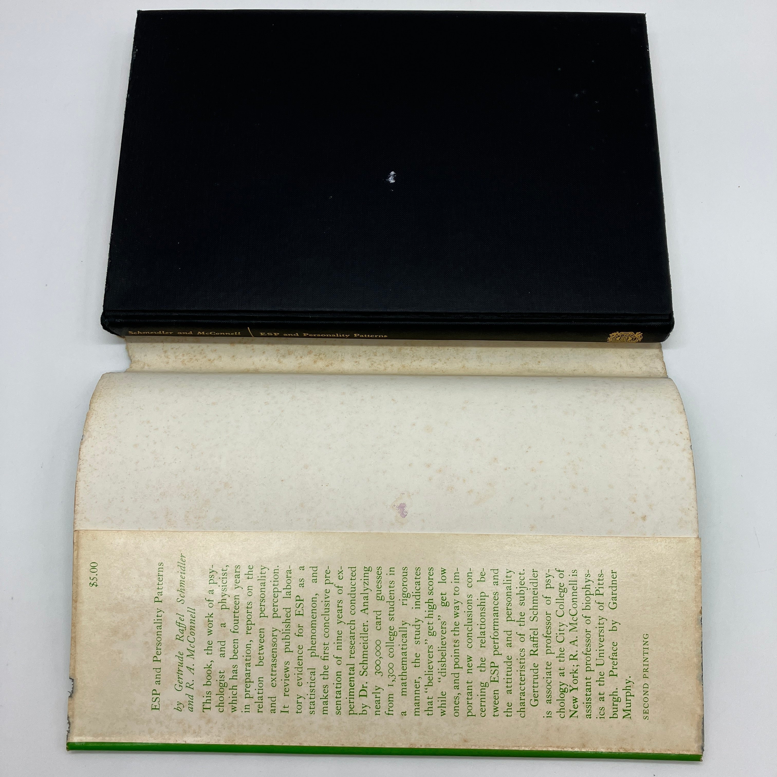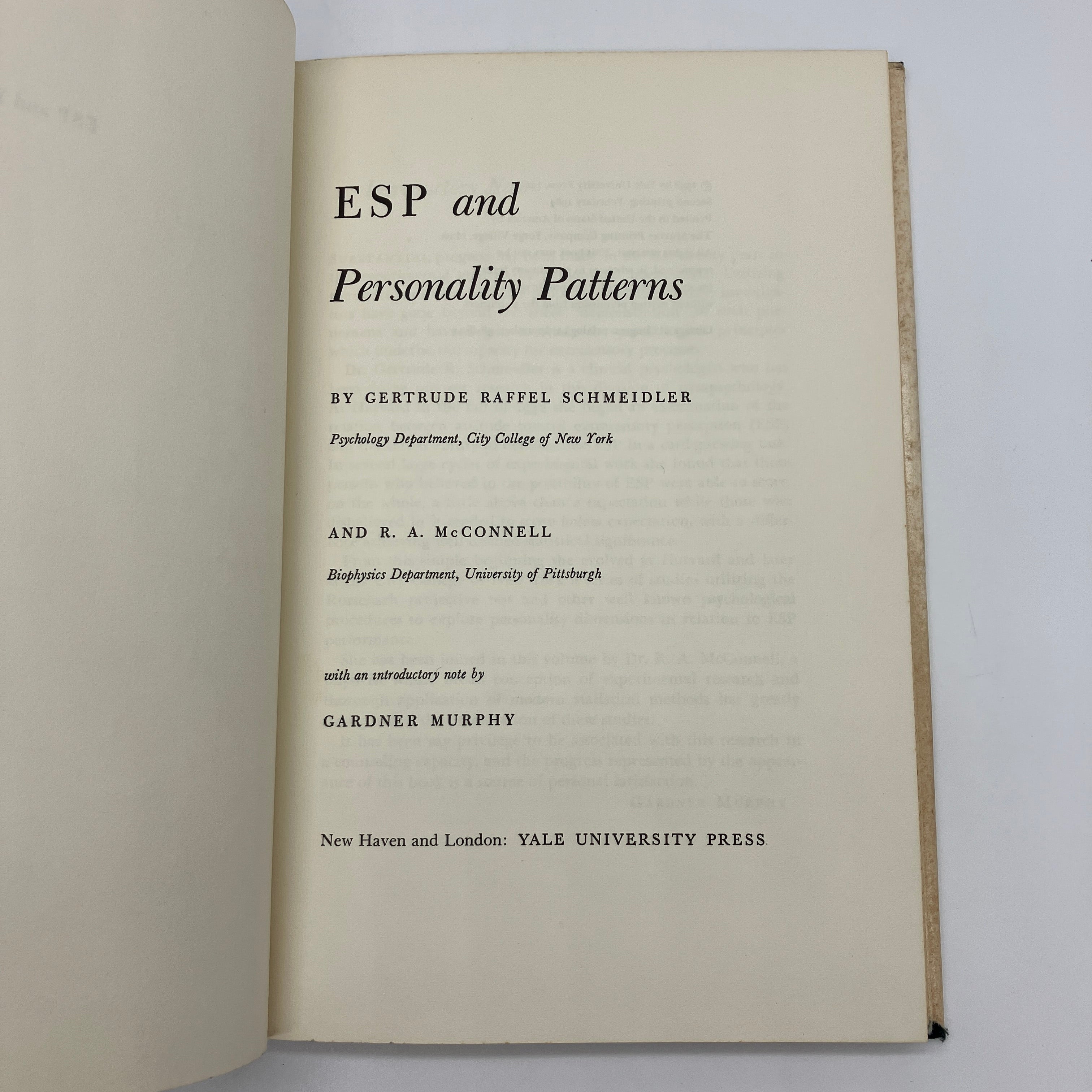 Yale University Press, 1964. Second printing cloth bound hardcover with dust jacket of ESP and Personality Patterns by Gertrude Schmeidler and R.A. McConnell.
