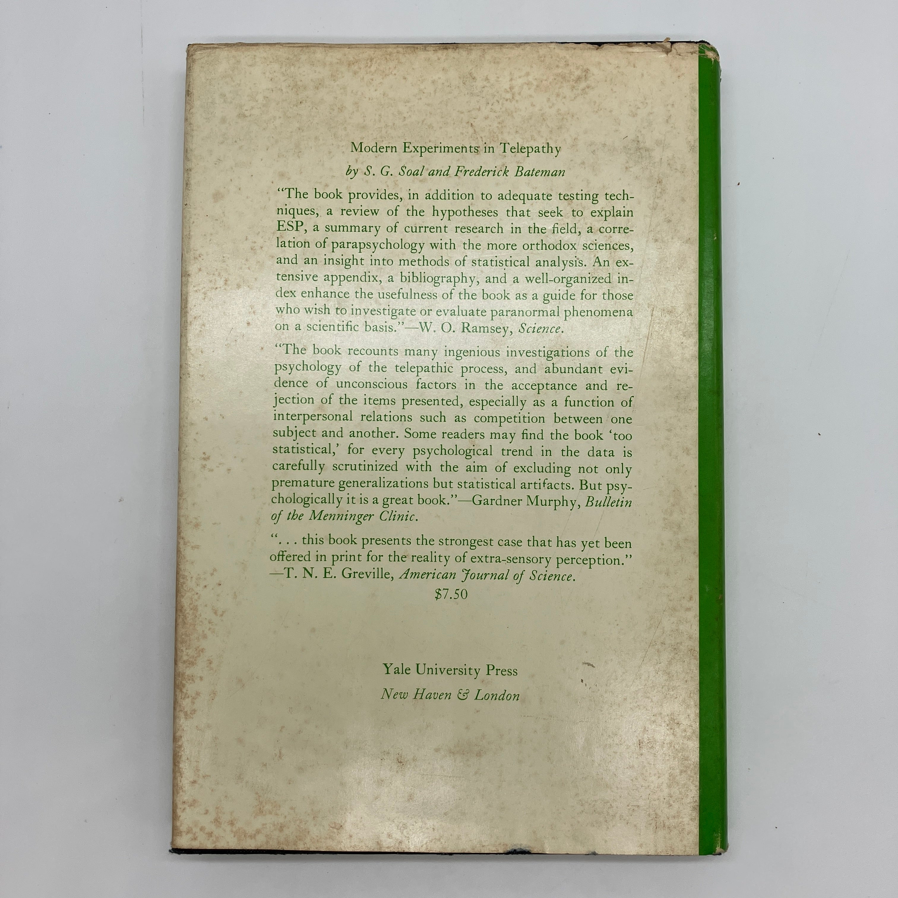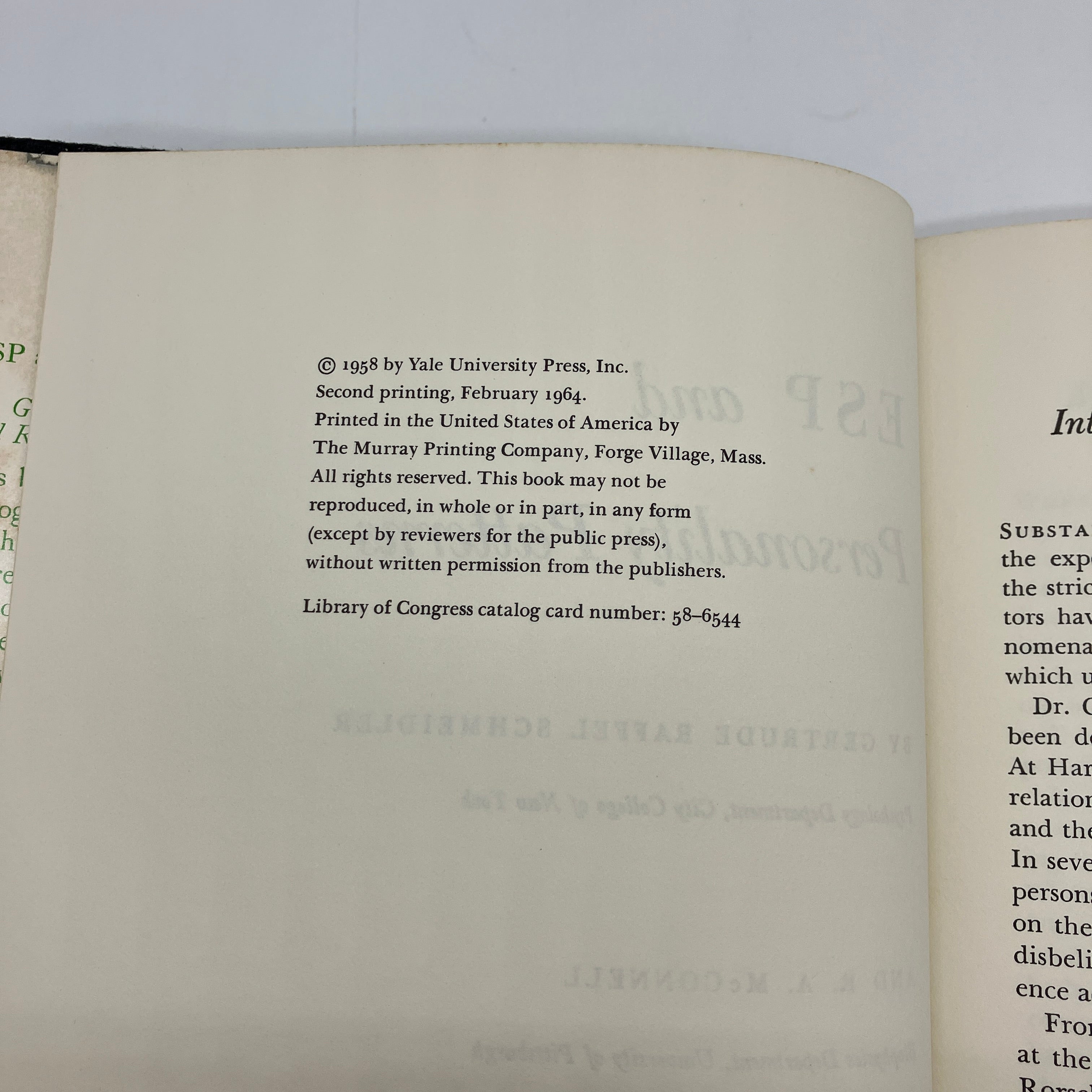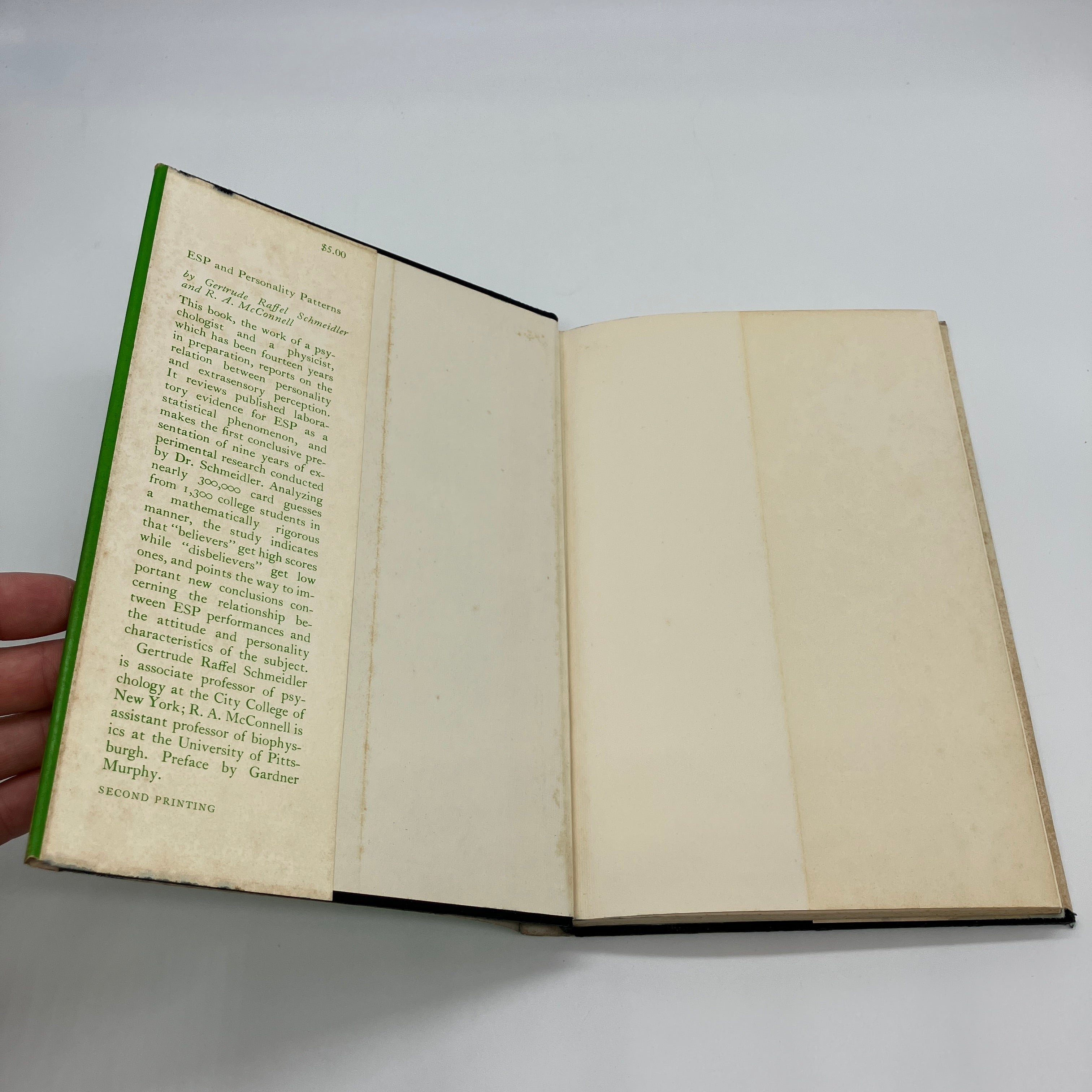 Yale University Press, 1964. Second printing cloth bound hardcover with dust jacket of ESP and Personality Patterns by Gertrude Schmeidler and R.A. McConnell.