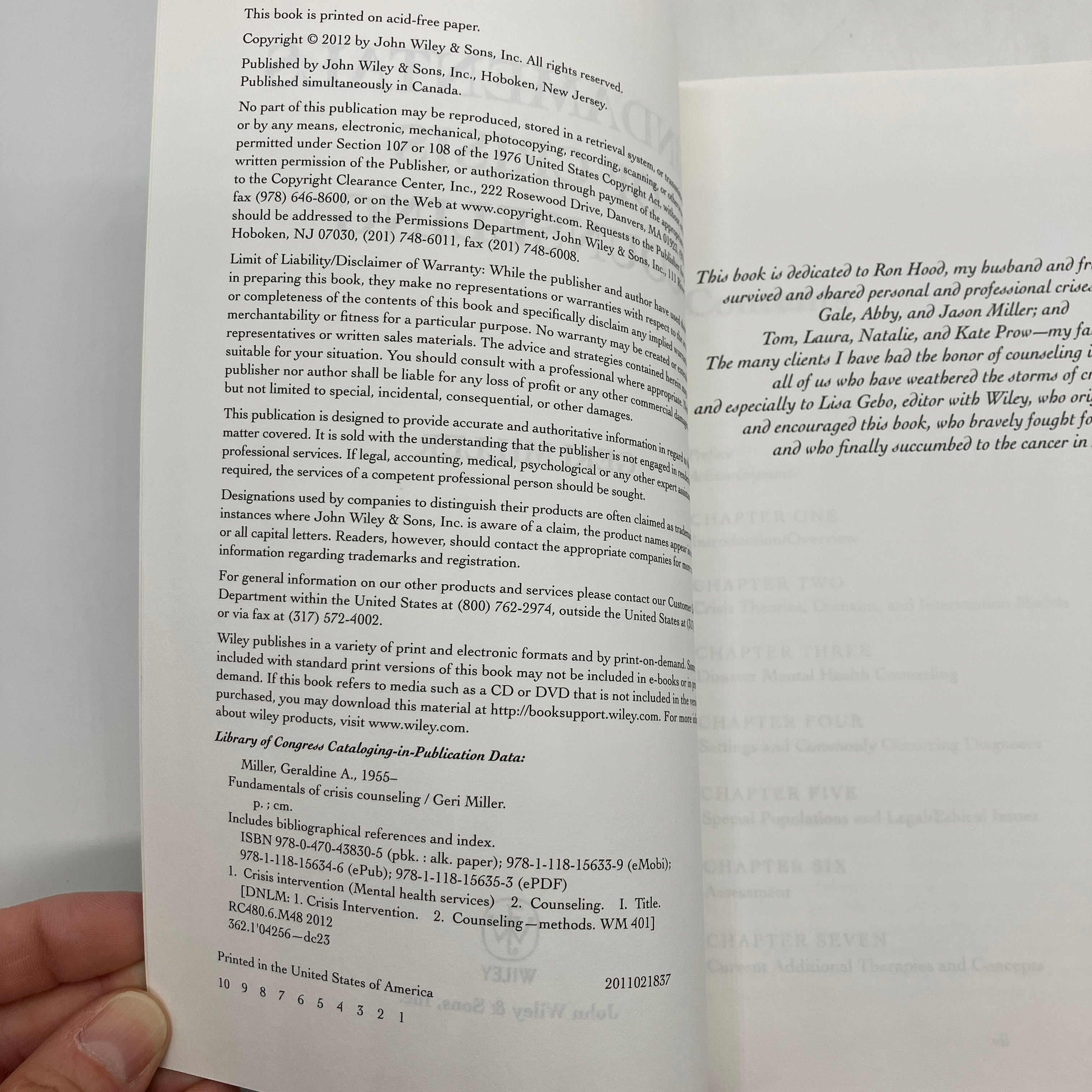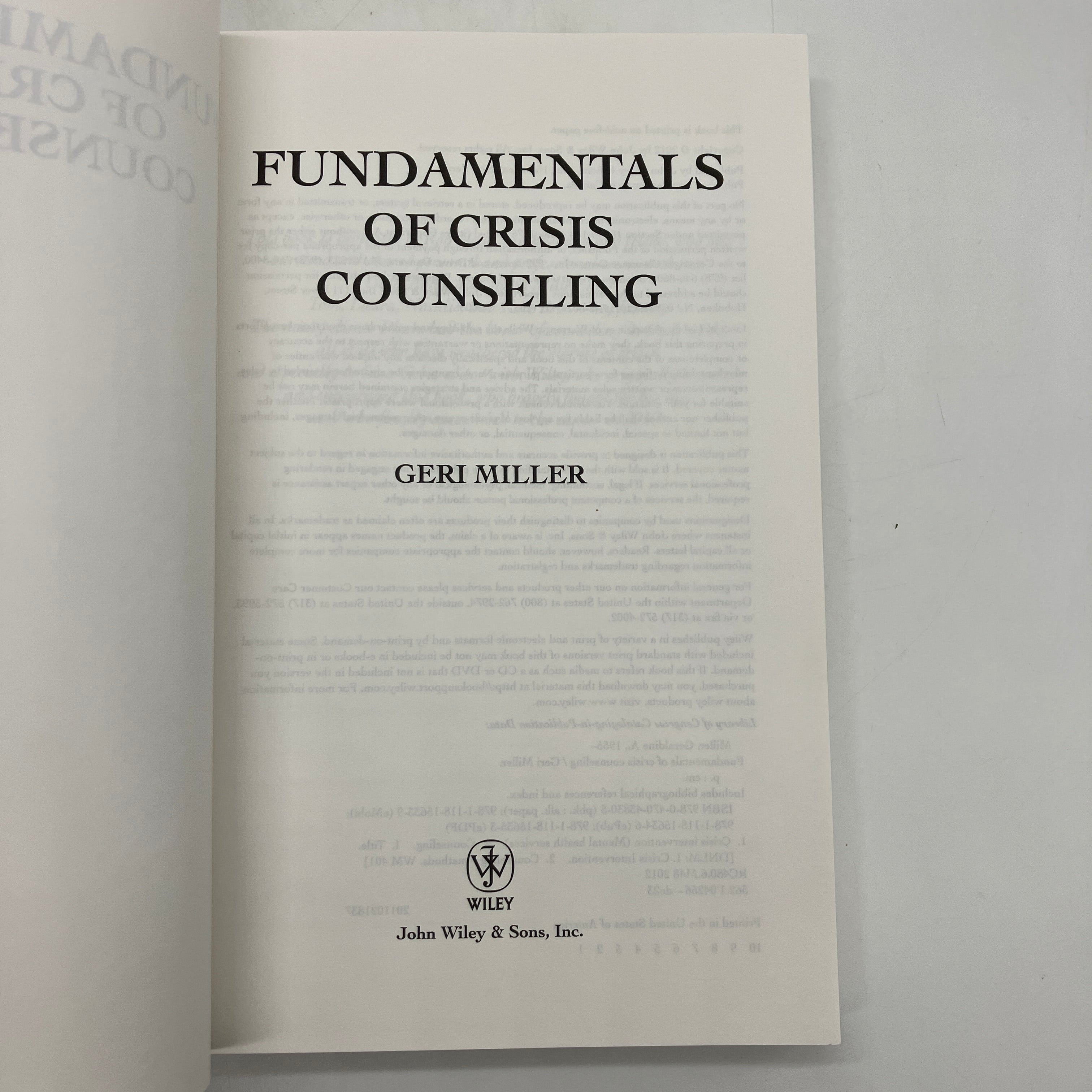 Wiley, 2012. Trade paperback of Fundamentals of Crisis Counseling by Geri Miller.