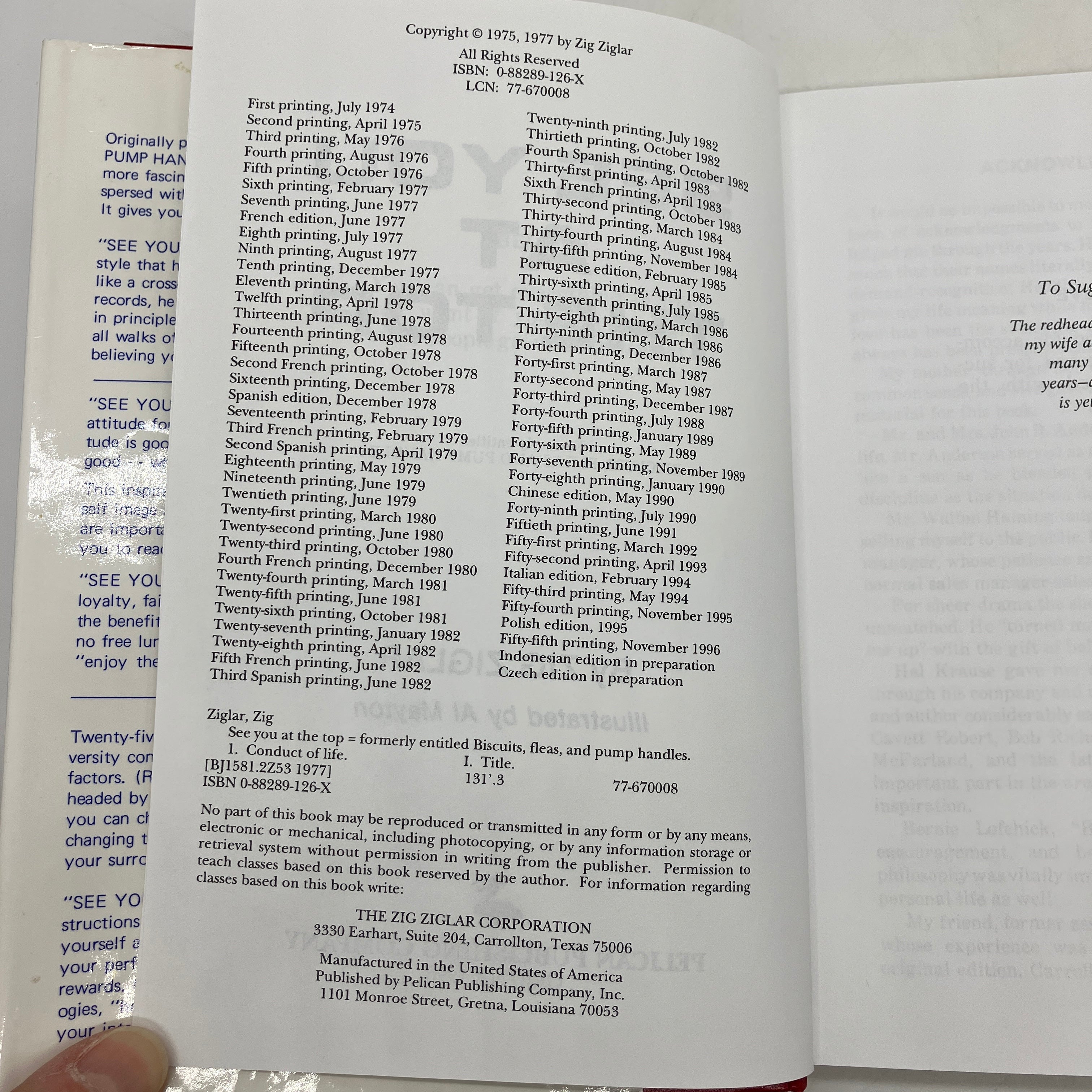 Pelican Publishing Company, 1996. Hardcover with dust jacket of See You at the Top by Zig Ziglar.