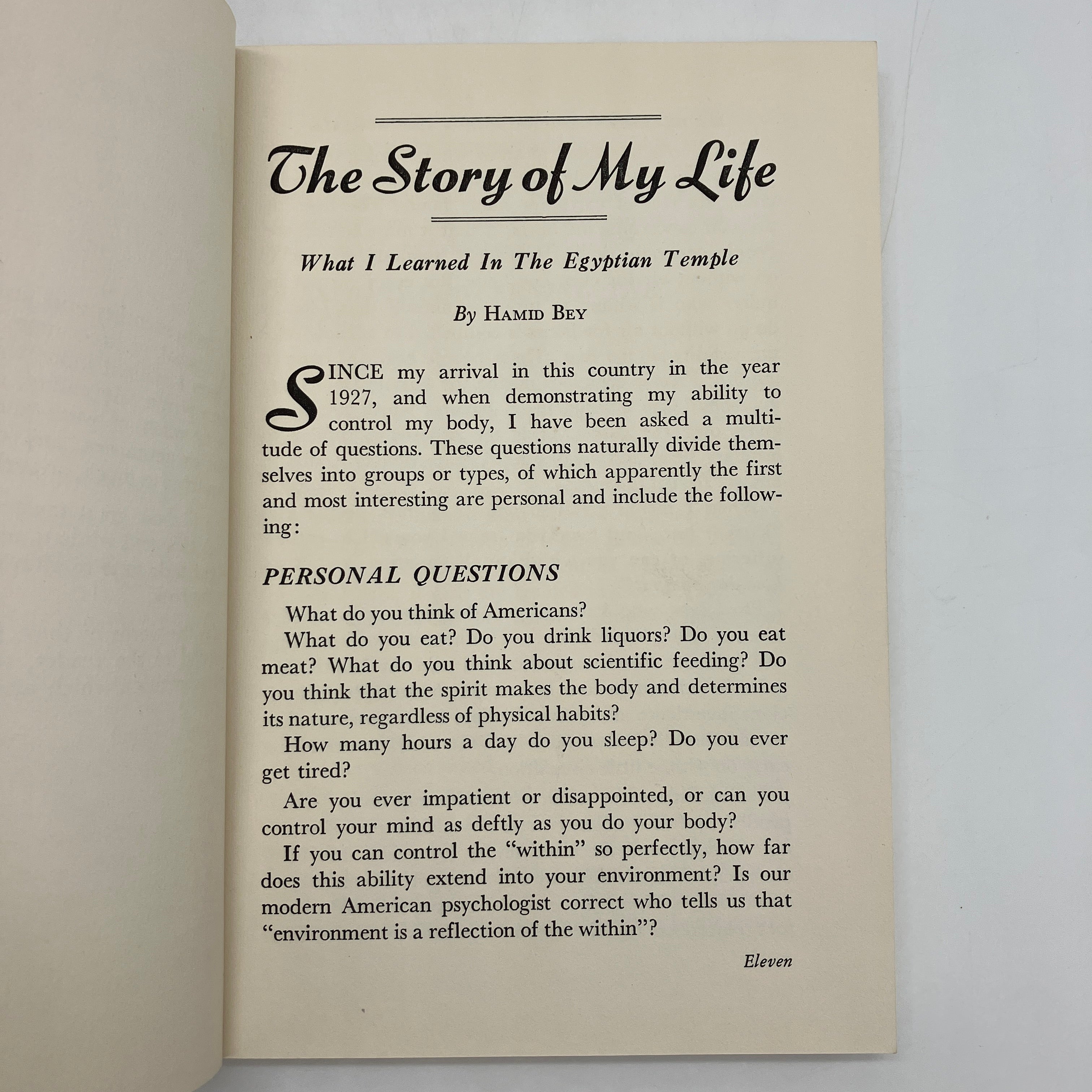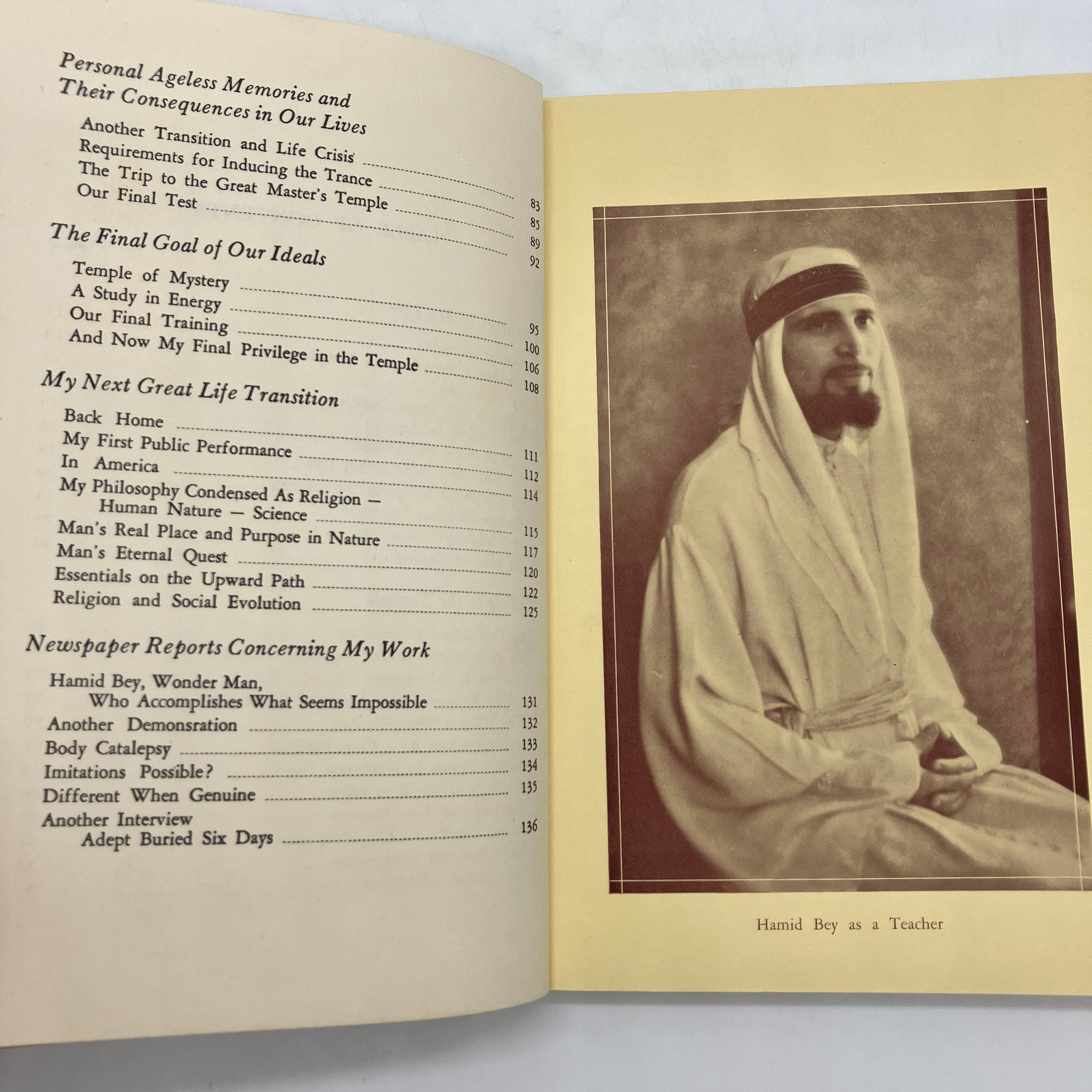Fourth edition of the autobiography of Hamid Bey, the founder of the Coptic Fellowship of America. Bey was regarded by scientists and scholars as an extraordinary superman due to his perceived abilities. He asserted that his capacity to exert mind over matter—despite its unusual nature—was solely the product of rigorous work and effective training. Furthermore, he maintained that any average person facing the same conditions could have attained results equal to, or even surpassing, his own accomplishments.