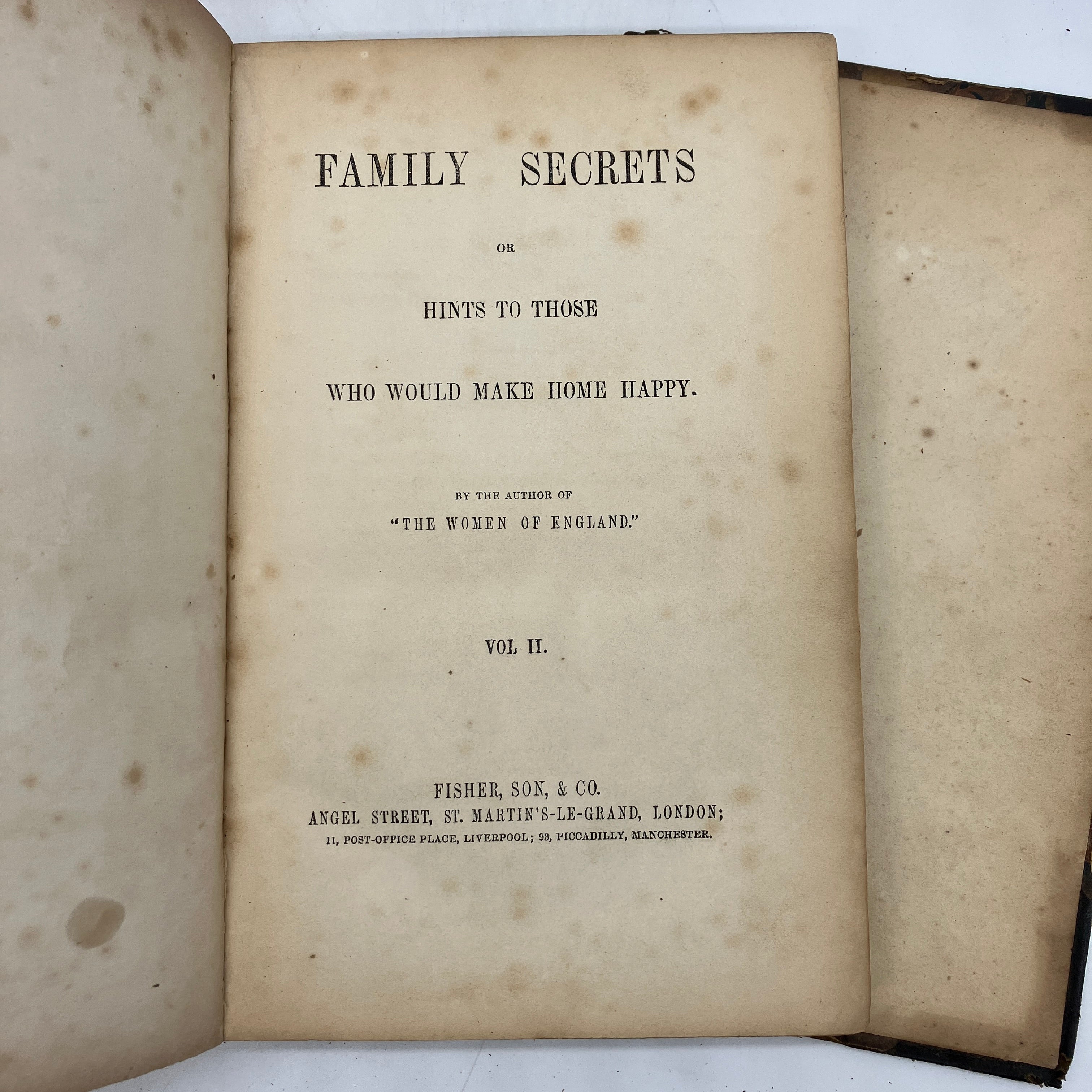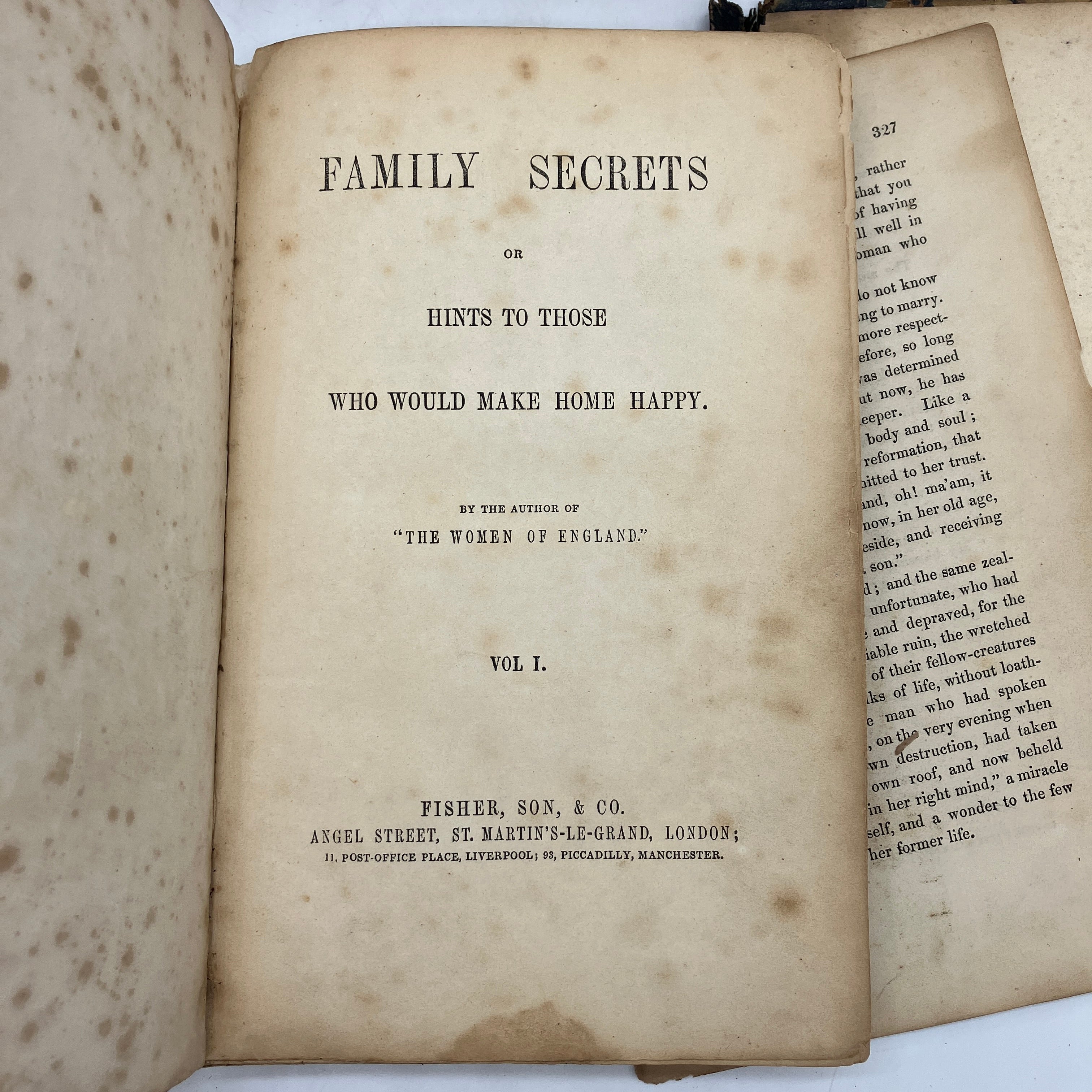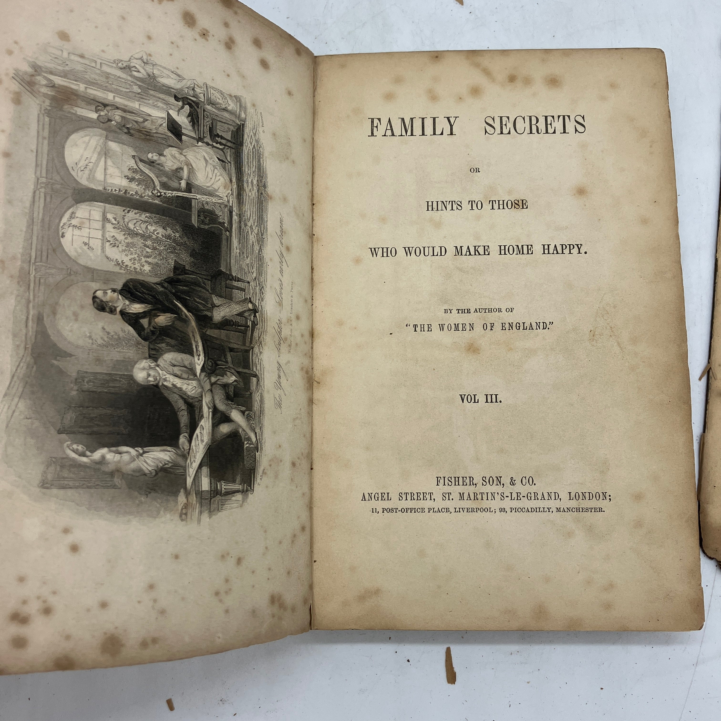 Fisher, Son, & Co. (St. Martin's-Le-Grand, London), 1843. Antiquarian hardcover 3-volume set of Family Secrets, or Hints to Those Who Would Make Home Happy by Sarah Stickney Ellis.