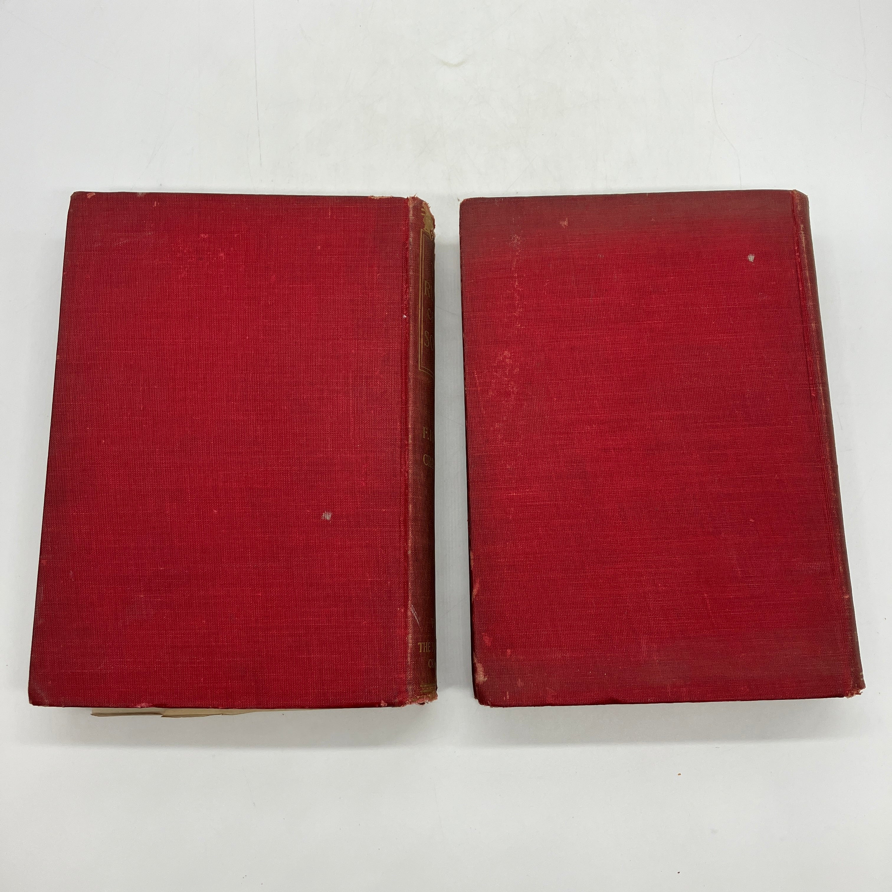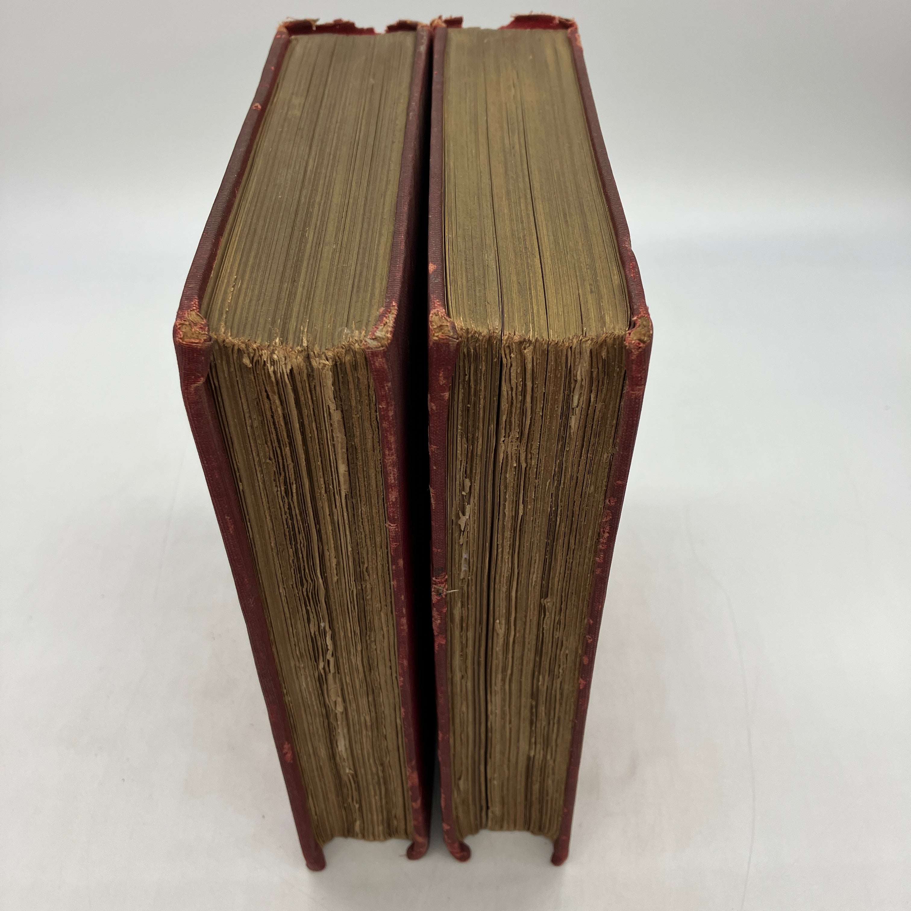 Poor condition. Volume 1 binding is broken at page 112 and the page block is separated into 2 pieces. Volume 2 binding is severely creased at page 256 but is not broken. Cloth covers severely worn and chipped. Previous owner markings inside the covers. Interior pages crisp and clean. Flawed reading copies.