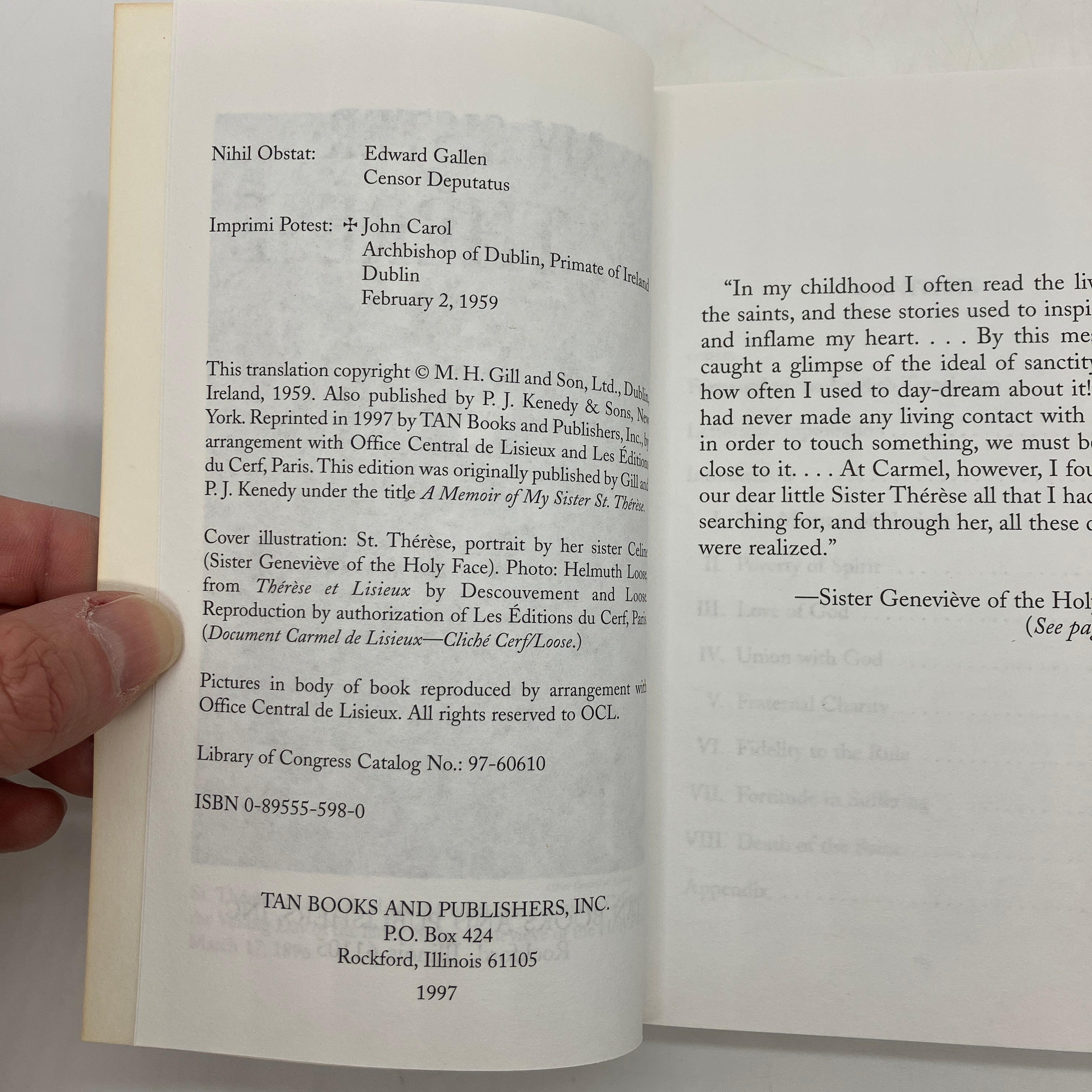 TAN Books, 1997. Trade paperback of My Sister Saint Therese by Celine Martin.