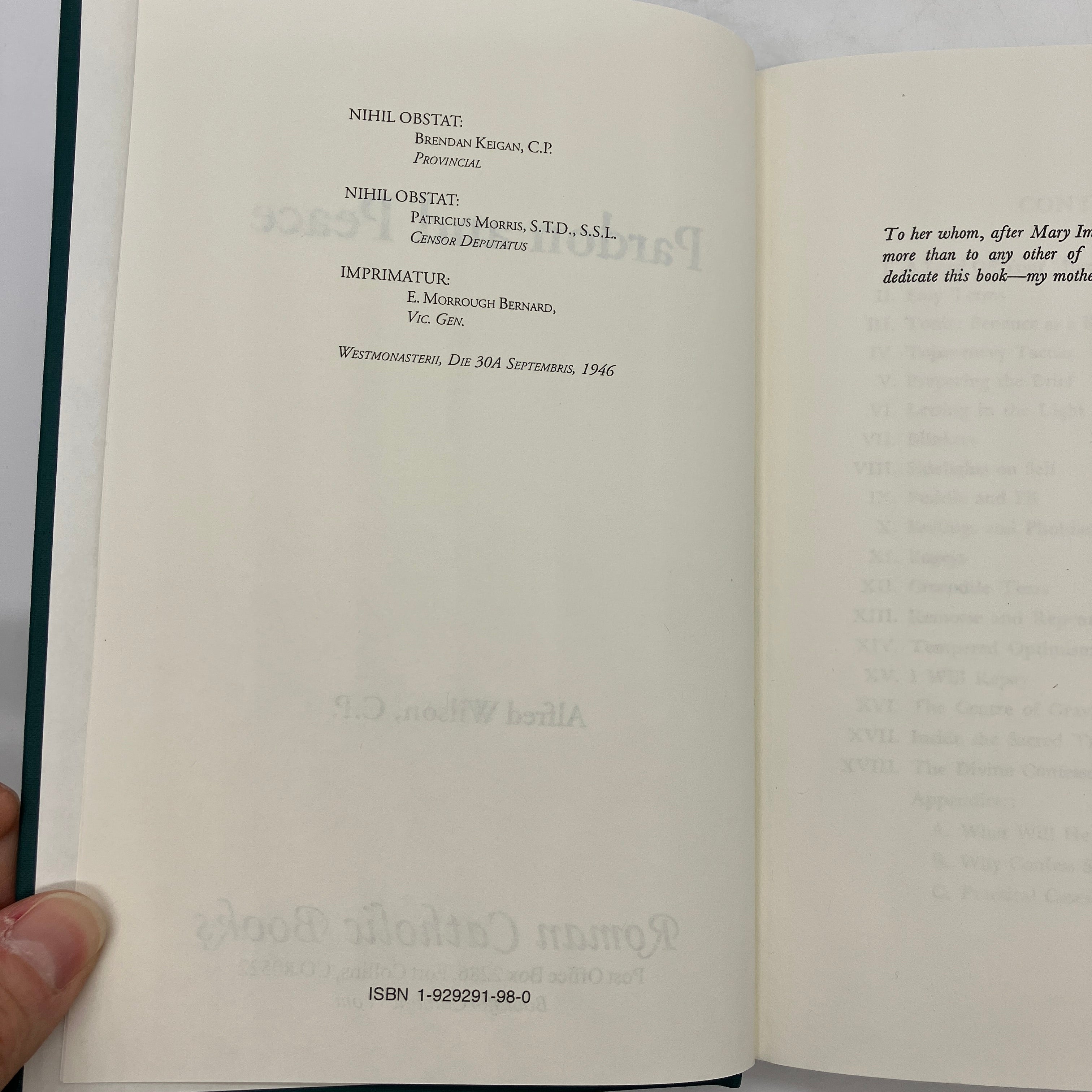 Roman Catholic Books, 2001. Cloth bound hardcover of Pardon and Peace by Alfred Wilson.
