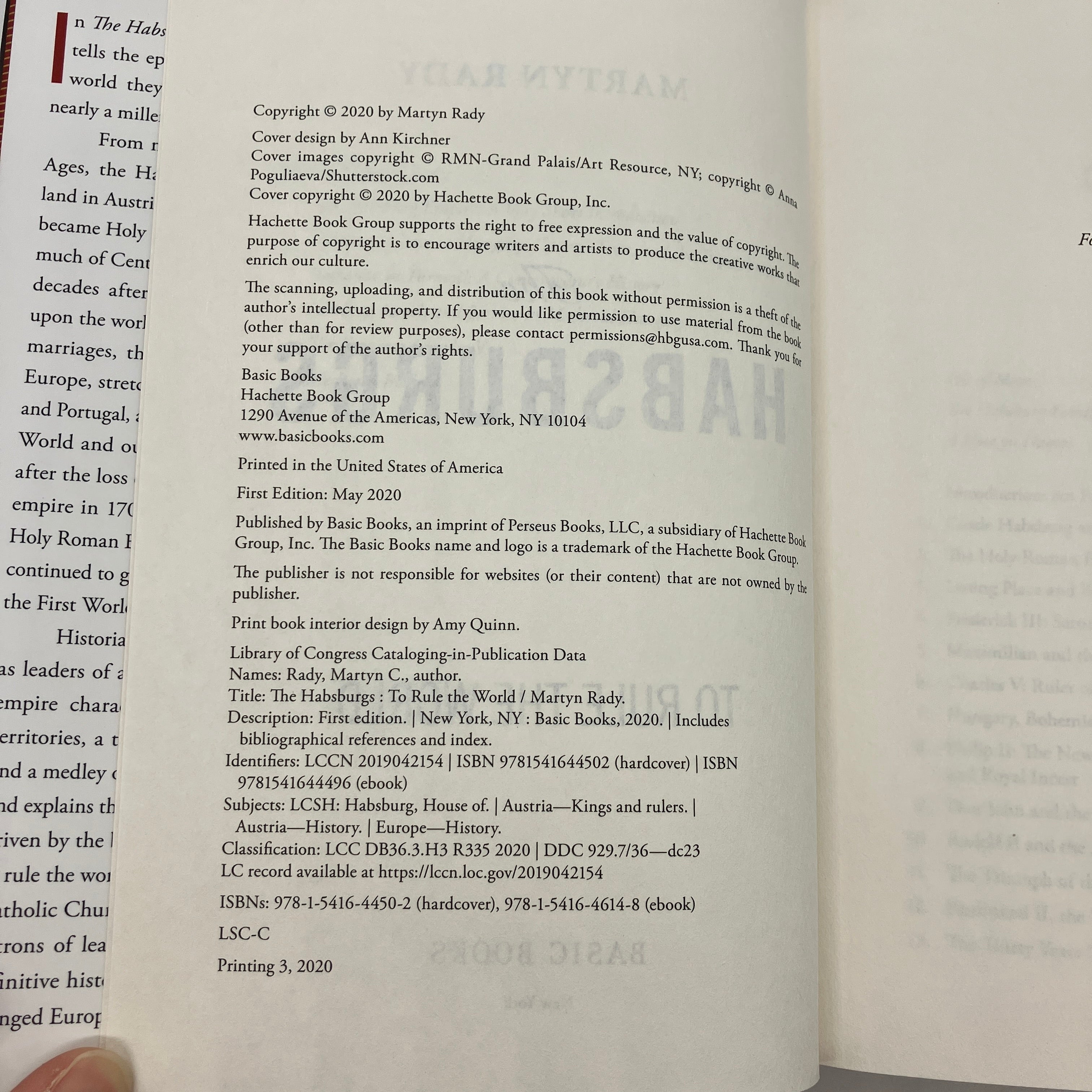 Basic Books, 2020. Hardcover with dust jacket of The Habsburgs: To Rule the World by Martyn Rady.