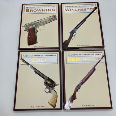 JG Press, 2007. Hardcover set with dust jackets of America's Premiere Gunmakers: Remington, Colt, Browning, Winchester by K.D. Kirkland.