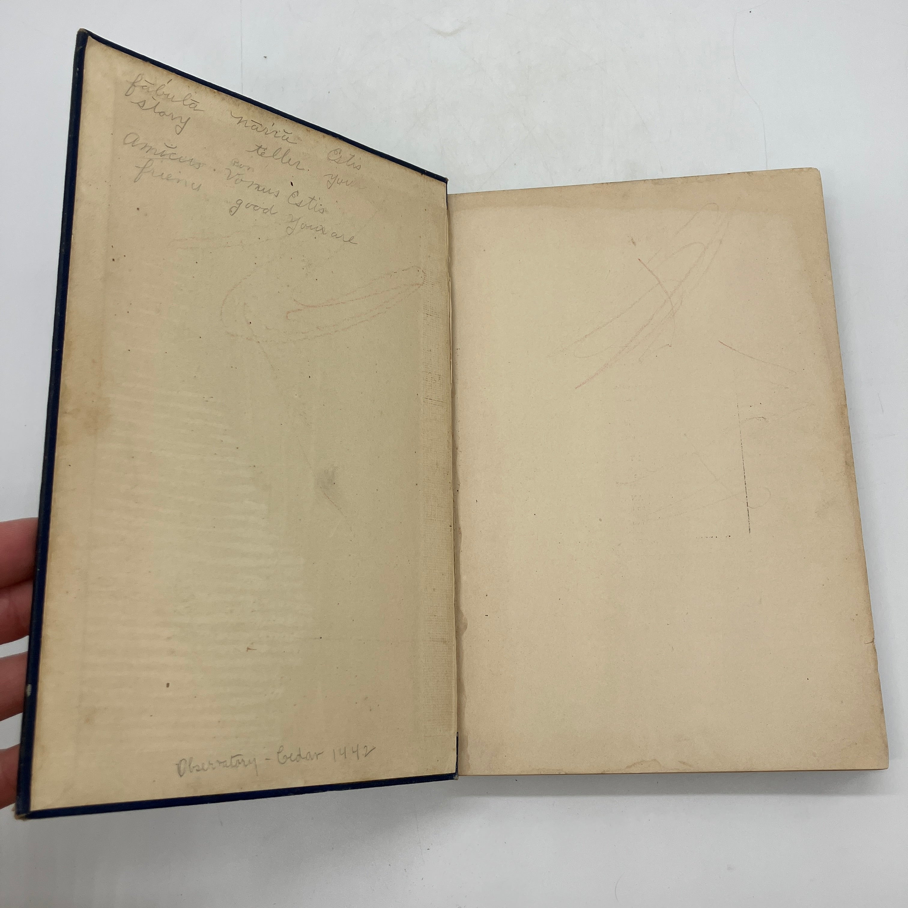Poor condition. Liquid stains to the top edge and right edge of the pages with rippling to the top 2-inches of the page block. Crayon doodle found to page 7. Occasional markings throughout that do not obscure text. One torn page corner found to page 56. Acceptable as a reading copy.