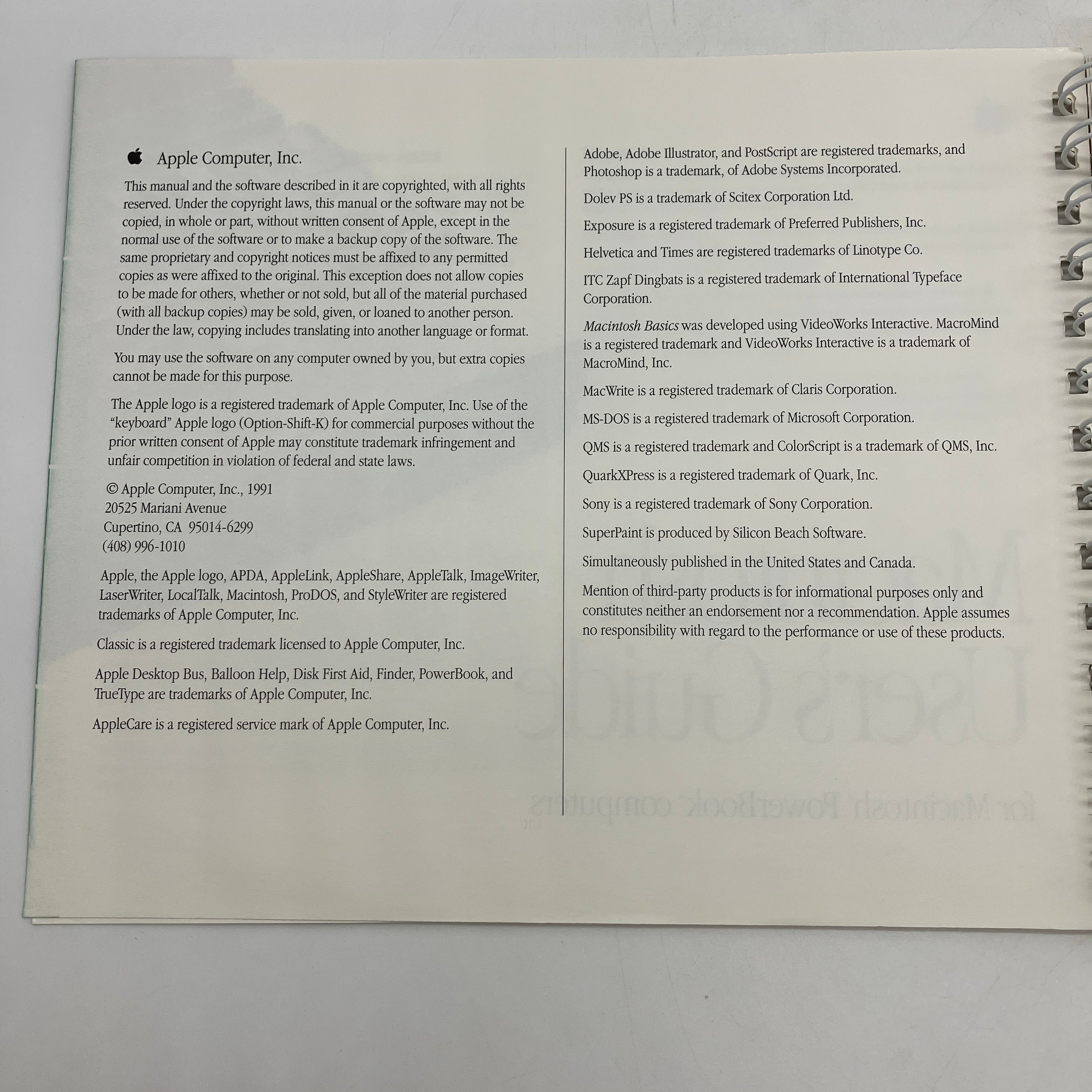 Macintosh Users Guide for PowerBook Computers 030-1677-C 1991 Apple Spiral PB VG
