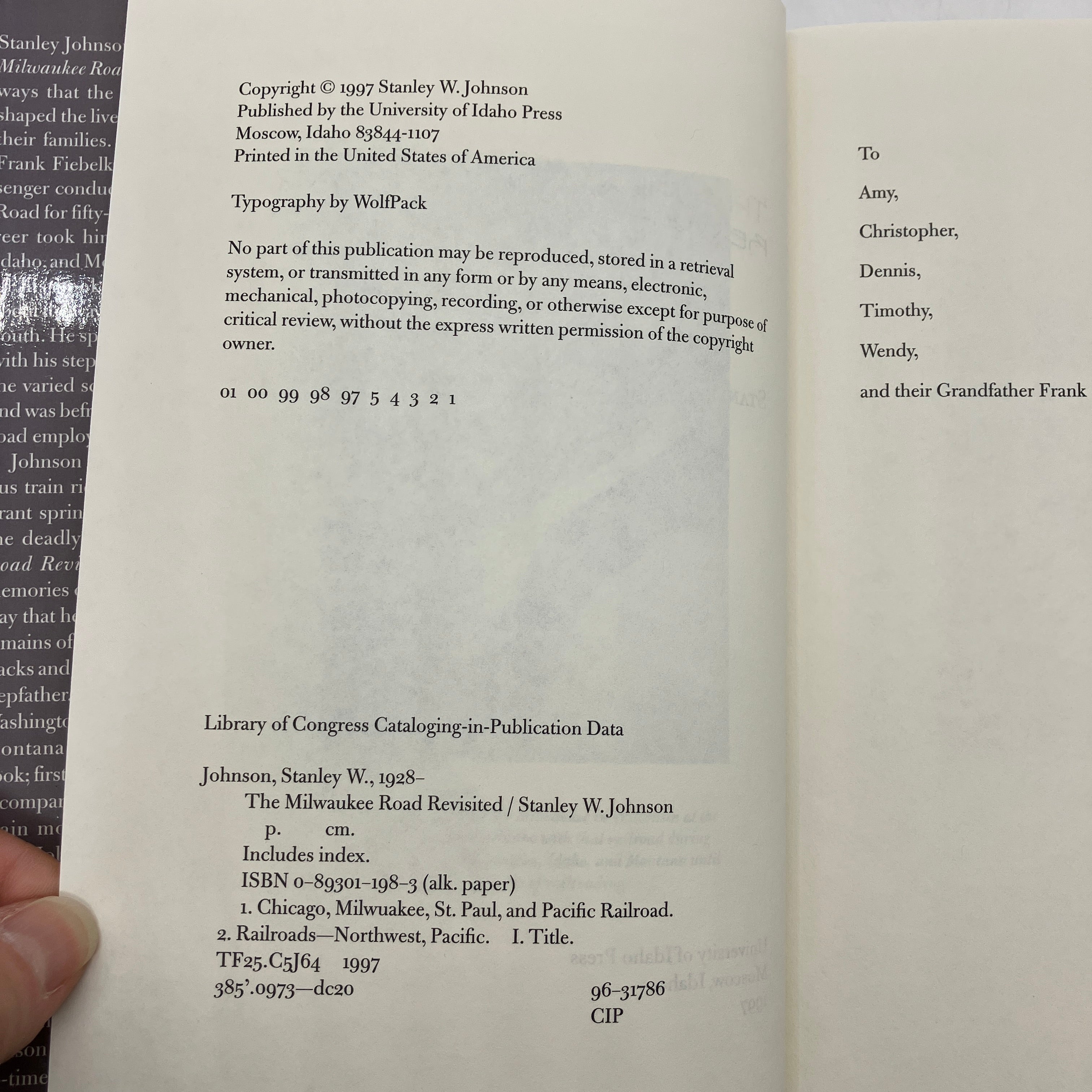 University of Idaho Press, 1997. First edition cloth bound hardcover with dust jacket of The Milwaukee Road Revisited by Stanley Johnson.
