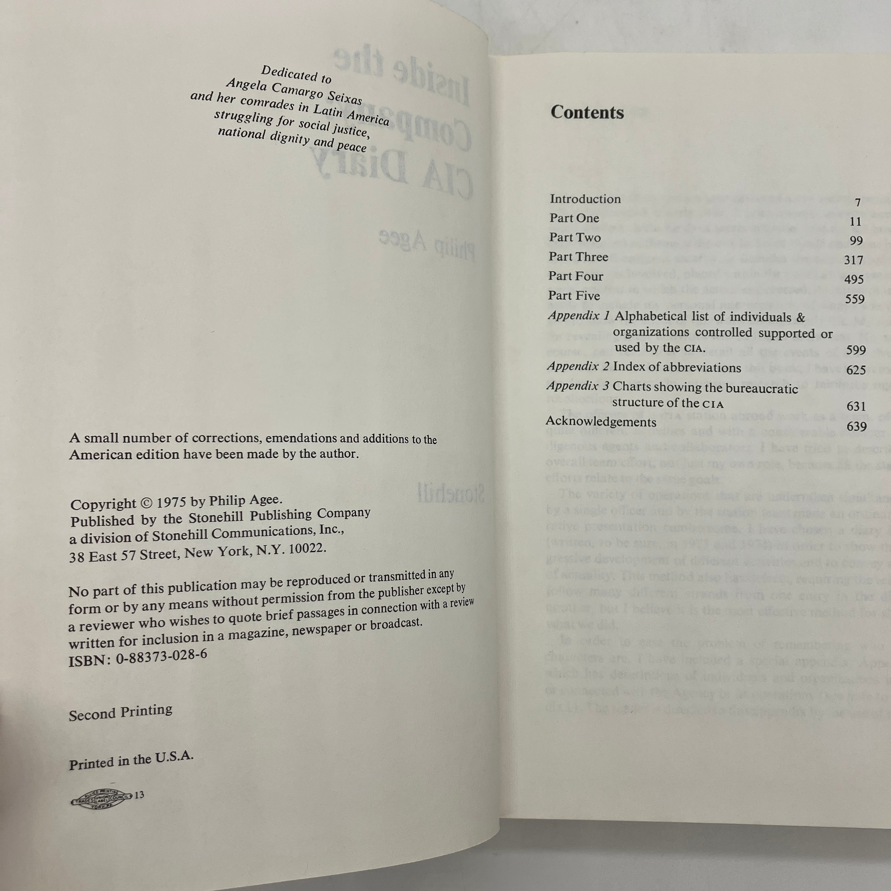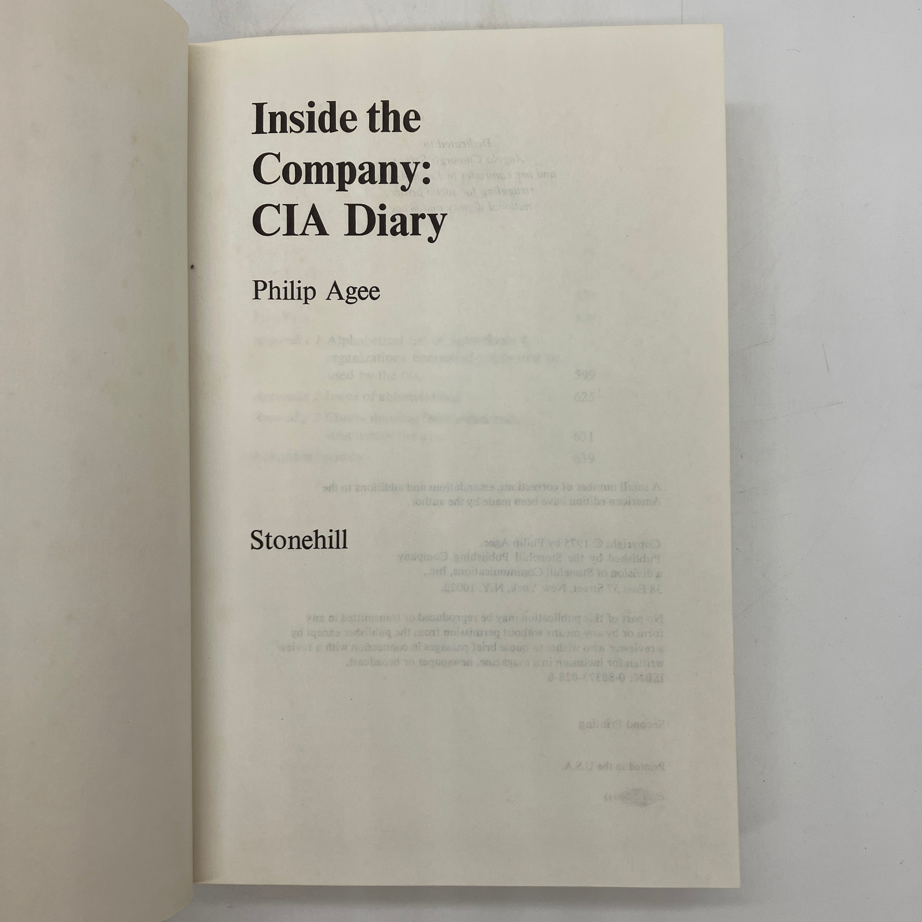 Stonehill Publishing, 1975. Hardcover with dust jacket of Inside The Company: CIA Diary by Philip Agee.