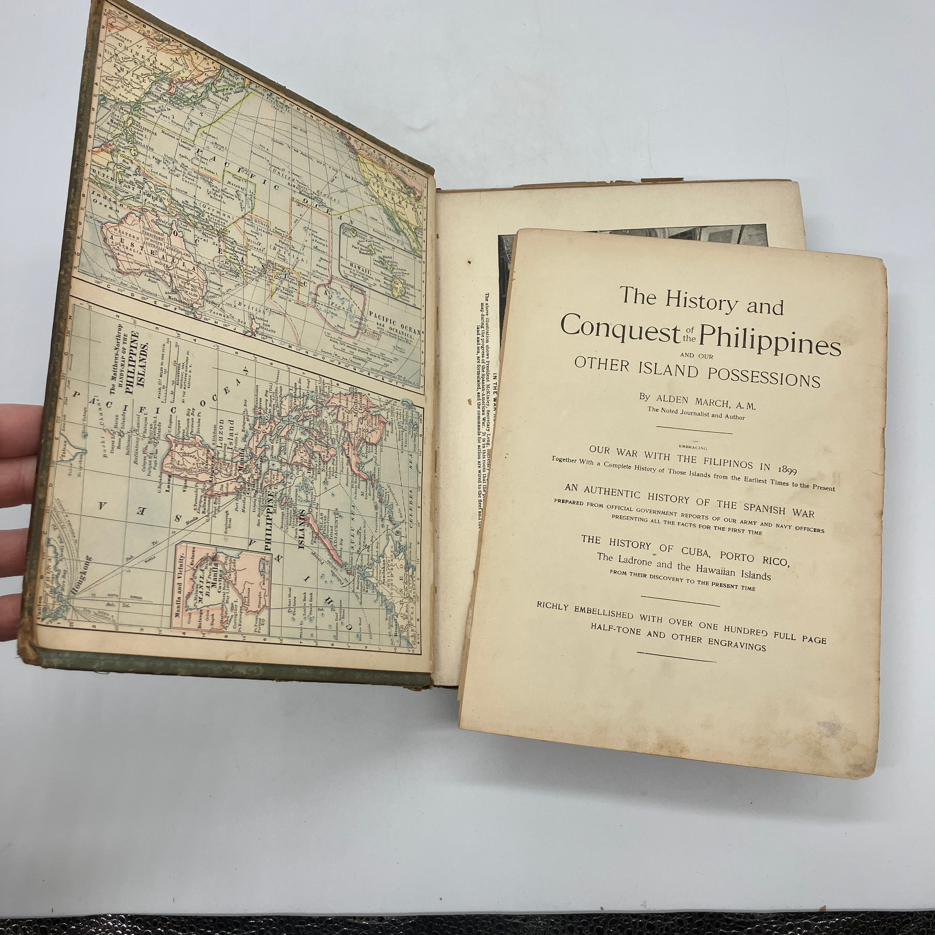 Large antiquarian cloth bound hardcover of The History and Conquest of the Philippines and Our Other Island Possessions; Embracing Our War with the Filipinos in 1899 by Alden March.